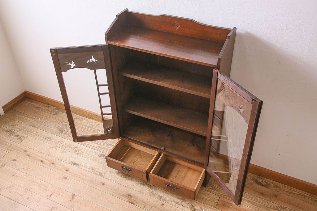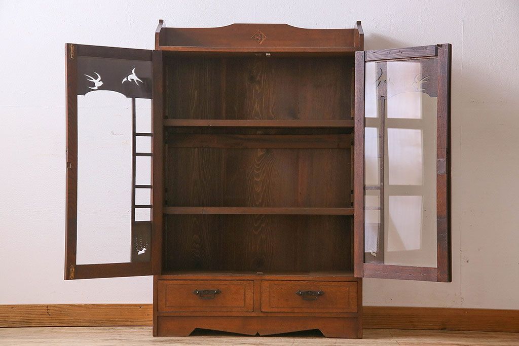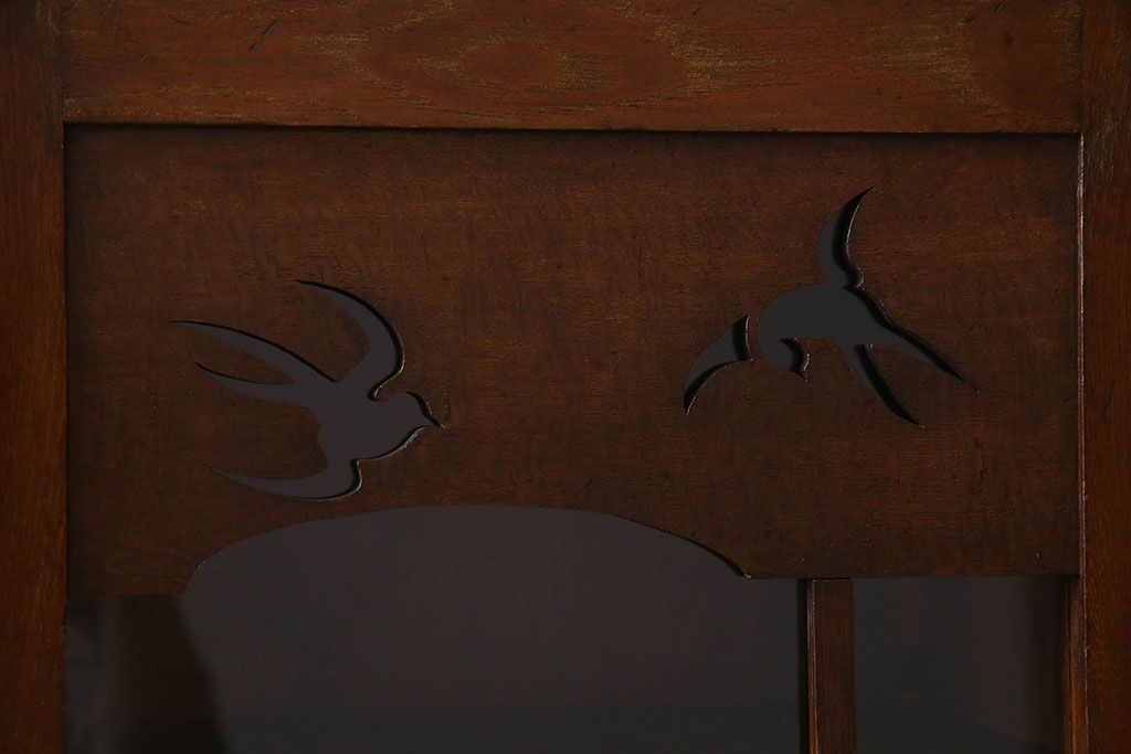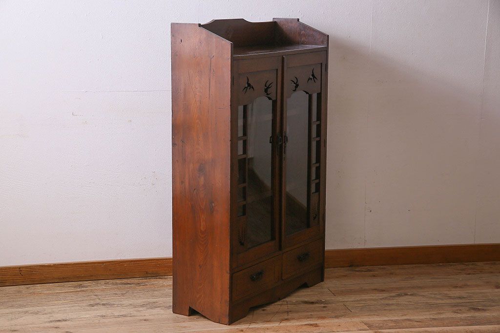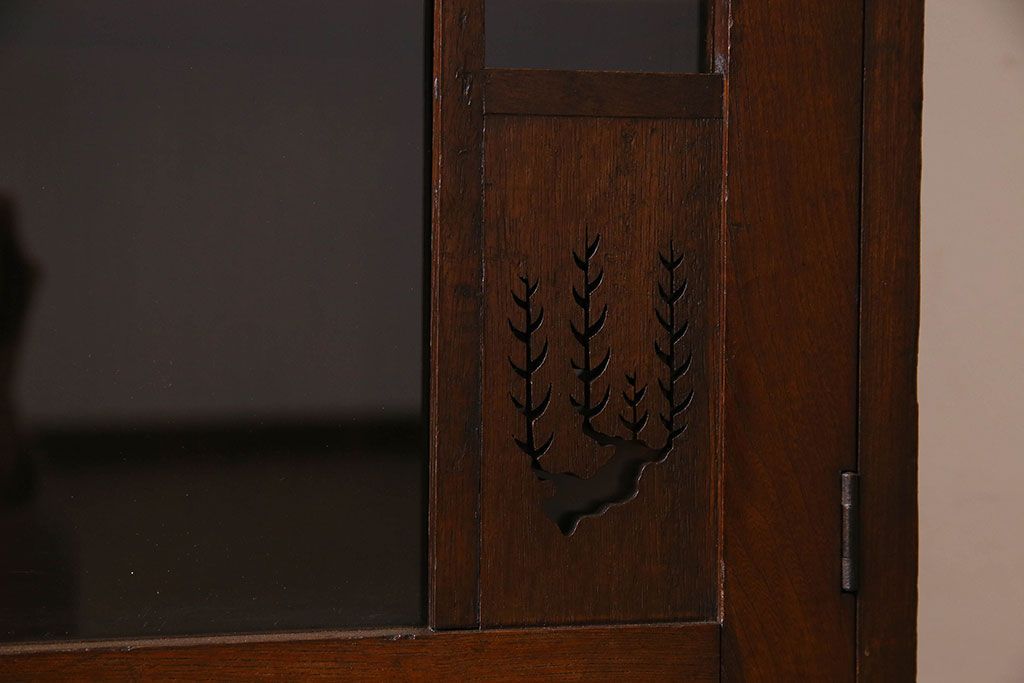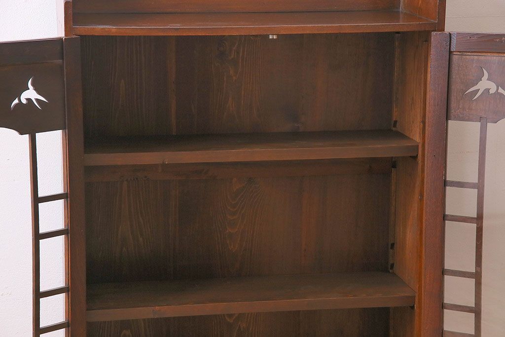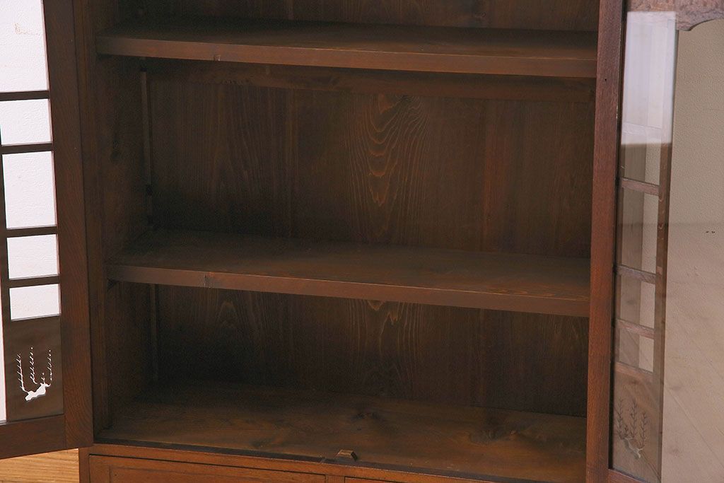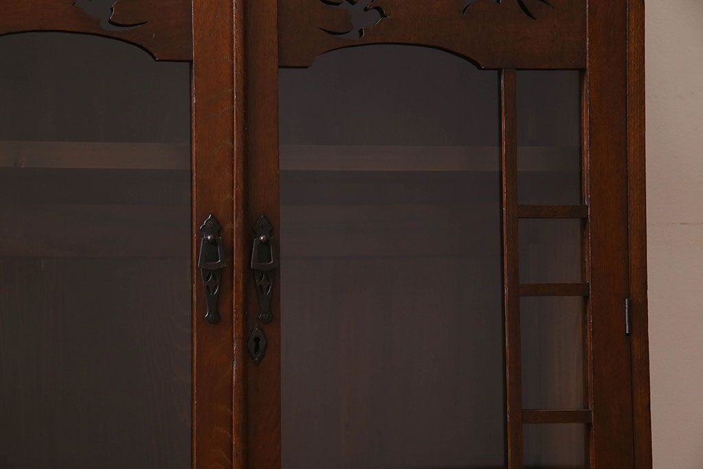 アンティーク家具 大正ロマン 美しい透かし彫りが印象的な本箱(ブックケース、本棚、収納棚)