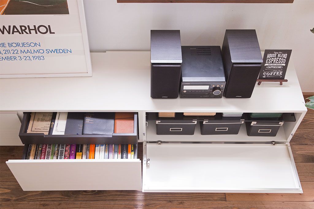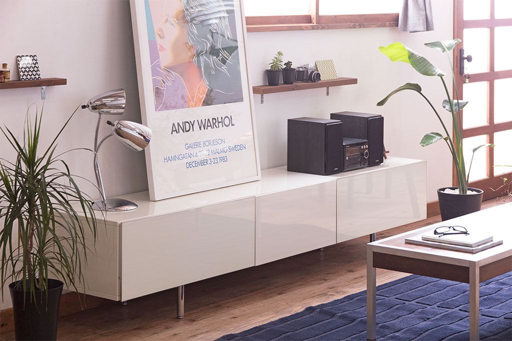 中古 ブランド家具 ixc.(イクスシー)製 BREATH グロッシーホワイト シアターボード(テレビ台)(定価約75万円)です。