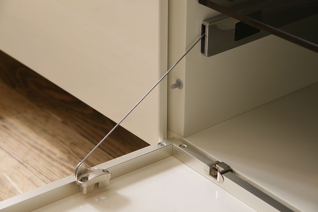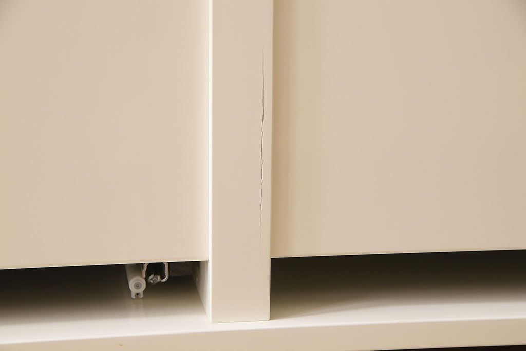 32枚目の画像にありますように背面にわずかに傷がありますので、ご理解の上おねがいします。扉、引き出しともにスムーズに動きます。