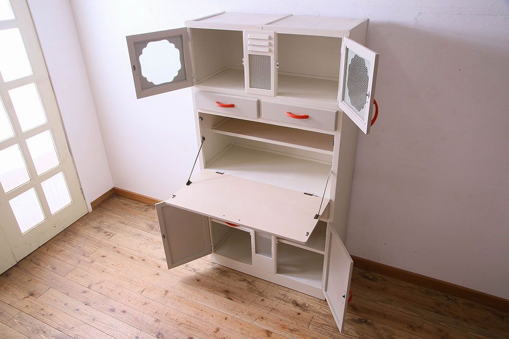 ラフジュ工房> キャビネット・戸棚> 食器棚・カップボード > アンティーク家具 お洒落なペイントが素敵なキッチンキャビネット(収納棚、食器棚)