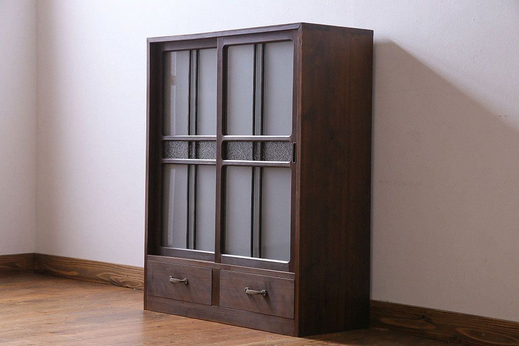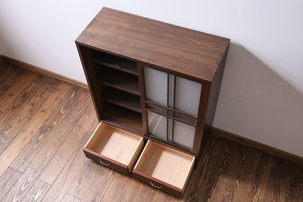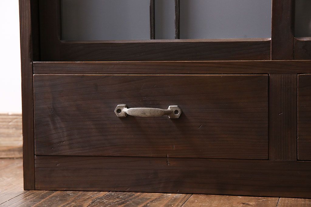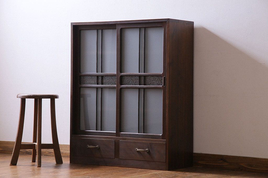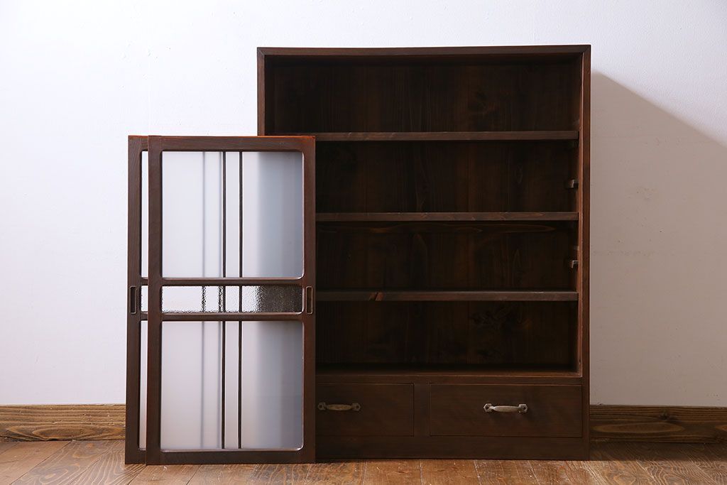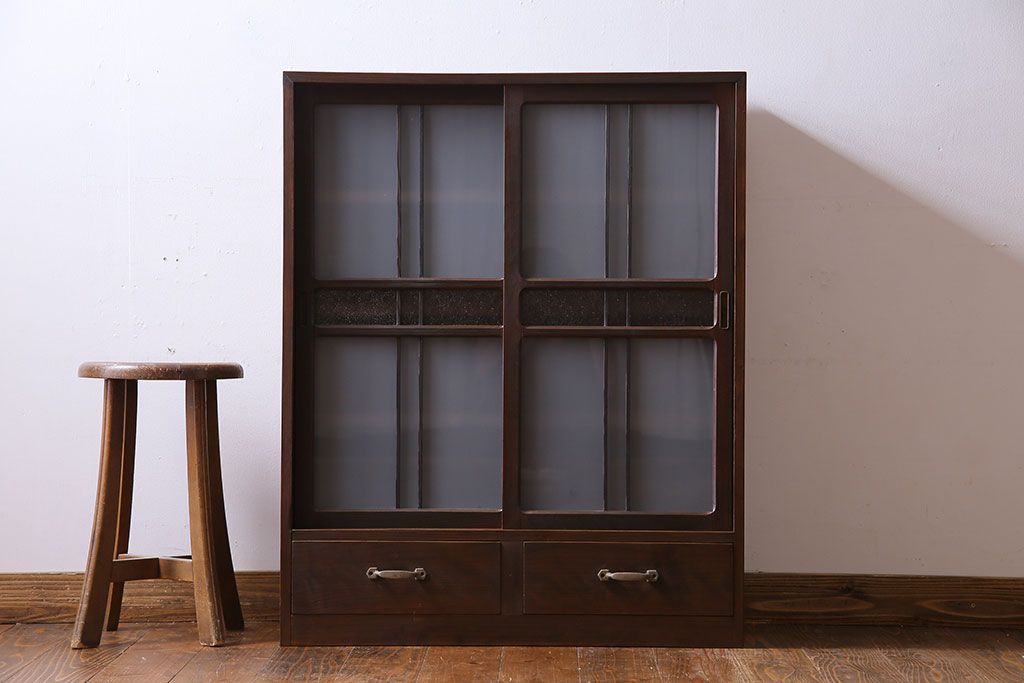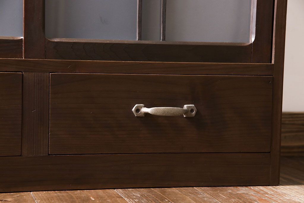 アンティーク家具 和製アンティーク 小振りなサイズが使いやすい シックなデザインの戸棚(収納棚、本箱)