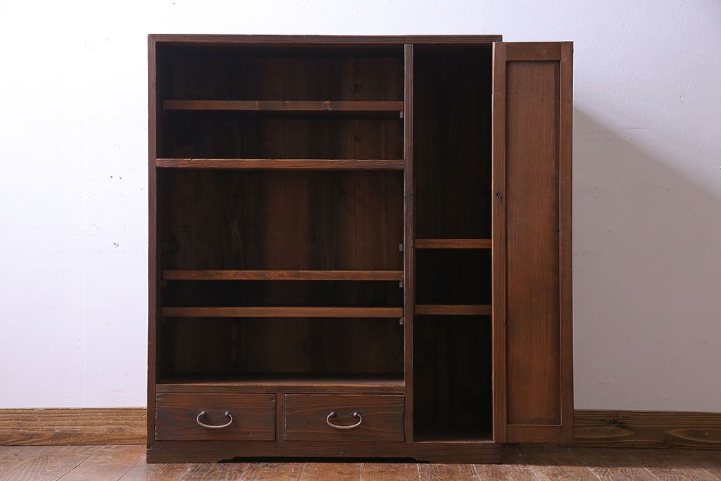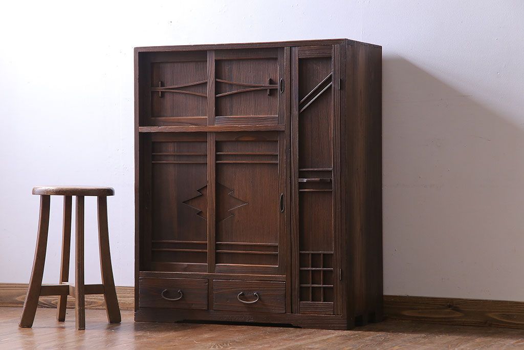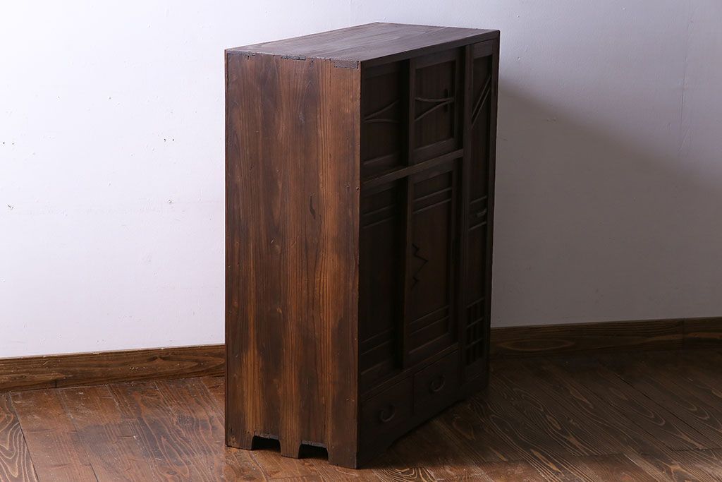 レトロ家具 引き出し付き!レトロなデザインのアンティーク下駄箱(収納棚、戸棚)