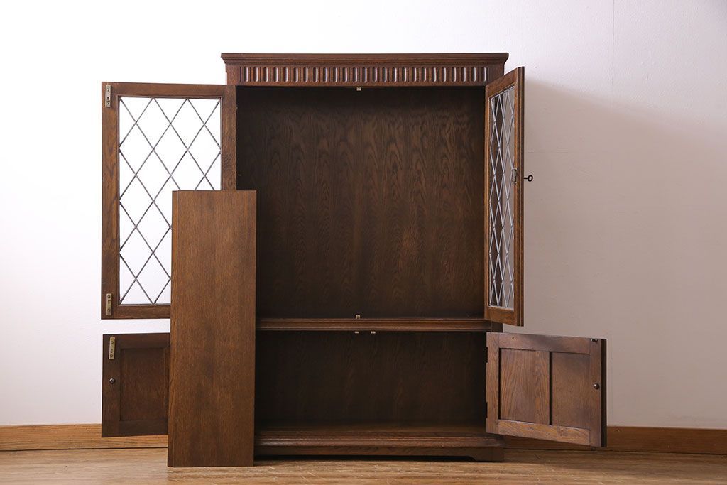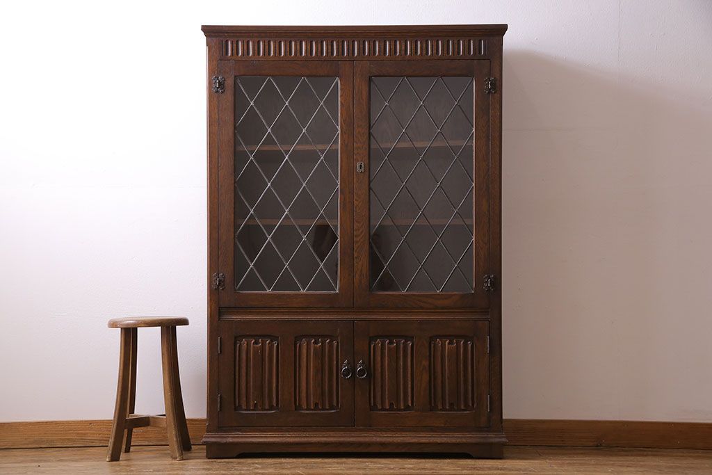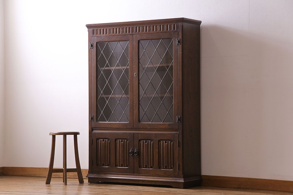 ラフジュ工房> キャビネット・戸棚> 食器棚・カップボード > 中古 イギリス家具 上品なアンティーク調のブックケース(キャビネット、本箱、収納棚)
