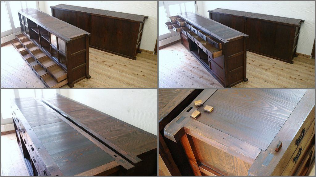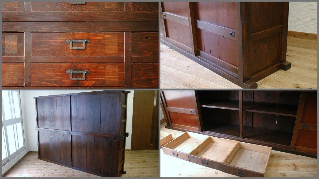 アンティーク家具 ◆明治〜大正時代 迫力の八尺重ね時代収納棚