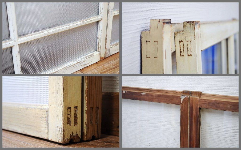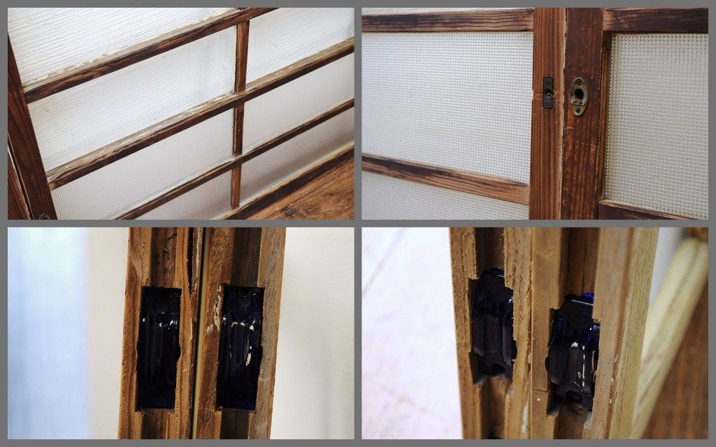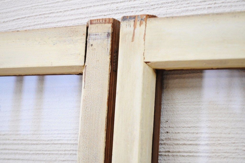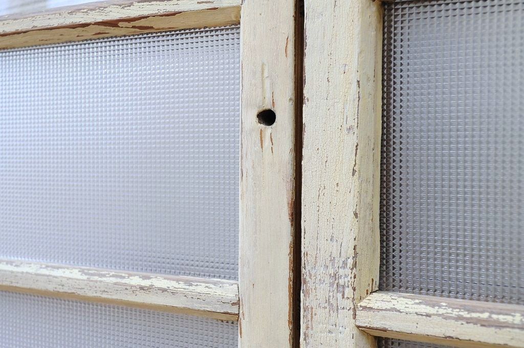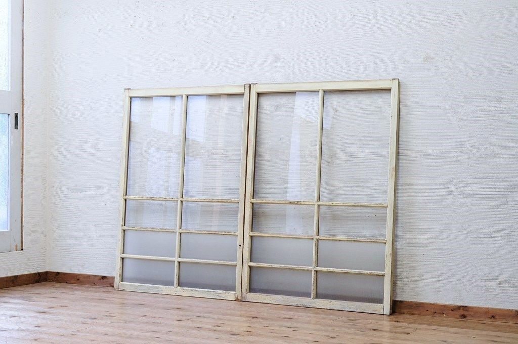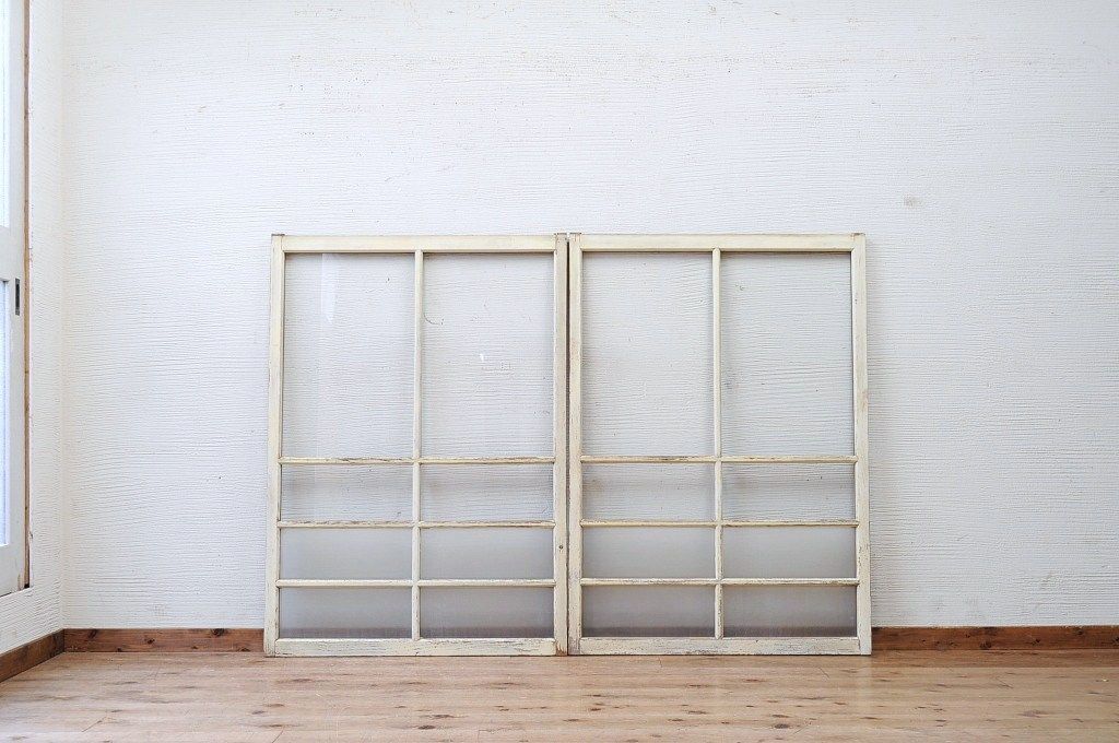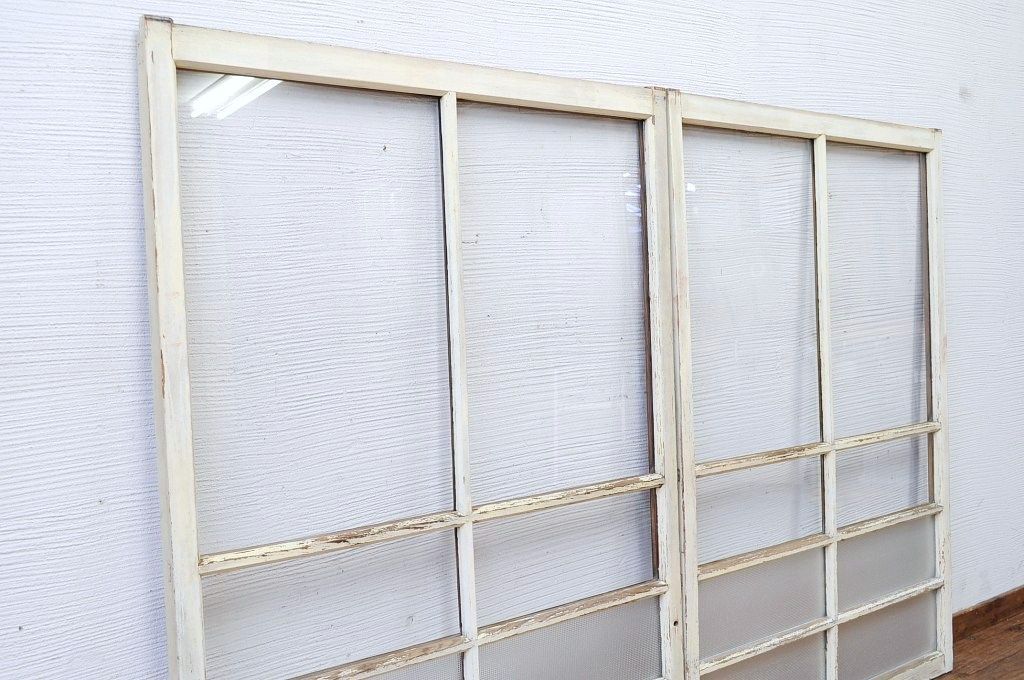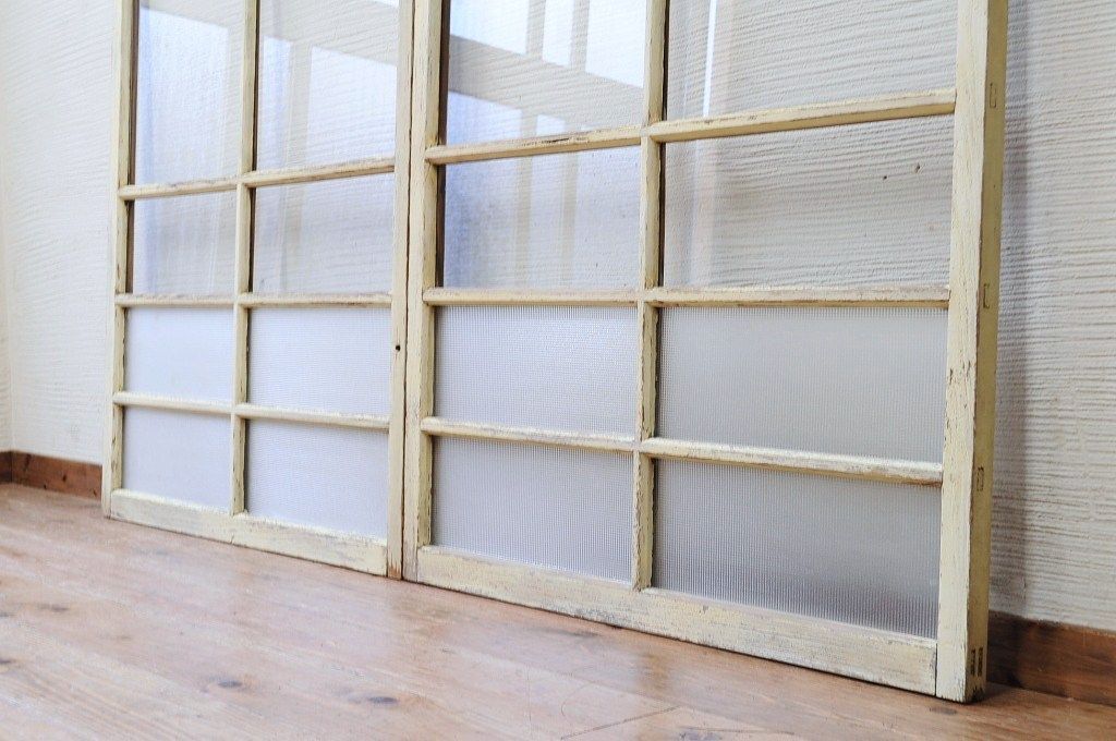 ペンキの剥げたレトロなガラス戸2枚セット