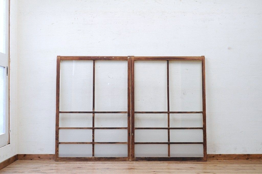 ペンキの剥げたレトロなガラス戸2枚セットです。