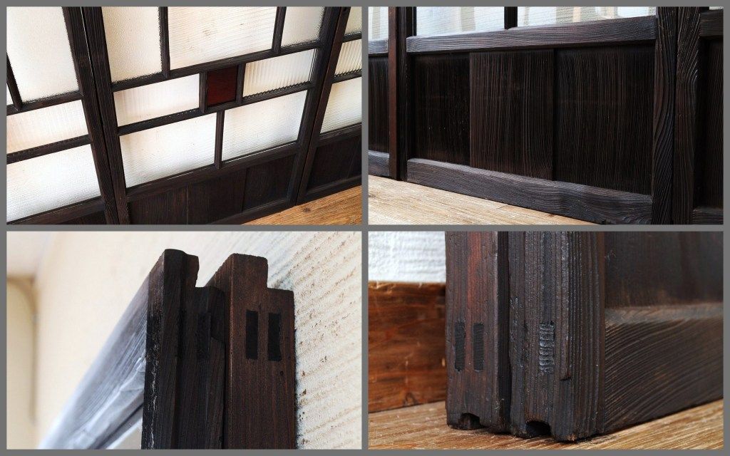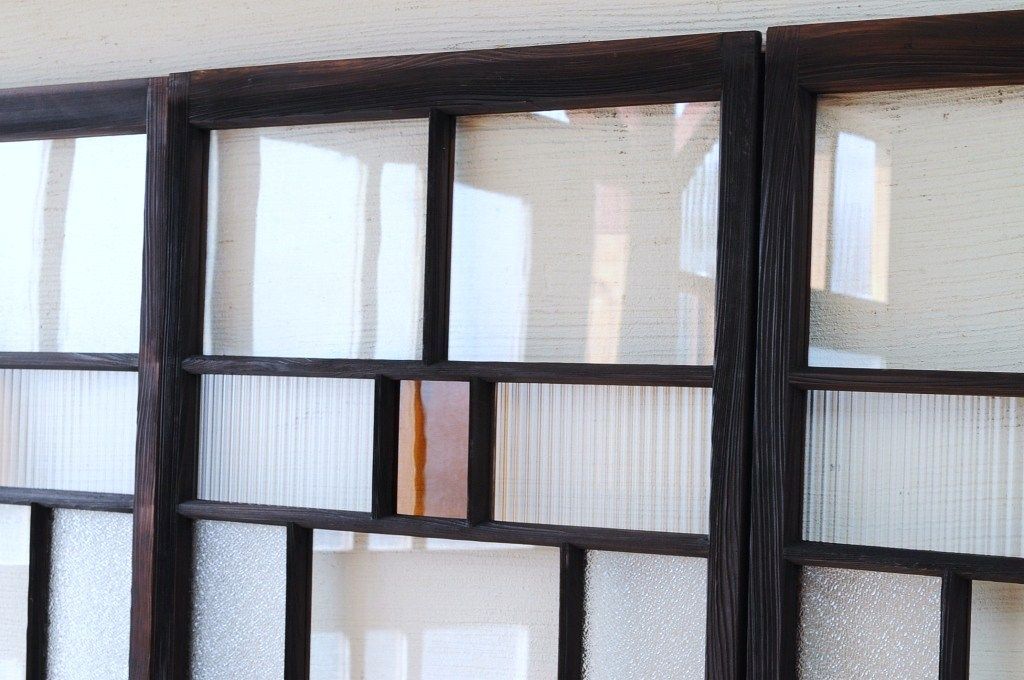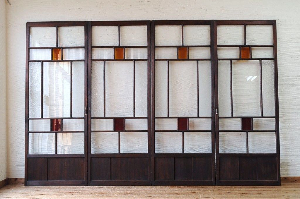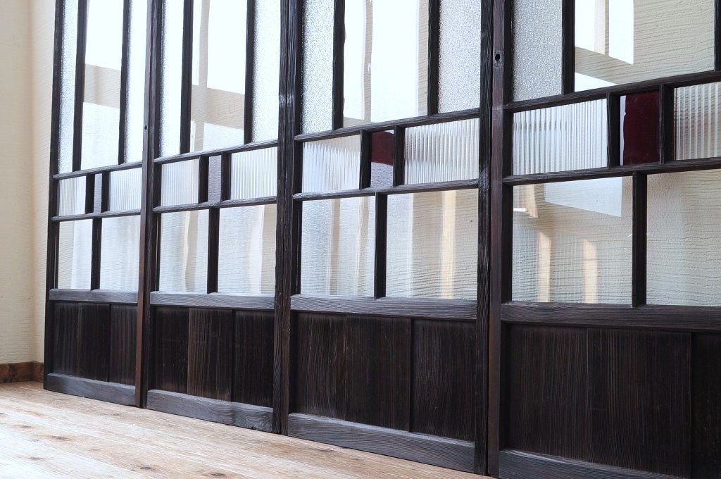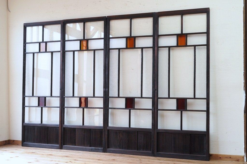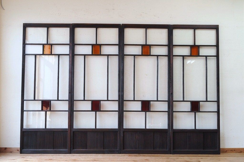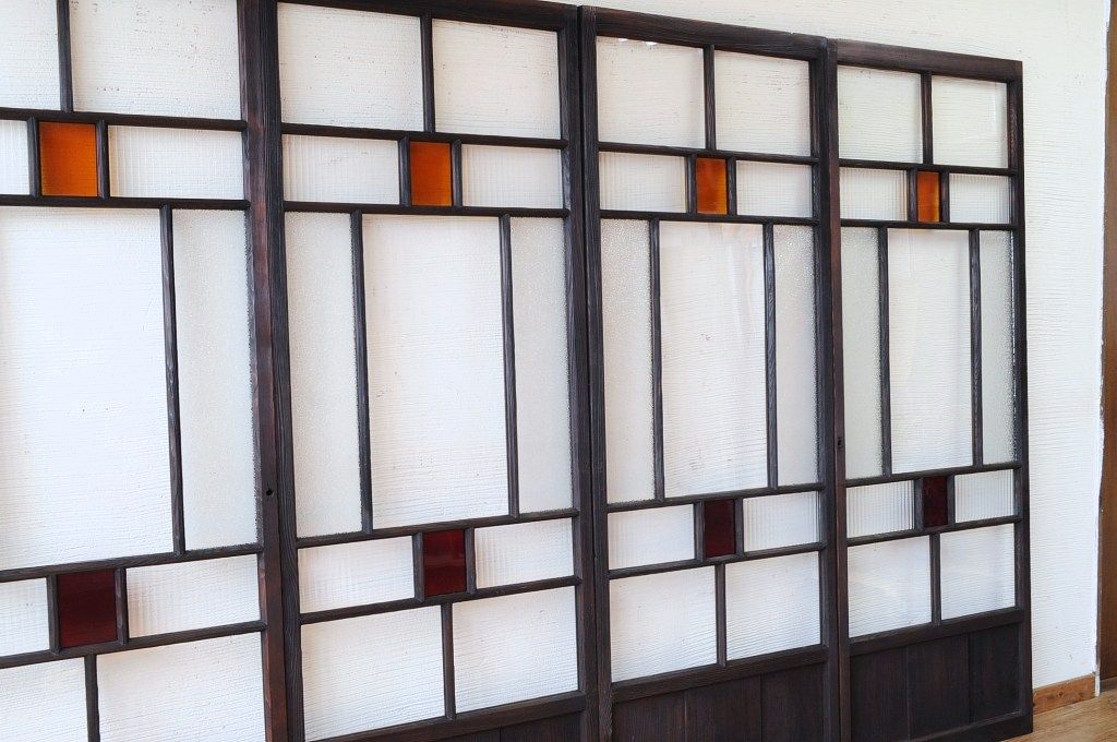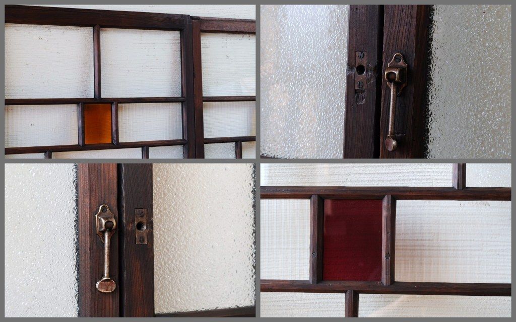 古い木の色ガラス引き戸4枚セット3