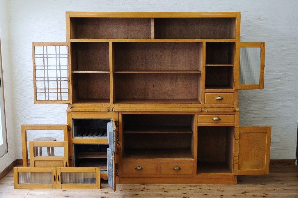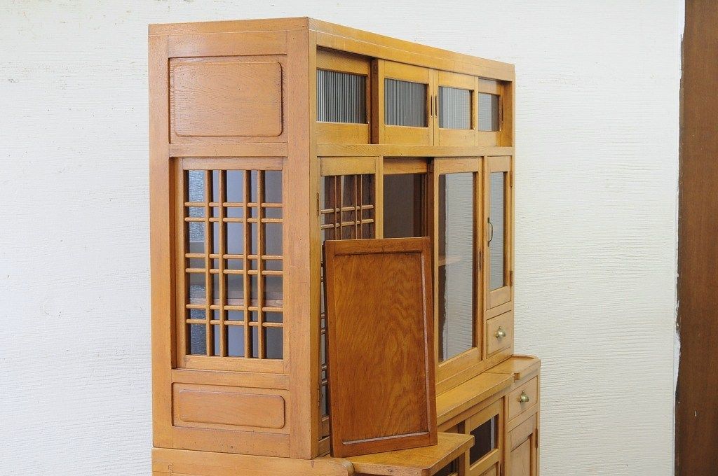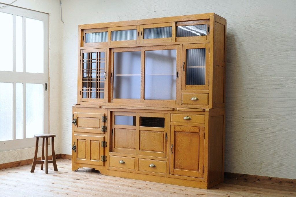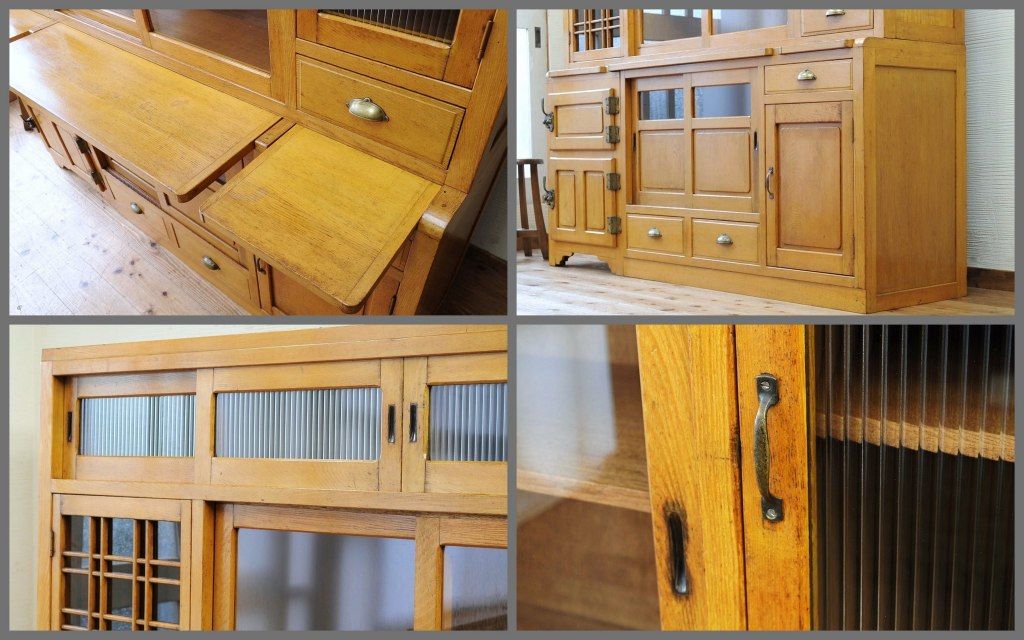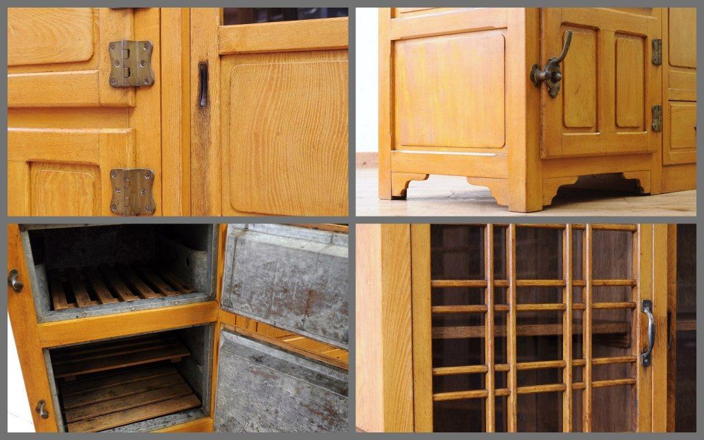 アンティーク家具 ◇珍品!古いナラ材の作業台と冷蔵庫のついた特大食器棚