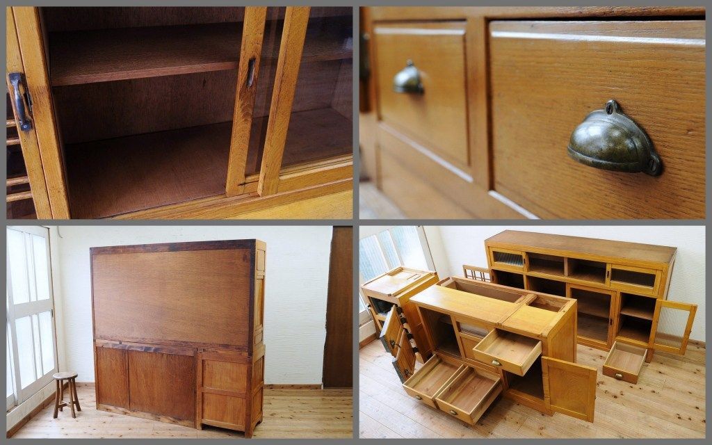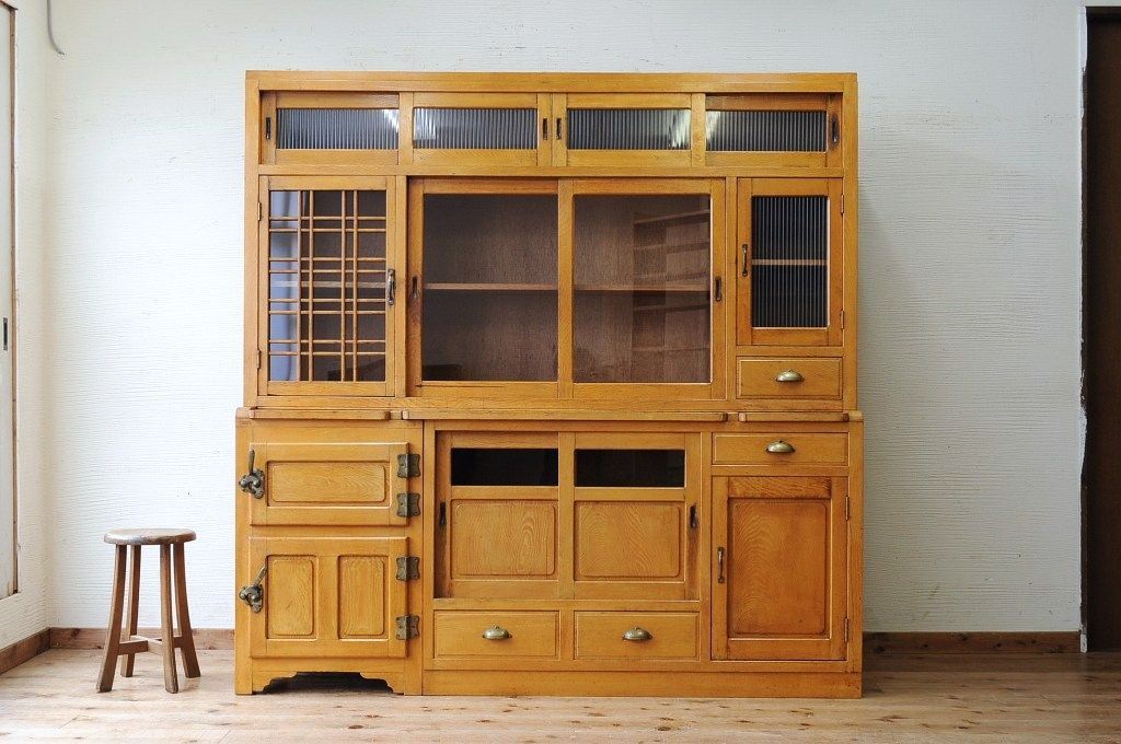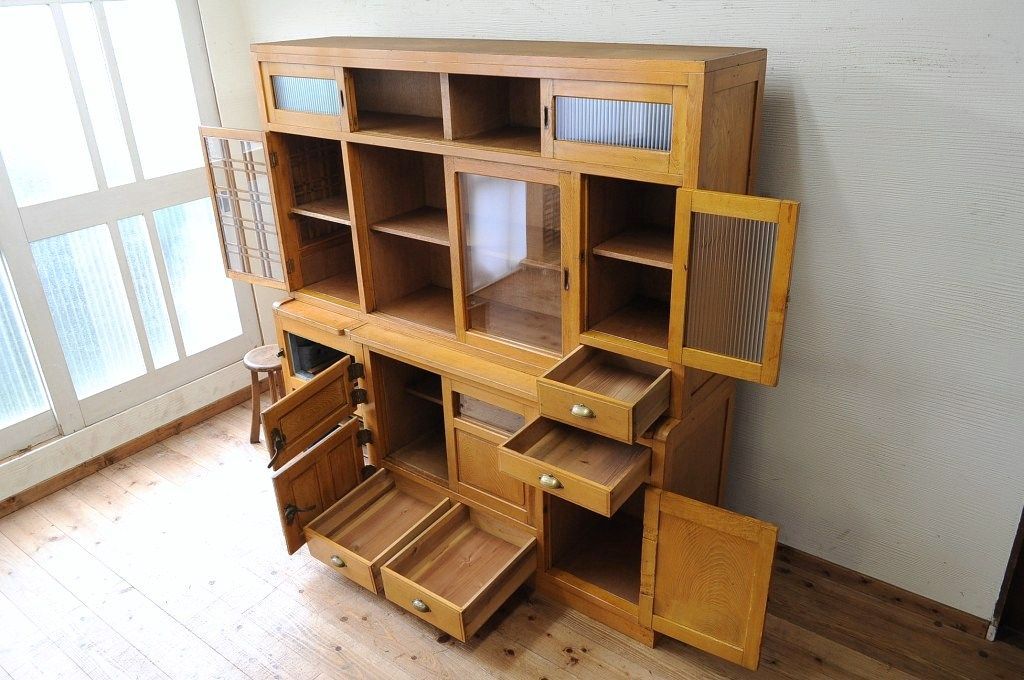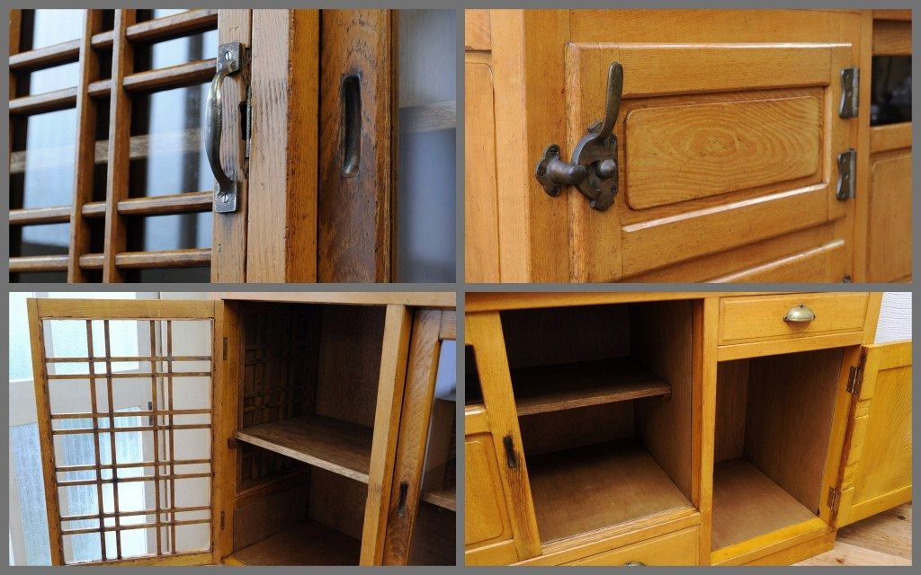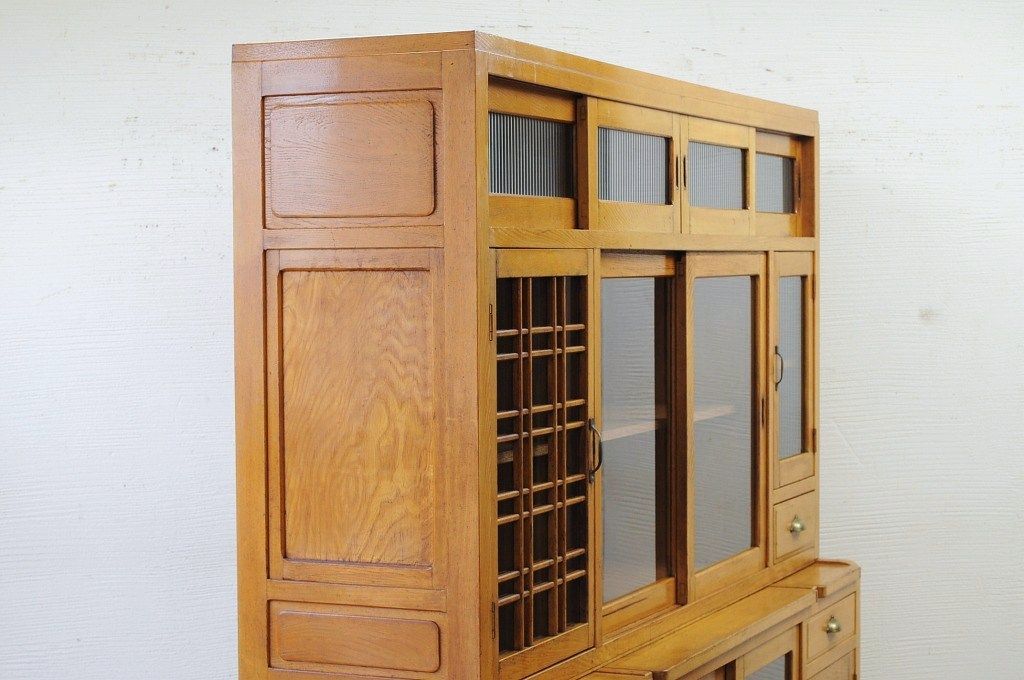 アンティーク家具 ◇珍品!古いナラ材の作業台と冷蔵庫のついた特大食器棚