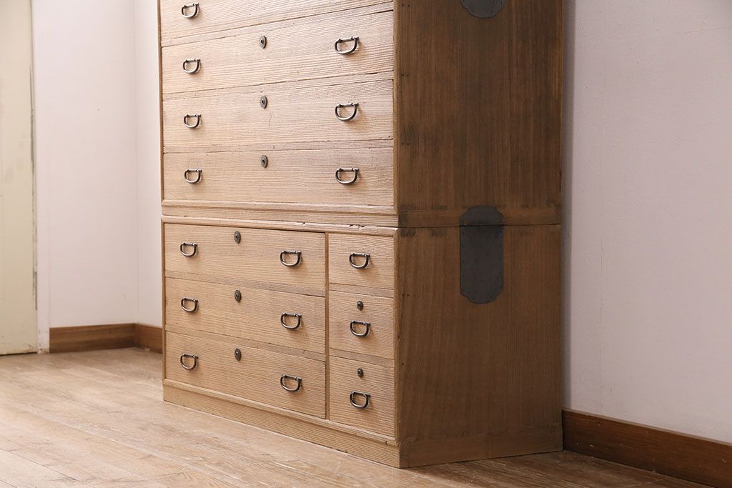 3段重ね桐箪笥を綺麗に再生!高品質リペアをし、指定箇所の金具を交換。蜜蝋ワックスで仕上げ。