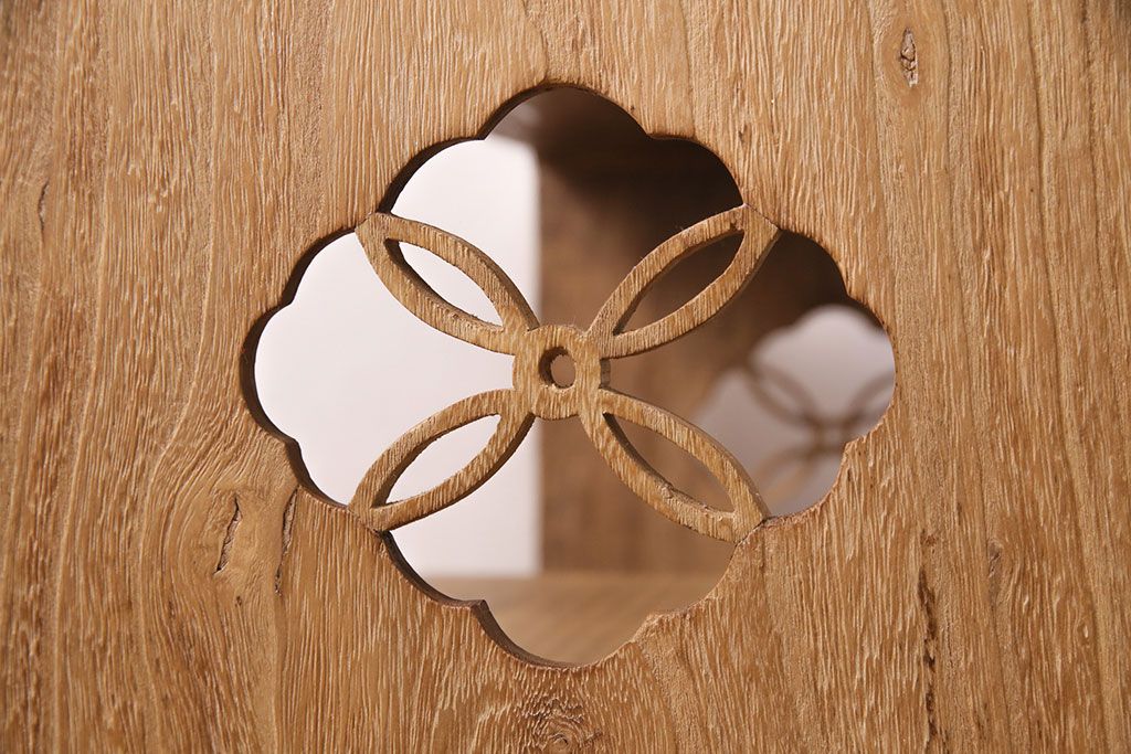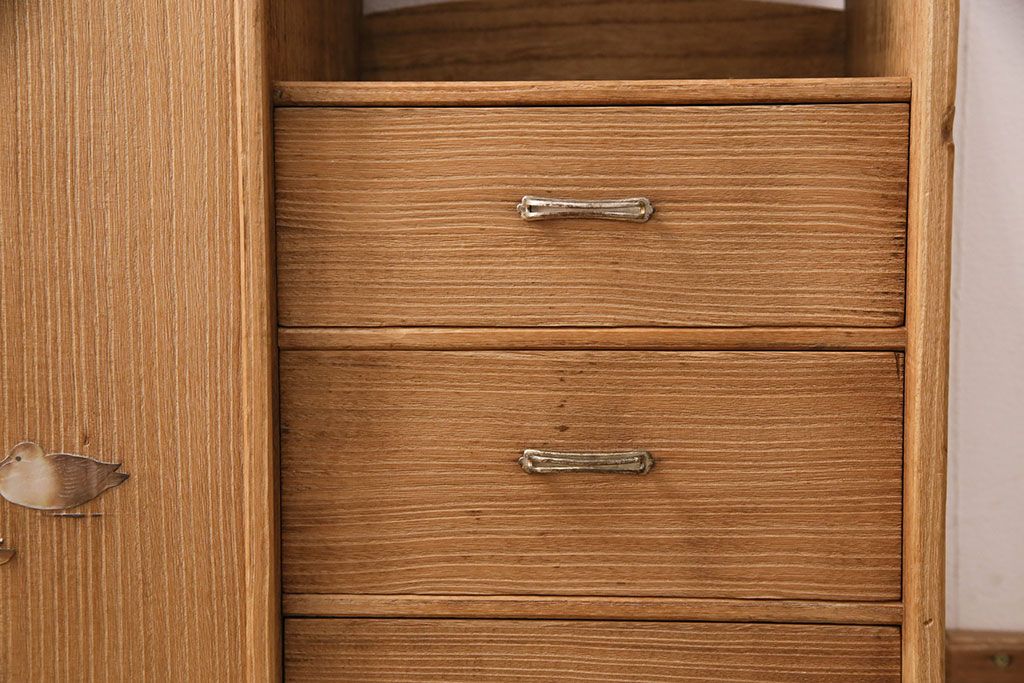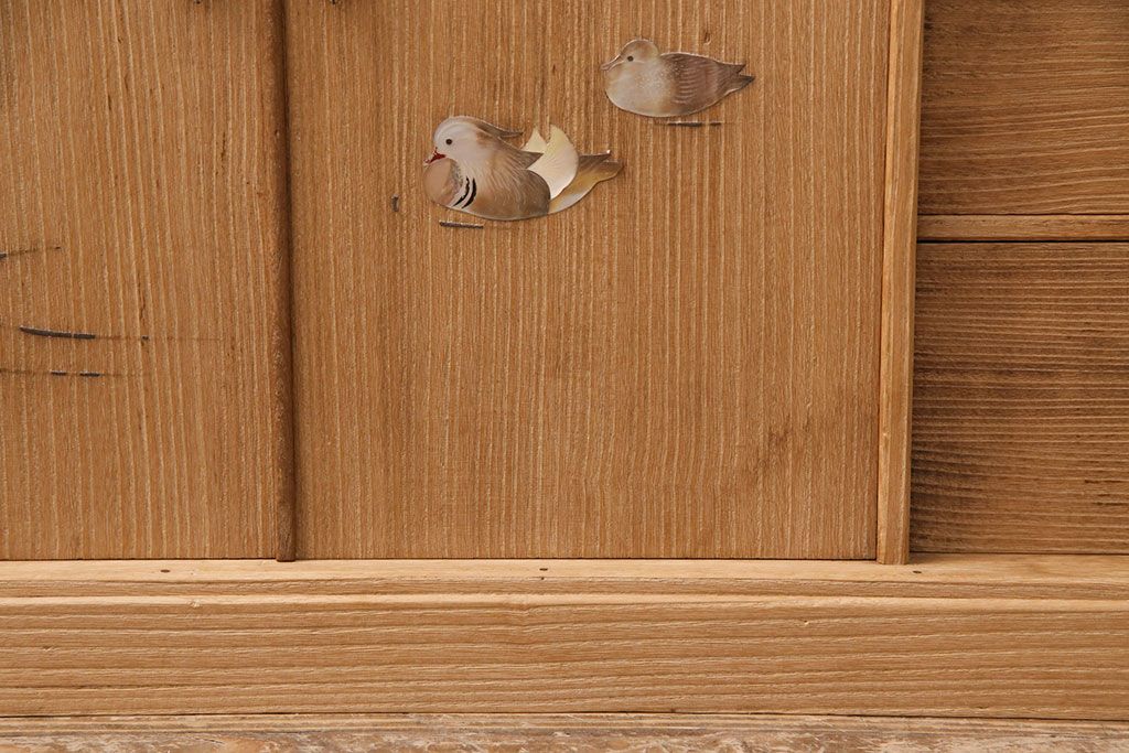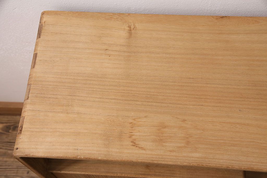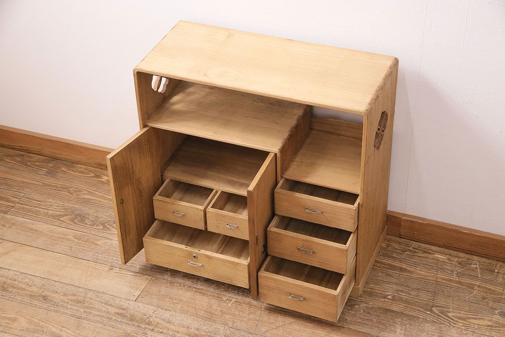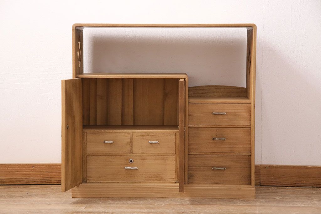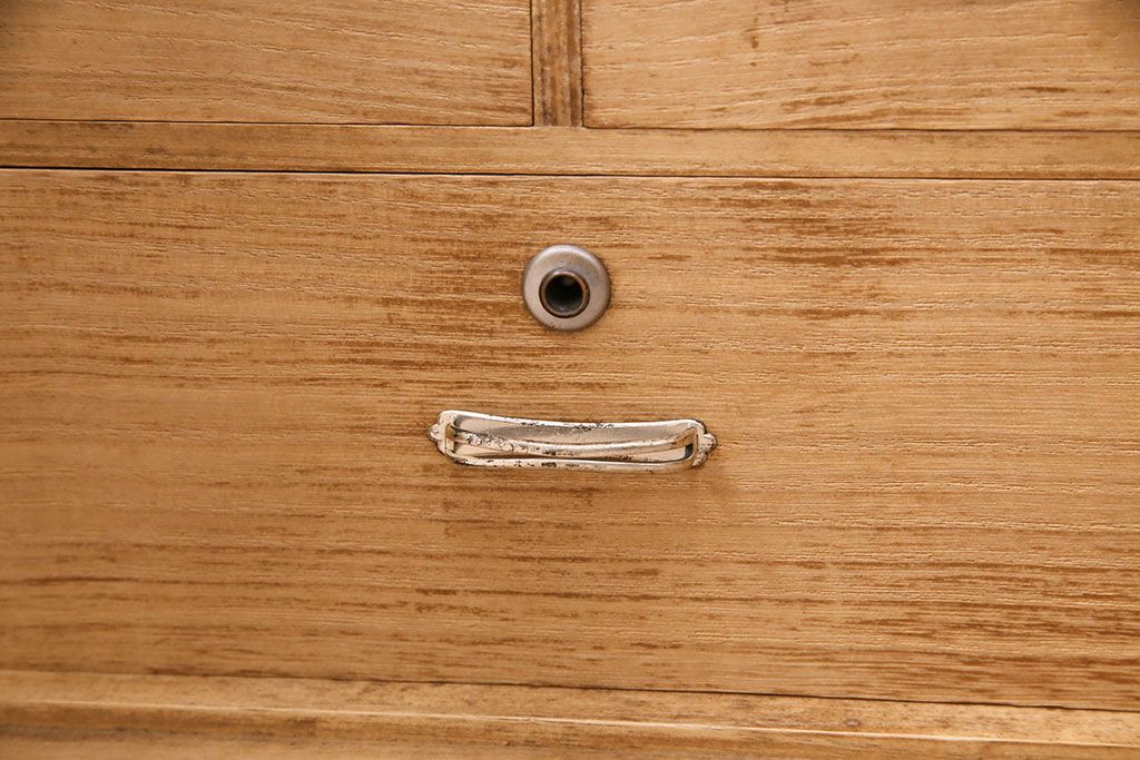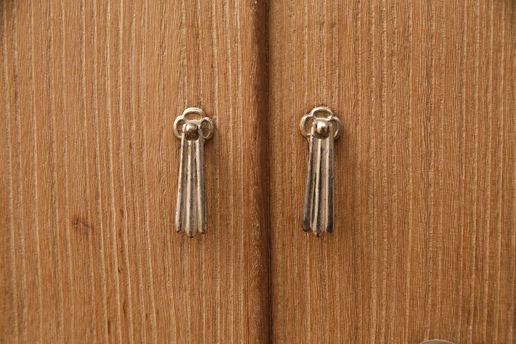 桐材収納棚を茶棚にリメイク!棚下のローラーを取り外し、透かし彫りを復元。右側引き出し上部に渡し板を取り付け。蜜蝋ワックス仕上げに。