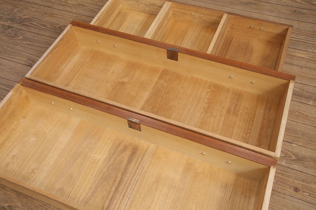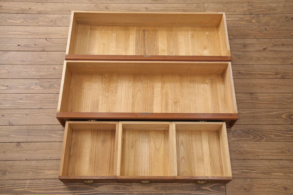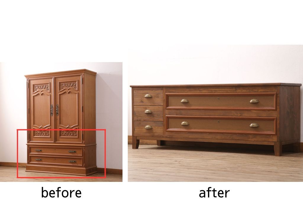 お客様持ち込みの婚礼家具和箪笥の中央引き出し3杯、下方引き出し2杯を使用してテレビ台を製作