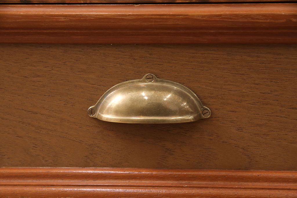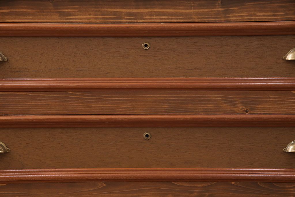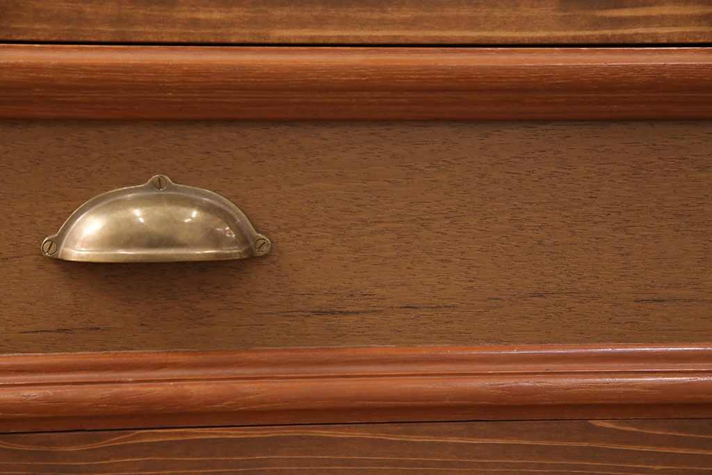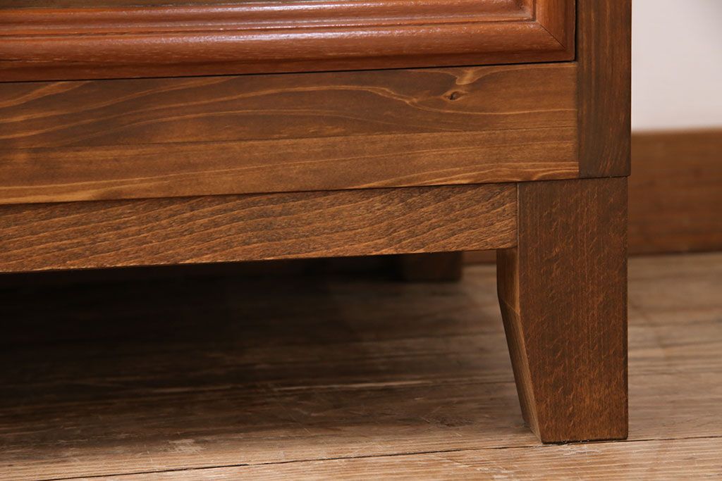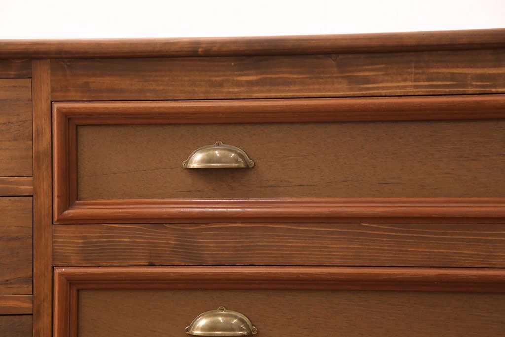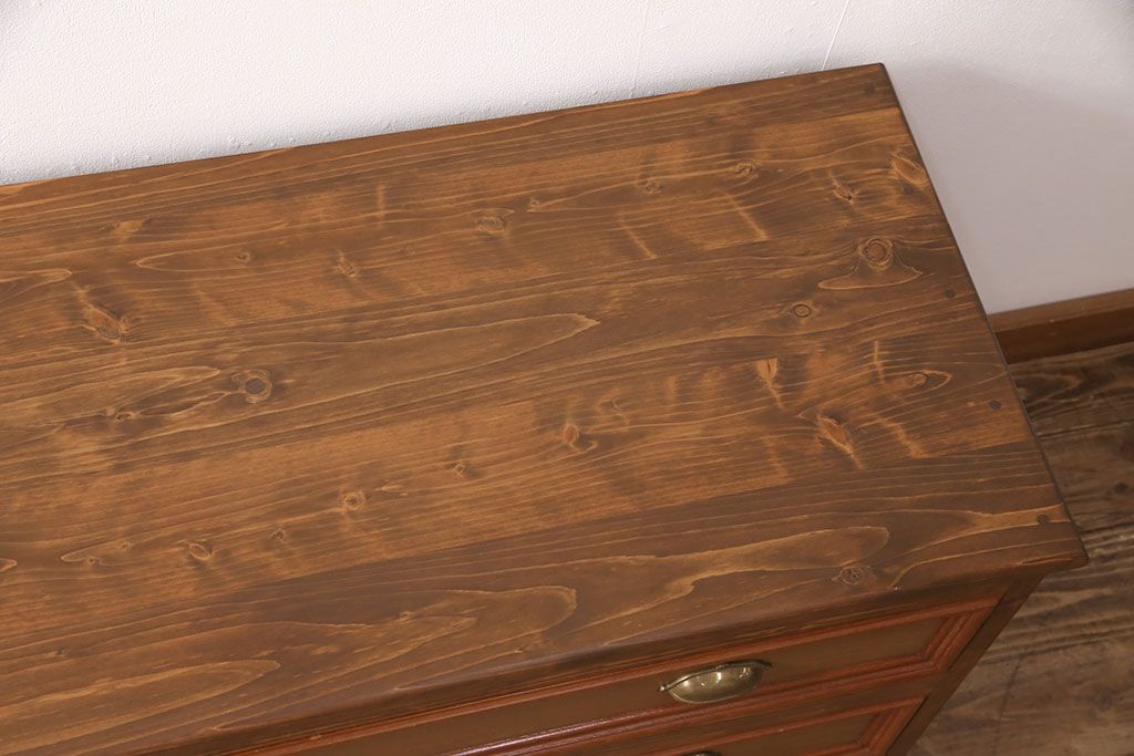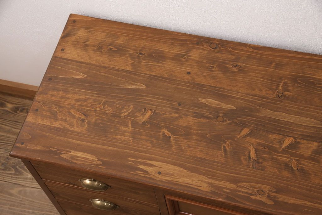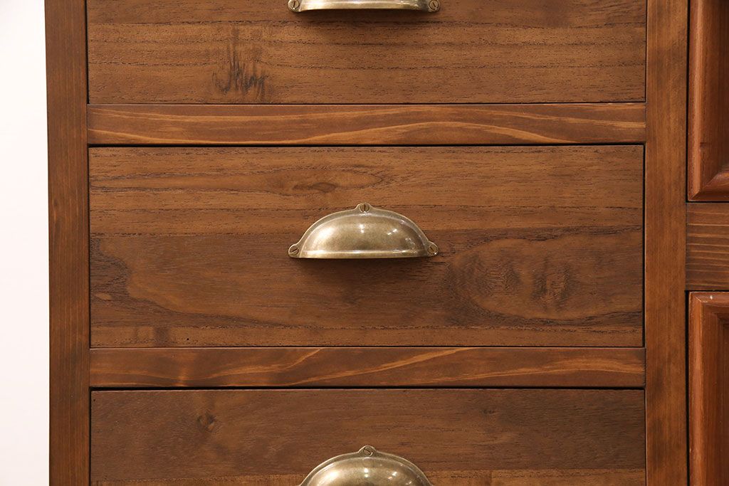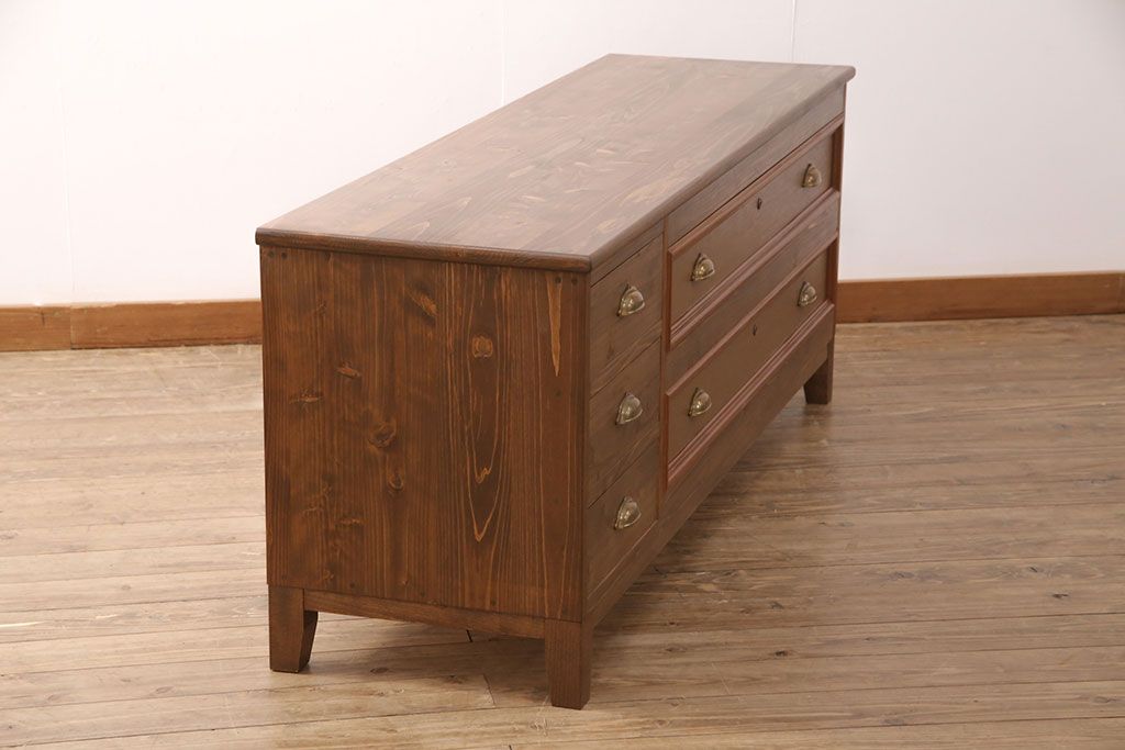 和箪笥をテレビ台にリメイク!箪笥の引き出しを利用。天板は面取りをし、引手と脚を取り付け。明るめのブラウンに着色仕上げ。