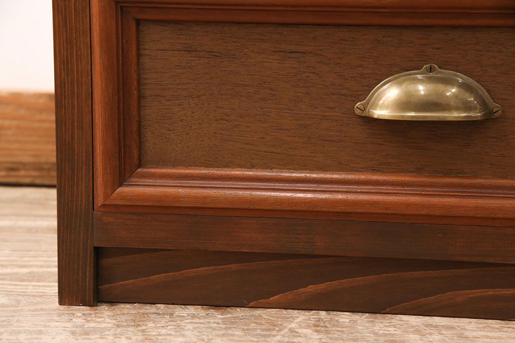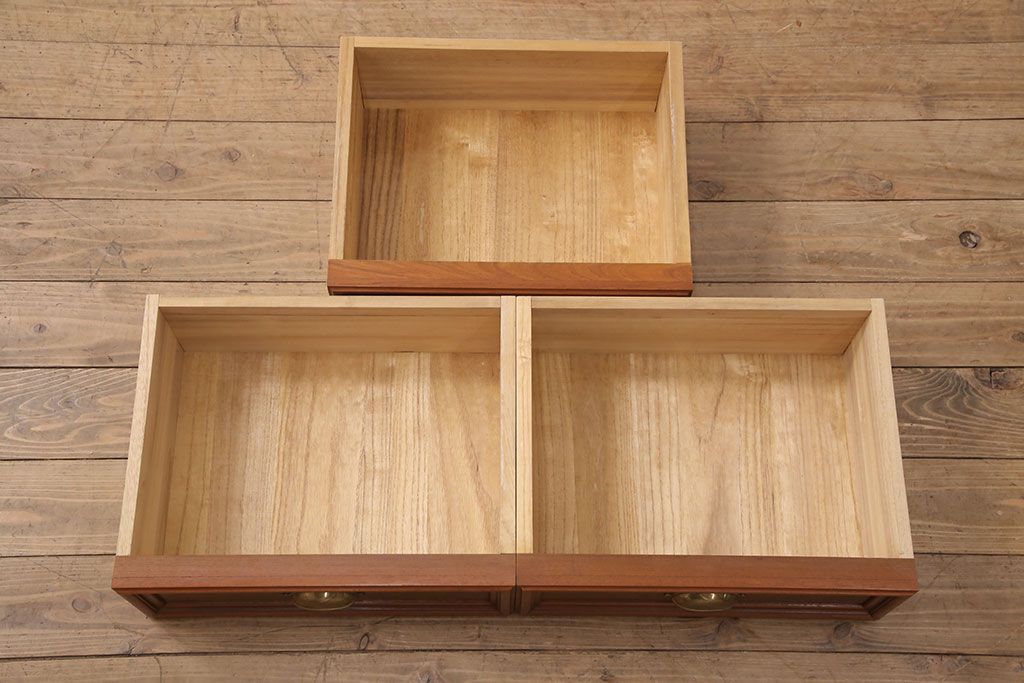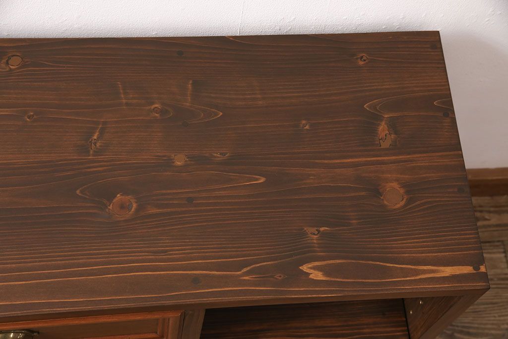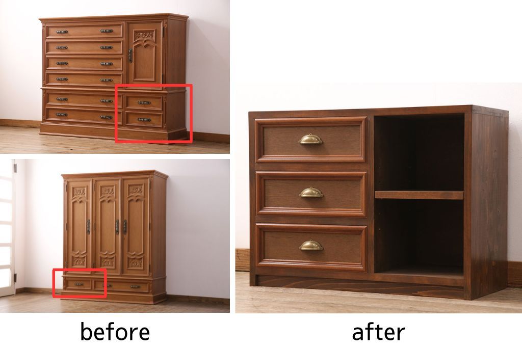 お客様持ち込みの婚礼家具整理タンスの右下・引き出し2杯、洋タンスの左下・引き出し1杯を使用してテレビ台を製作