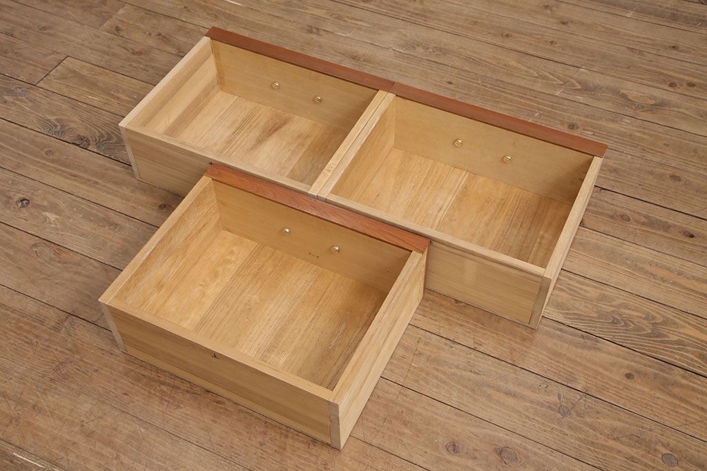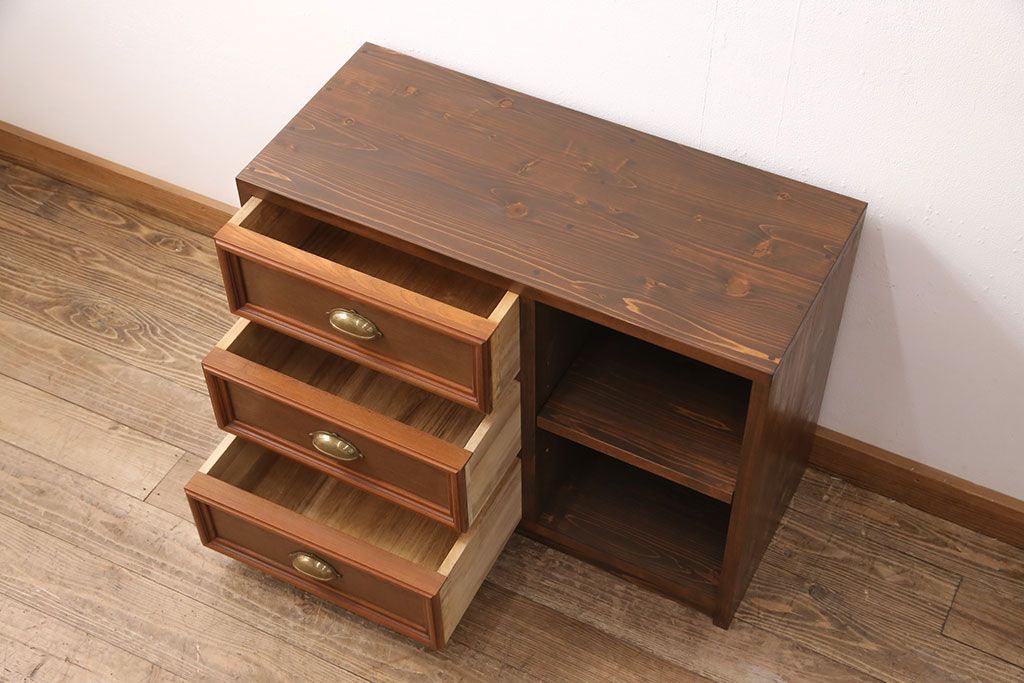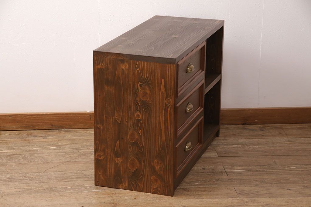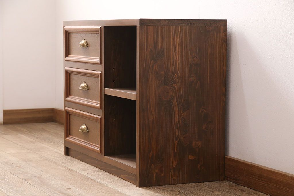 ◆本体左側に引き出し3杯、右側に可動式の棚板1枚(ダボ50mmピッチ)
