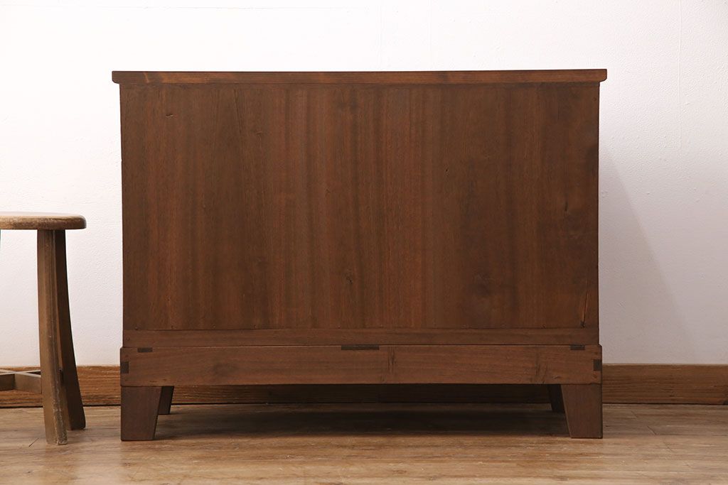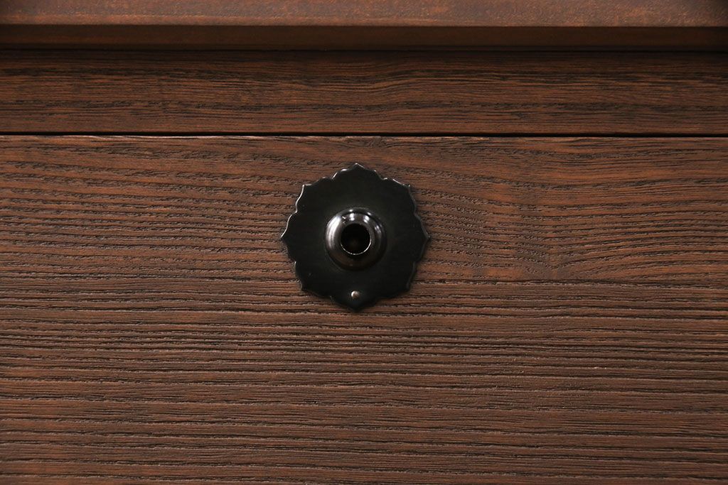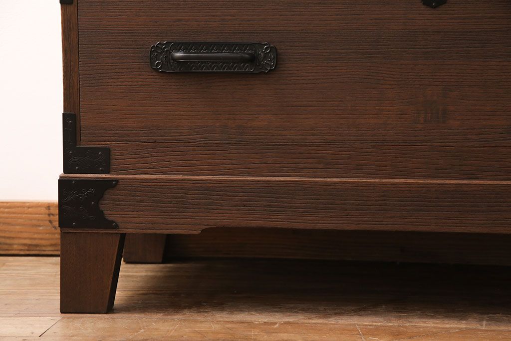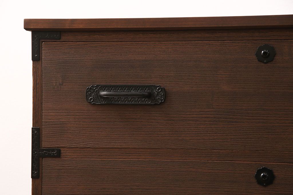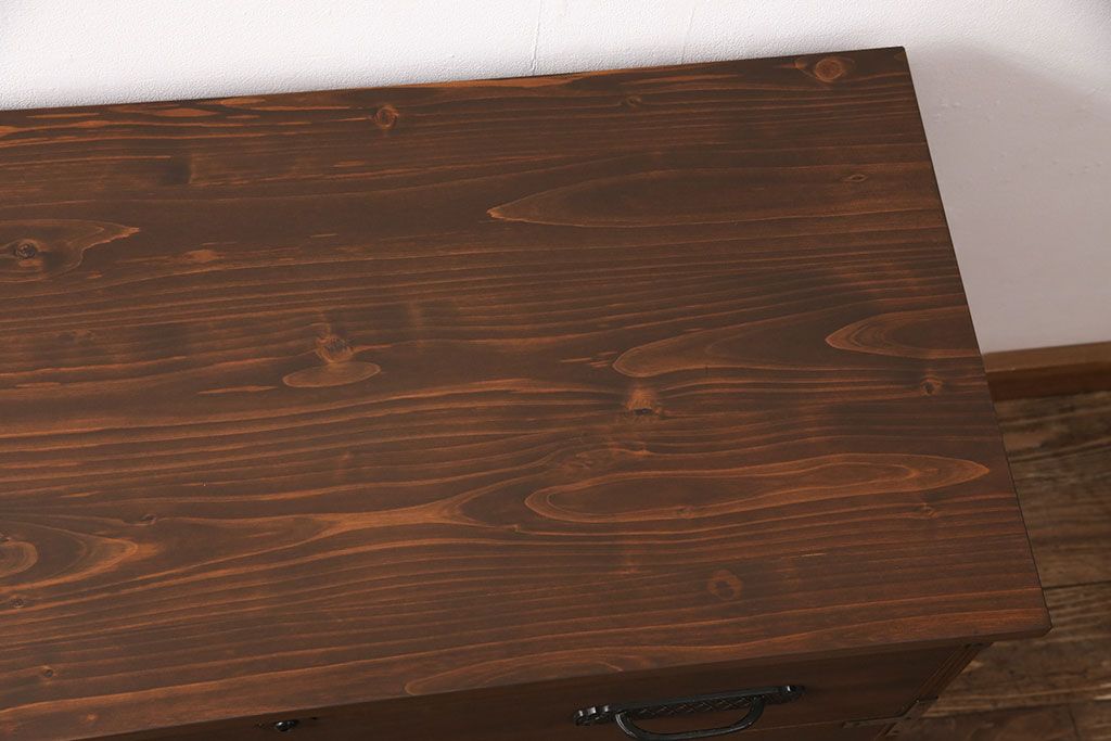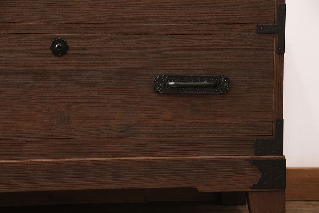 2段重ね桐箪笥の下段をローボードにリメイク!ヒノキ無垢材の天板と、桐材の脚を取り付け。オーク系に着色仕上げ。