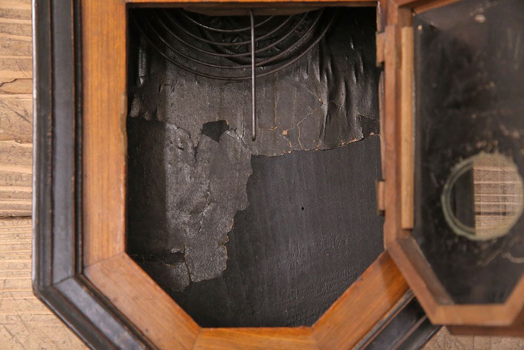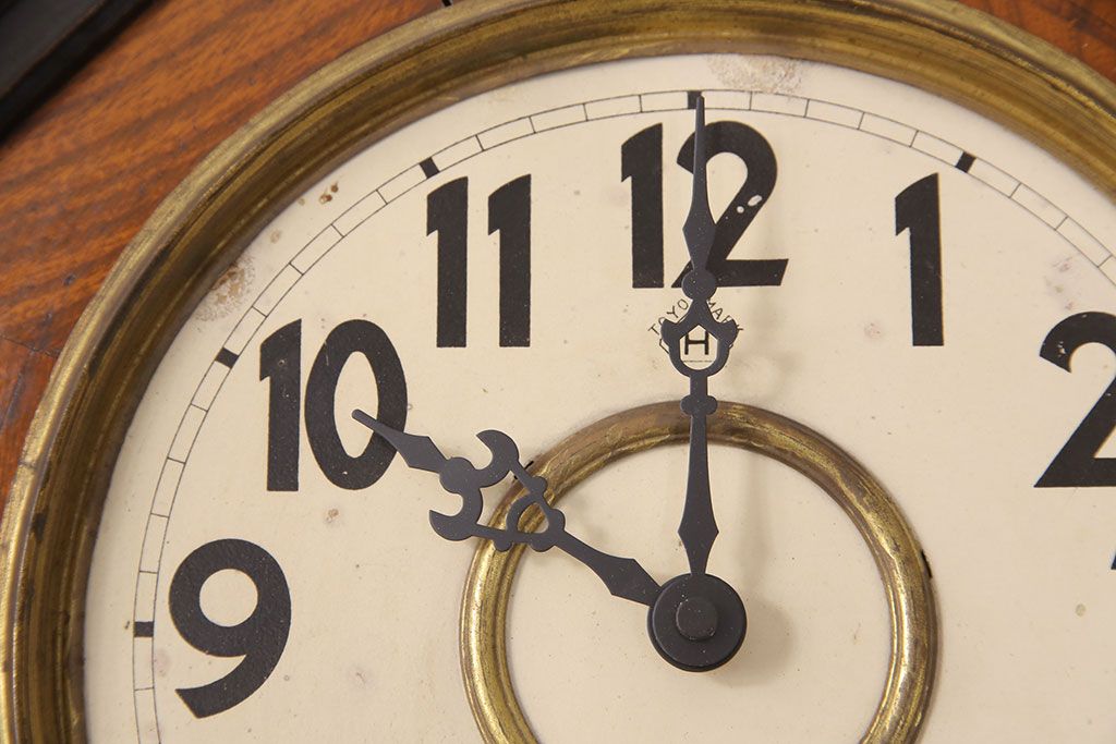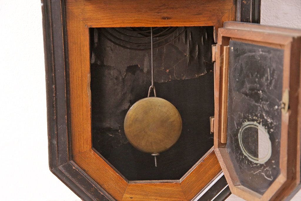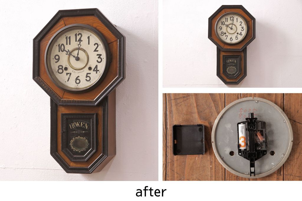 掛け時計を綺麗に再生!高品質リペアを施し、電池式ムーブメントを取り付け。曲がった文字盤を矯正し、クリーニングと自然な着色で仕上げ。