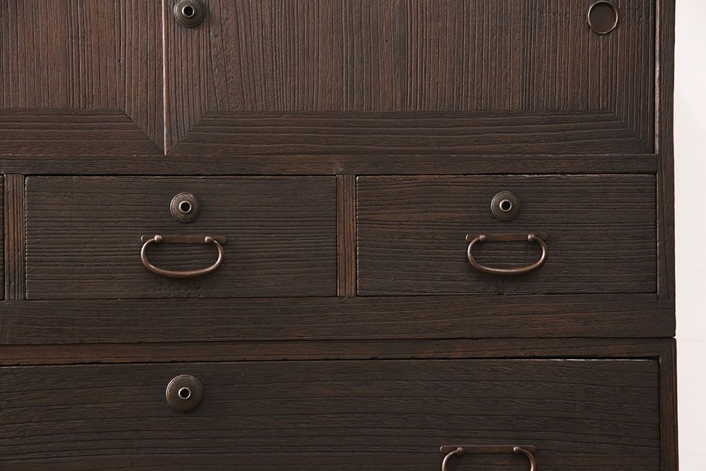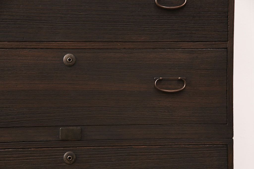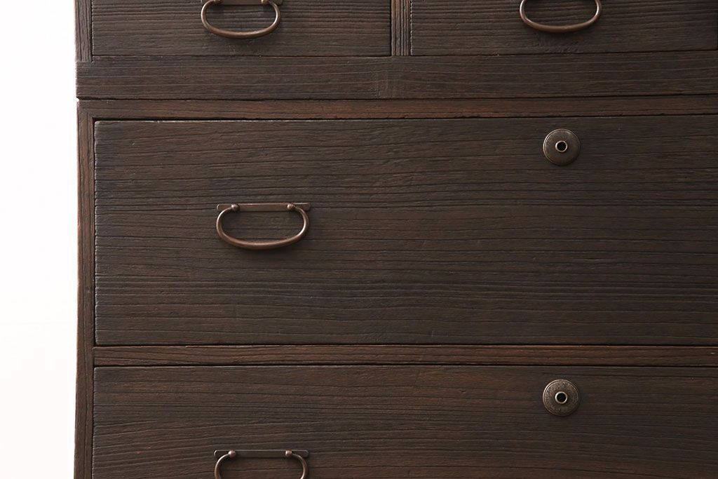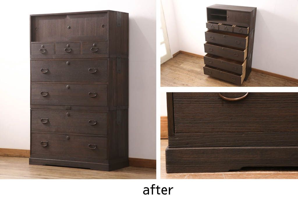 桐箪笥を綺麗に再生!背面と台輪を新しいものに取り替え、引き出し前板はパテで穴埋め。チェスナット系の着色仕上げ。
