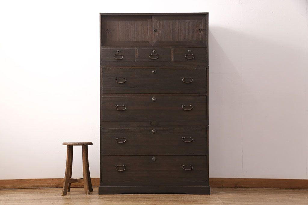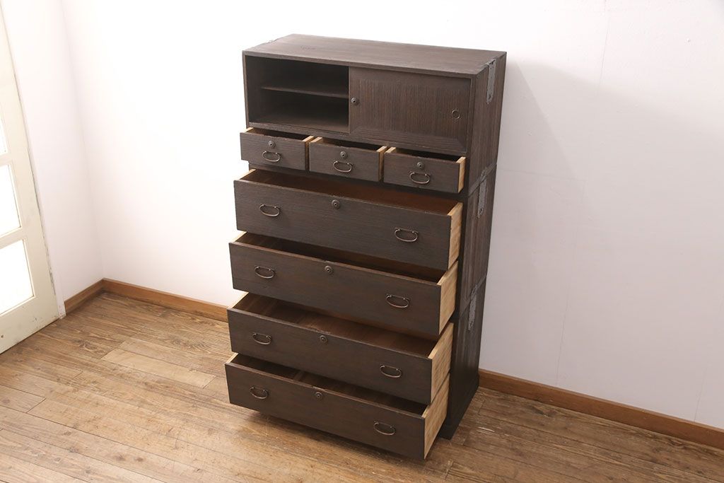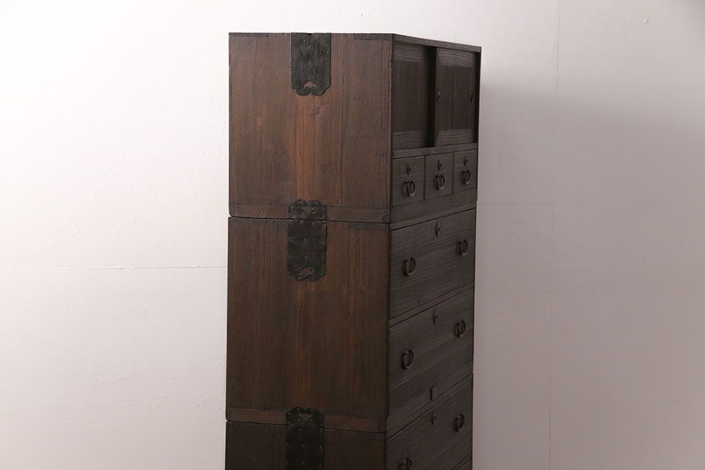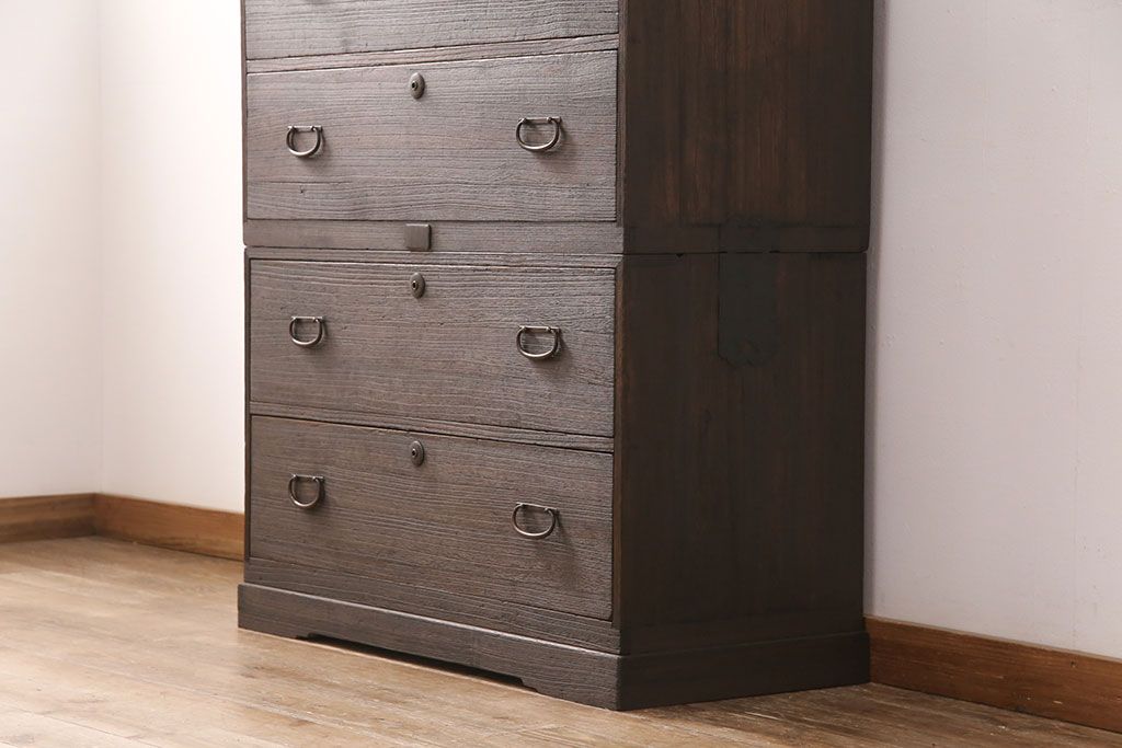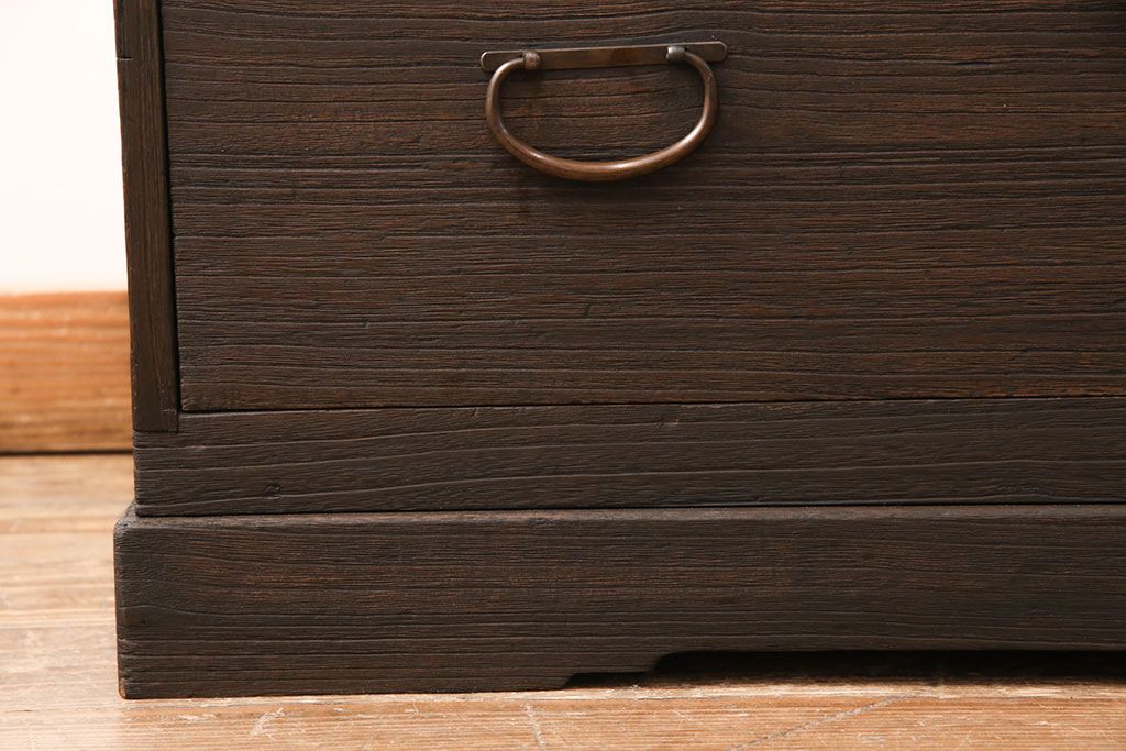 桐箪笥を綺麗に再生!背面と台輪を新しいものに取り替え、引き出し前板はパテで穴埋め。チェスナット系の着色仕上げ。