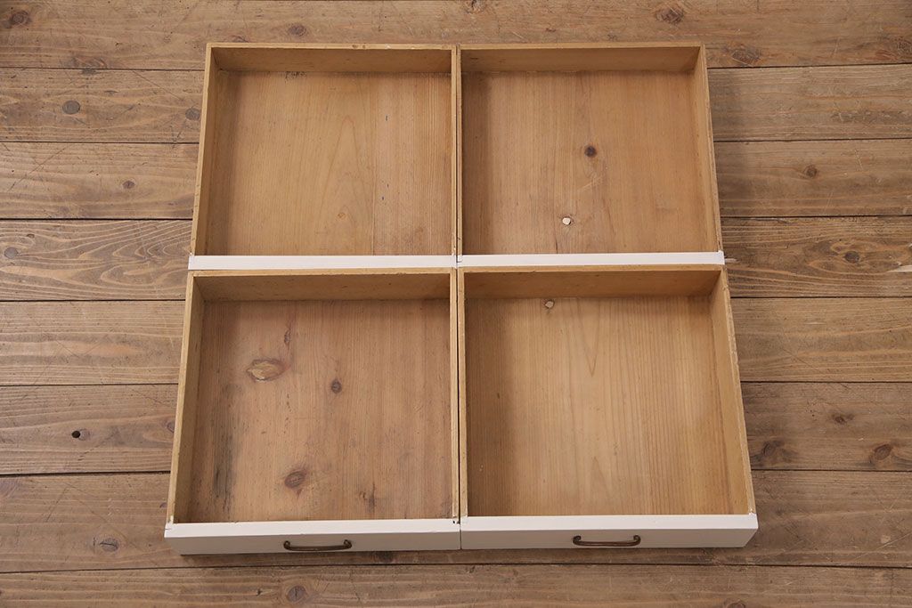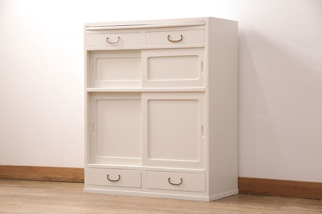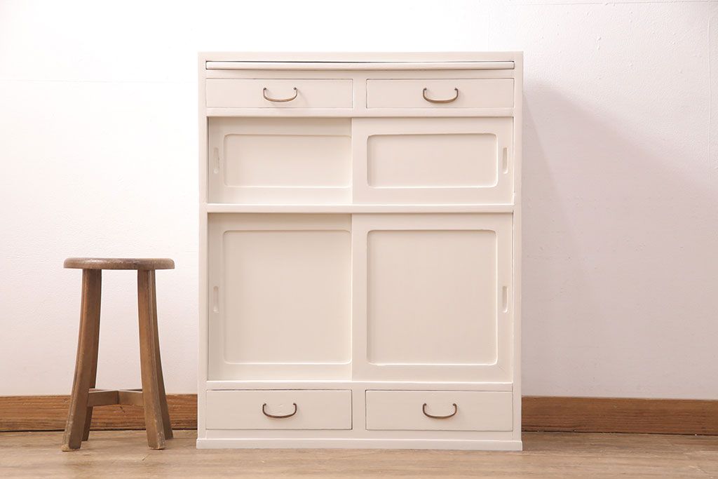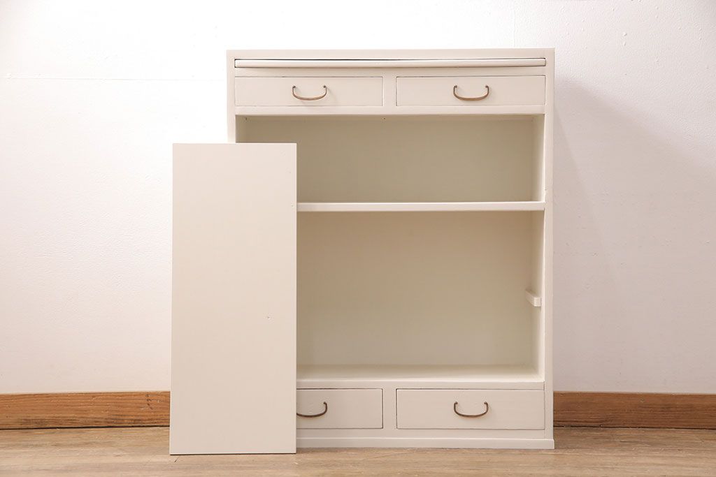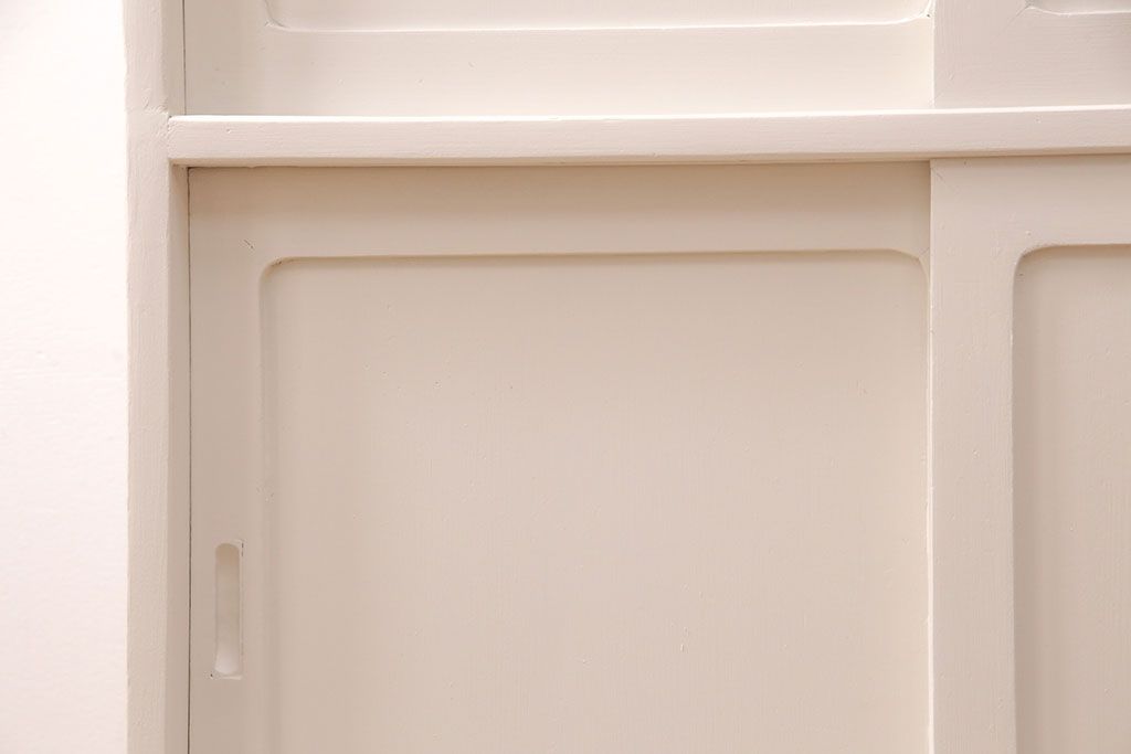 セミオーダー家具実績 > キャビネットをリペア&カスタム!背面板で上下段の継ぎ目をカバー。背面までアンティークホワイトでペイント仕上げ。(収納棚、戸棚)