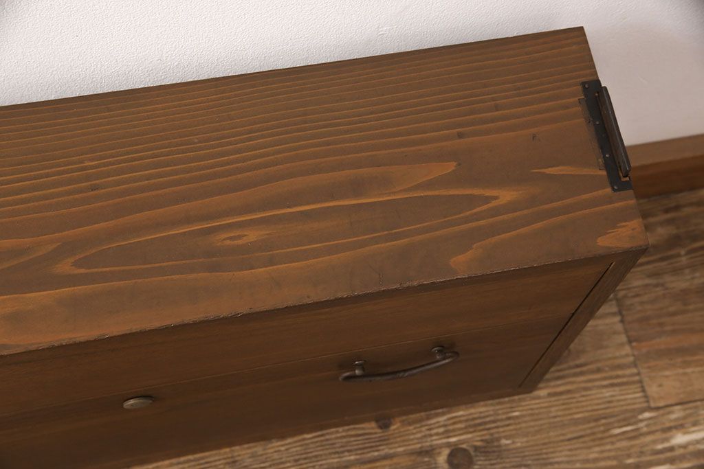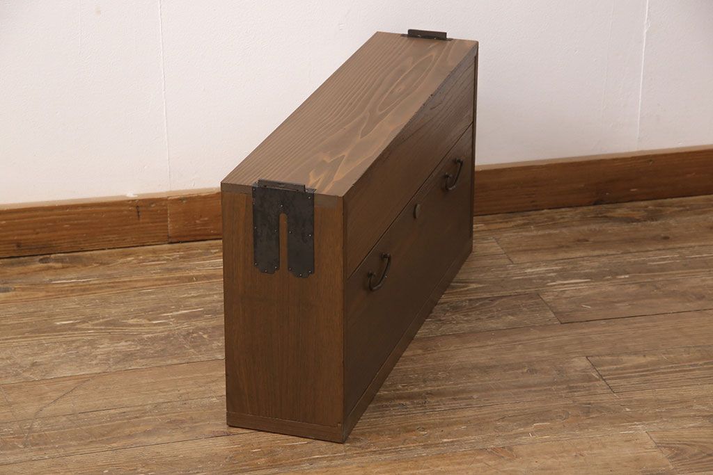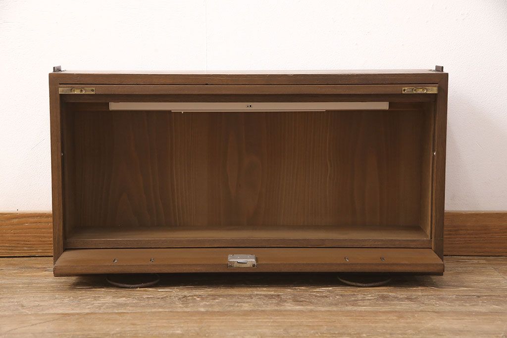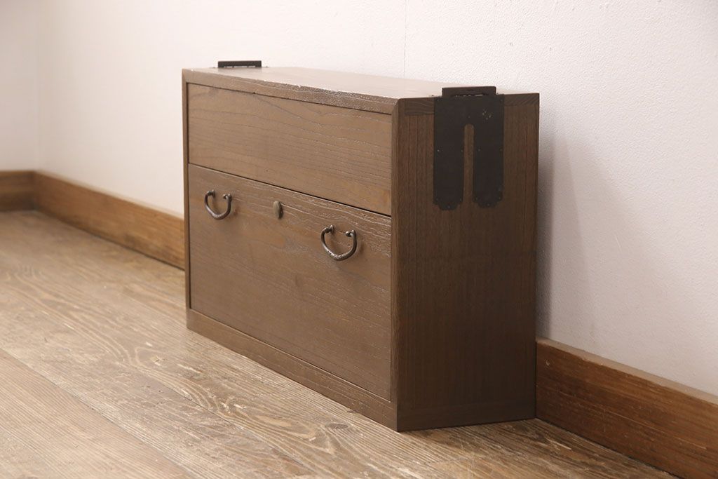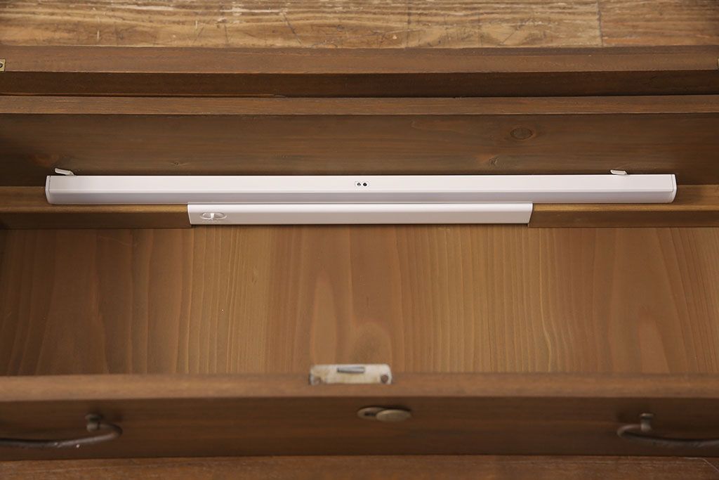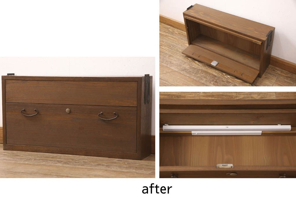 桐箪笥を壁掛け仏壇にリメイク!上下収納型開き戸に変更。内部は扉の開け閉めでライトが自動で点灯・消灯する仕様に。