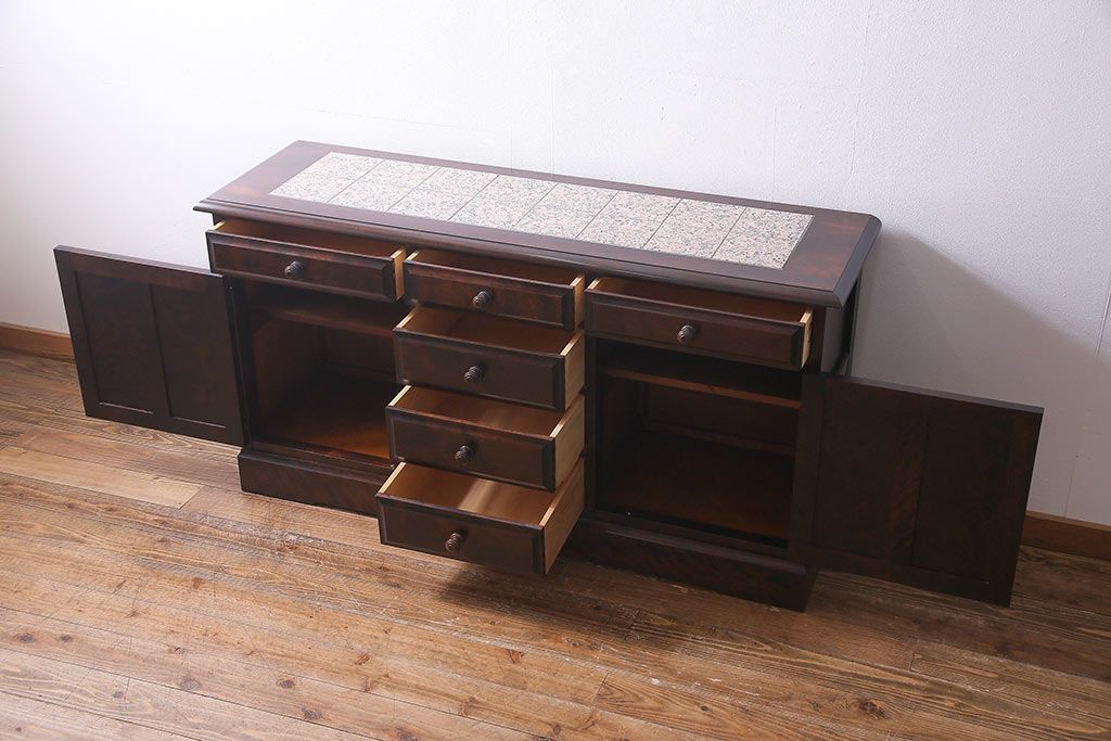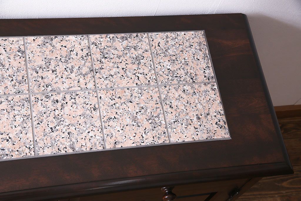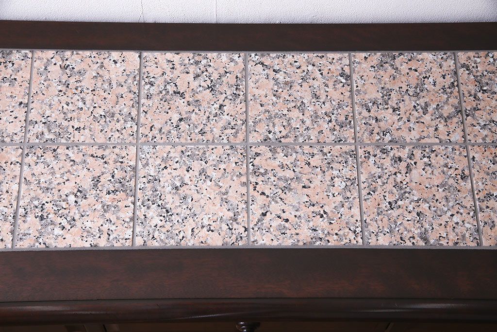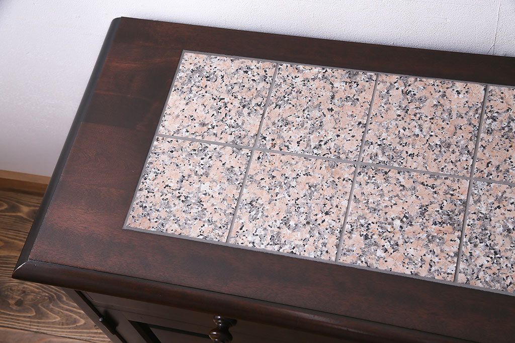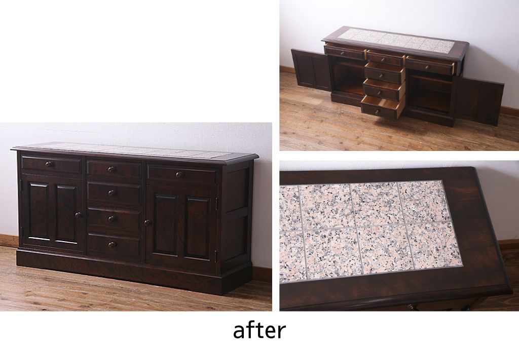 サイドボードの天板をタイルトップにリメイク!高品質リペアを施し、御影石を使用したタイルトップ天板に加工。