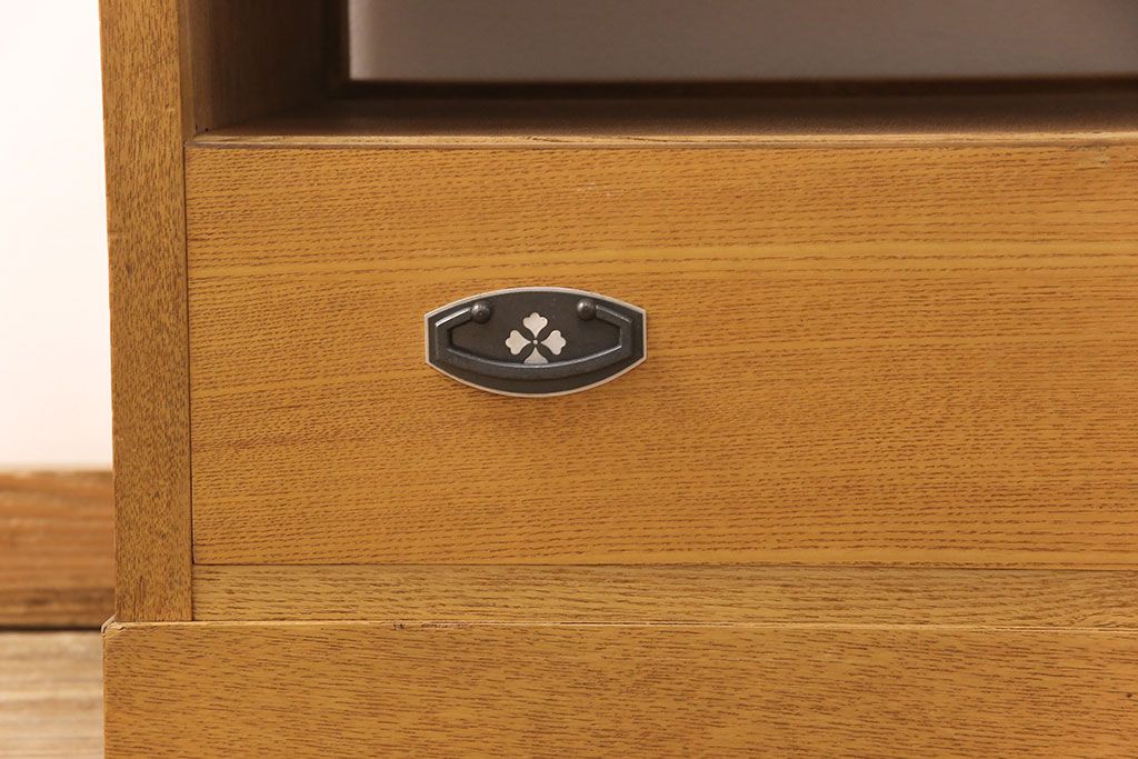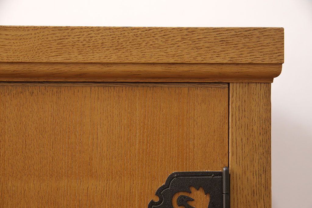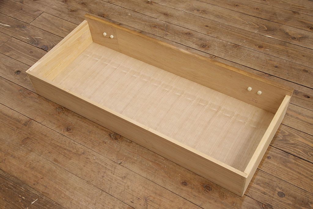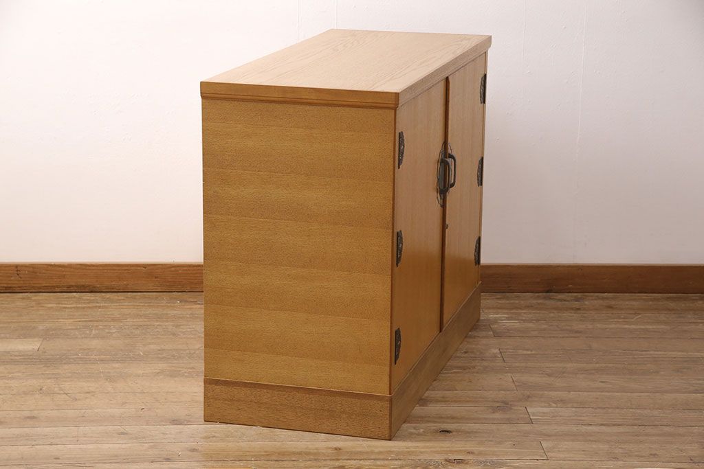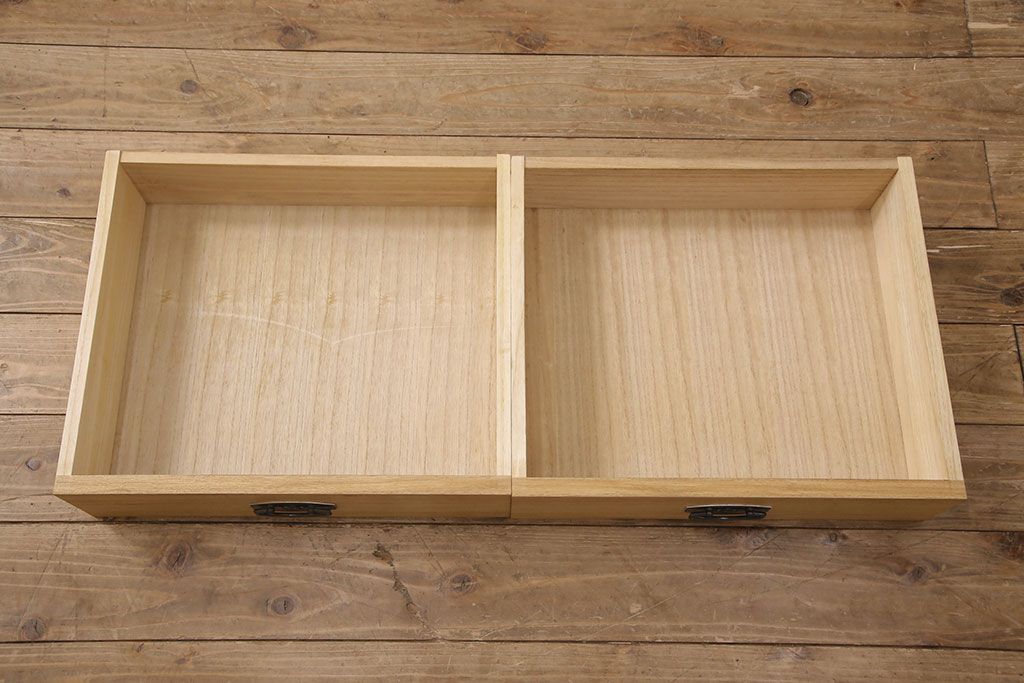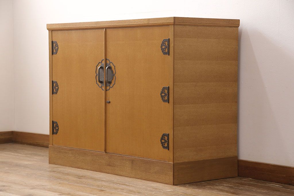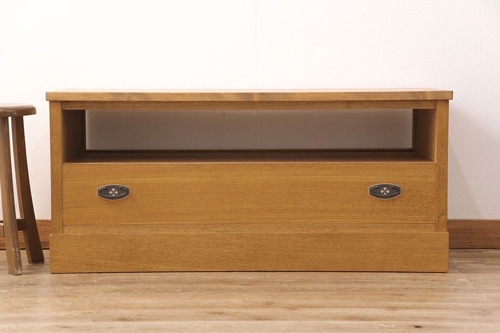 ラフジュ工房> お手持ちの家具・建具リメイク実績> 婚礼家具リメイク実績 > 和箪笥をキャビネットとテレビボードにリメイク!上段は高さを低くリサイズ。内部を取り外し、棚板を設置。台輪を取り付けてキャビネットに。下段の引き出しは、1段目の引き出しを撤去し、オープン仕様に。天板を取り付けてテレビボードに加工。