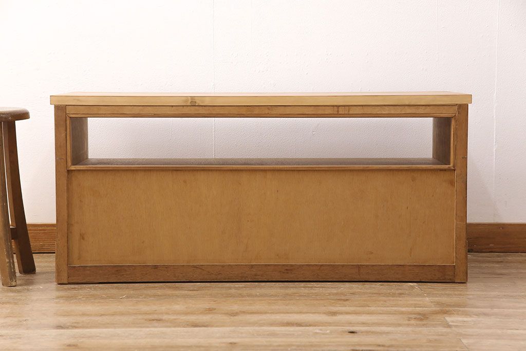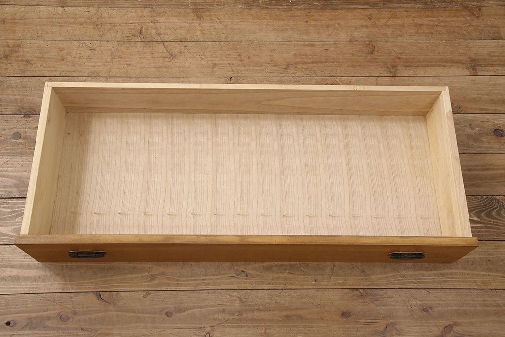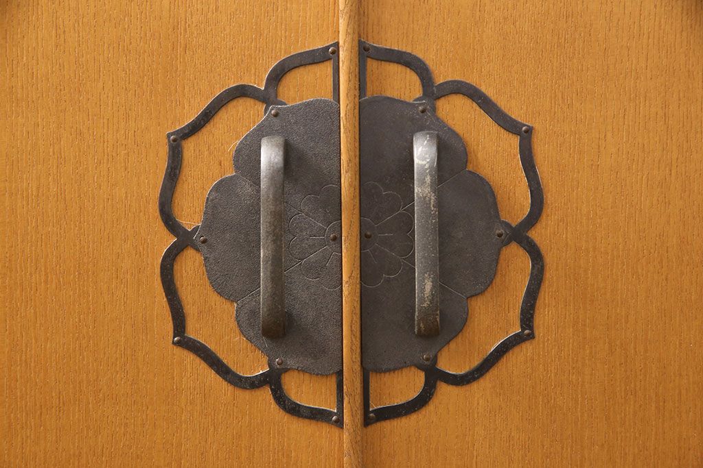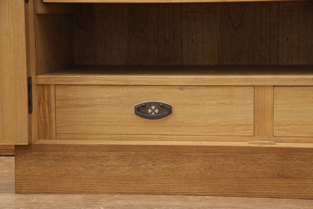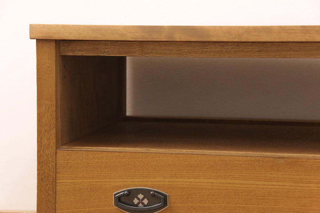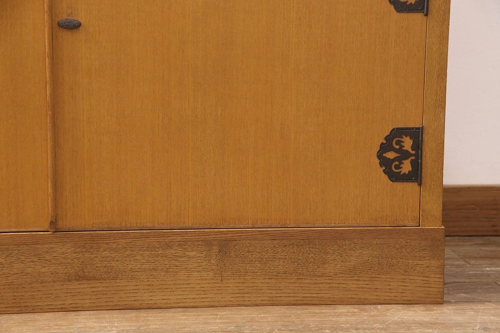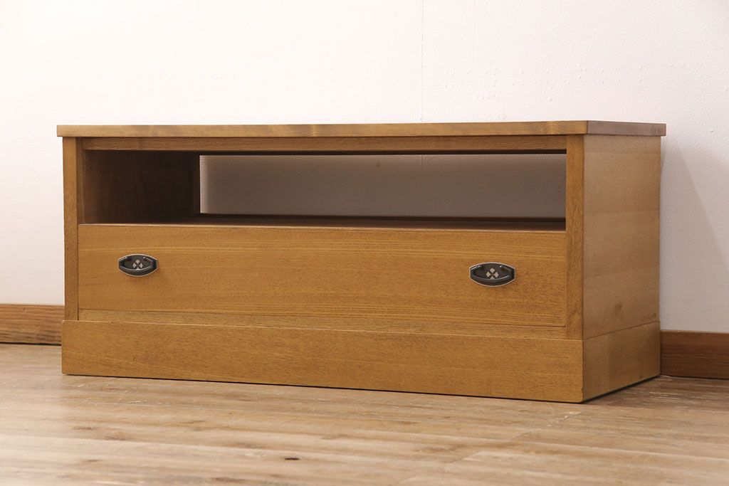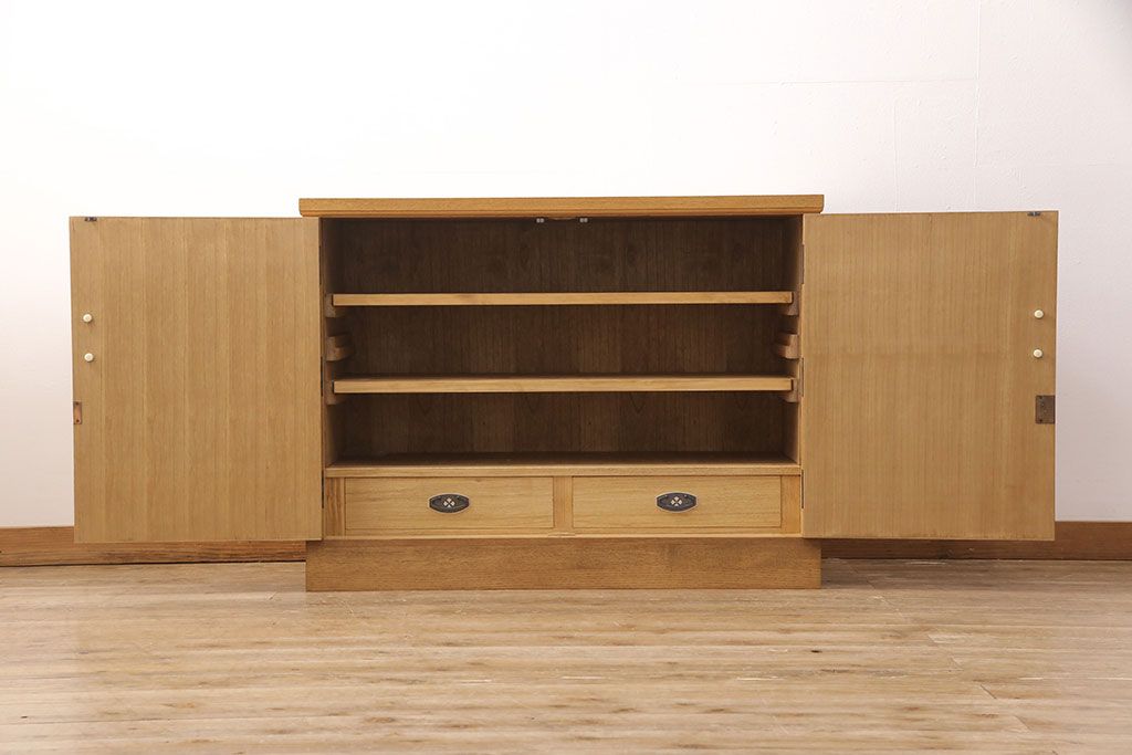 ラフジュ工房> お手持ちの家具・建具リメイク実績> 婚礼家具リメイク実績 > 和箪笥をキャビネットとテレビボードにリメイク!上段は高さを低くリサイズ。内部を取り外し、棚板を設置。台輪を取り付けてキャビネットに。下段の引き出しは、1段目の引き出しを撤去し、オープン仕様に。天板を取り付けてテレビボードに加工。