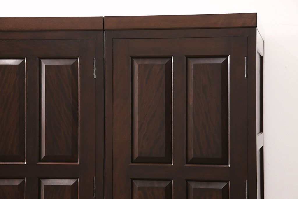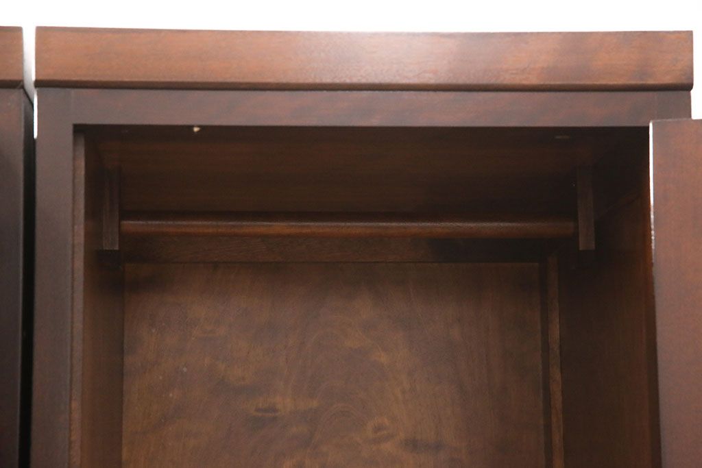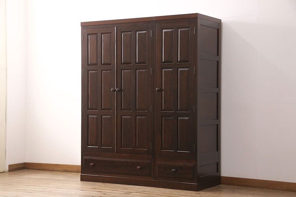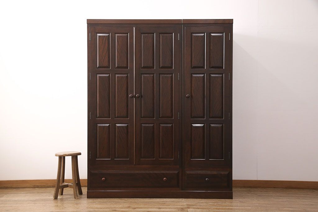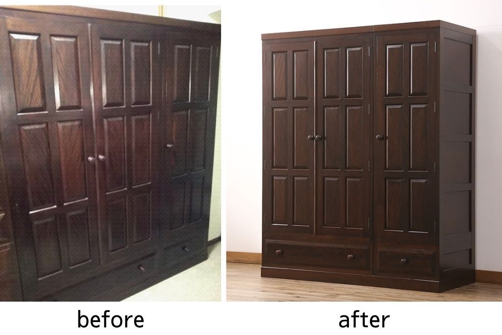 洋服箪笥を2つのワードローブにリメイク!2枚扉分と1枚扉分で分割し、側面を新たに制作。現状の色味に合わせて仕上げ。