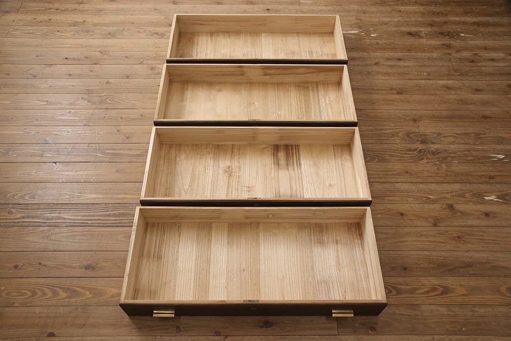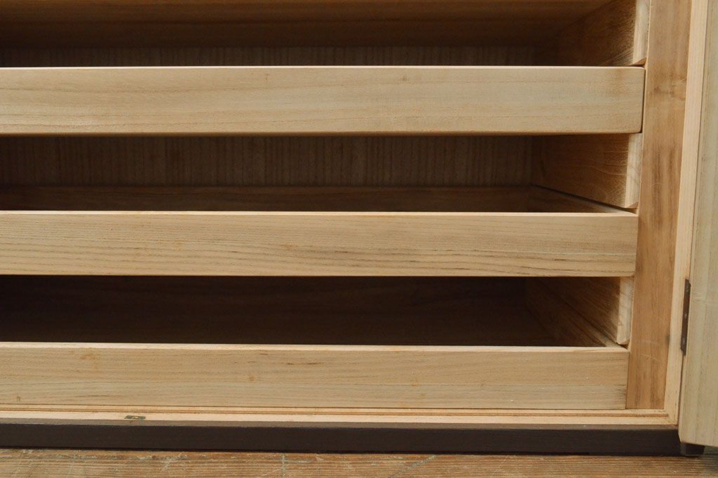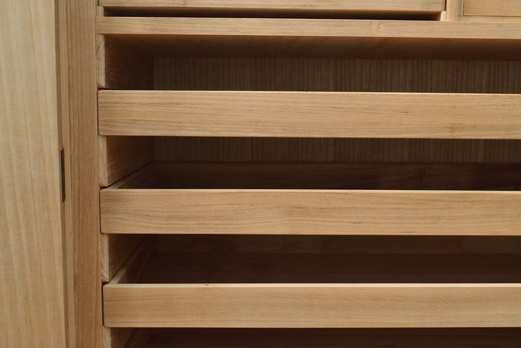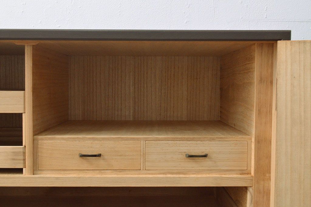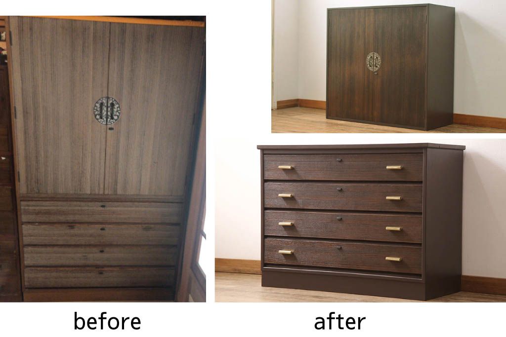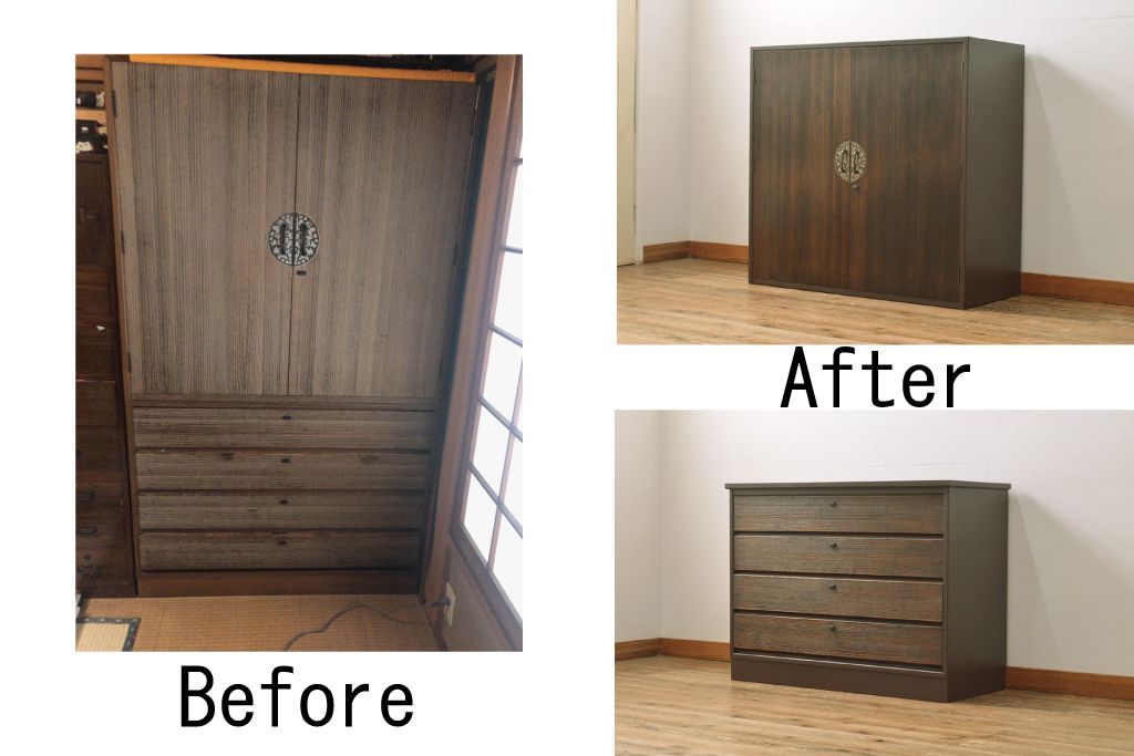 お客様持ち込みの桐箪笥を収納棚と箪笥ローボードにリメイク