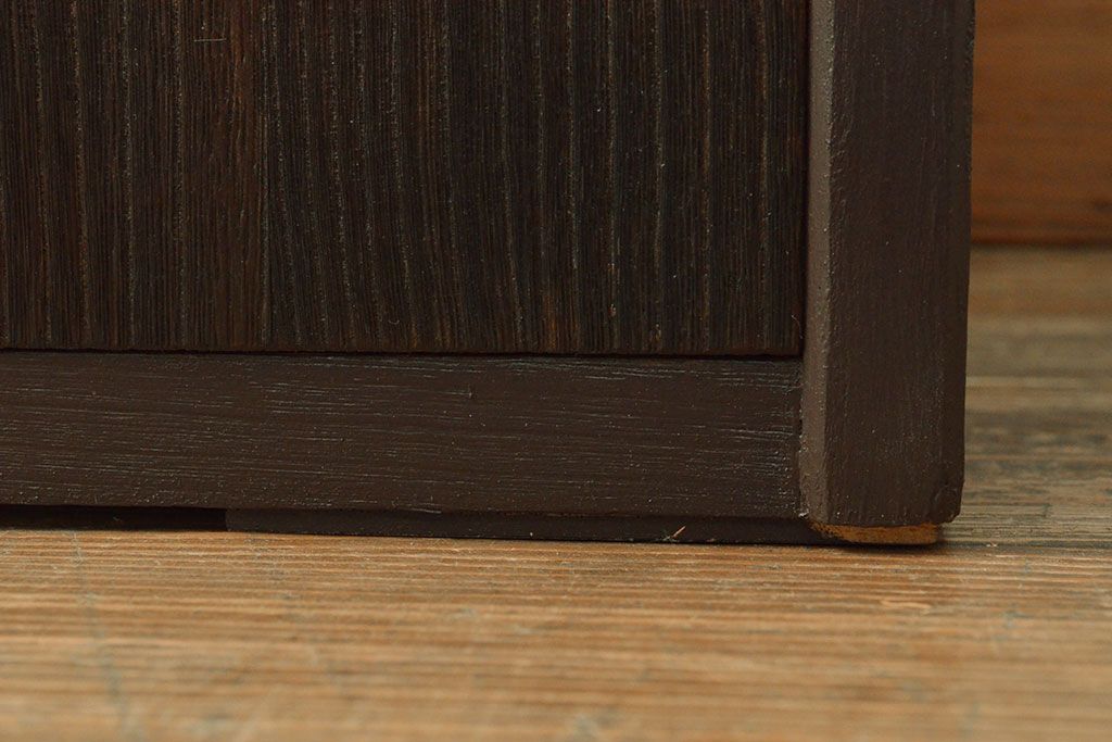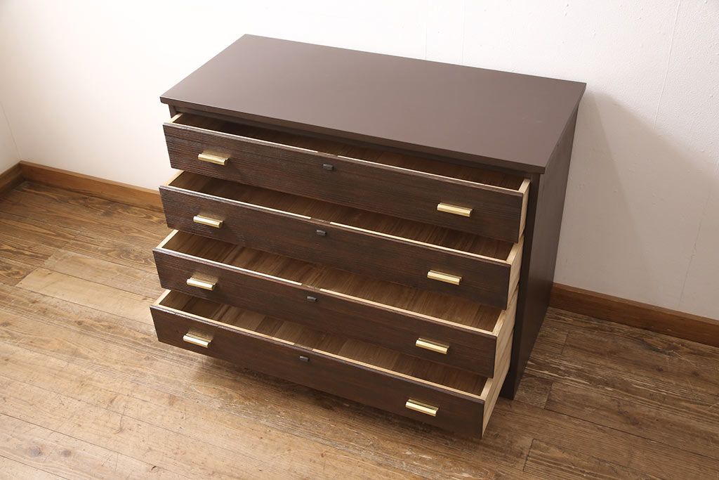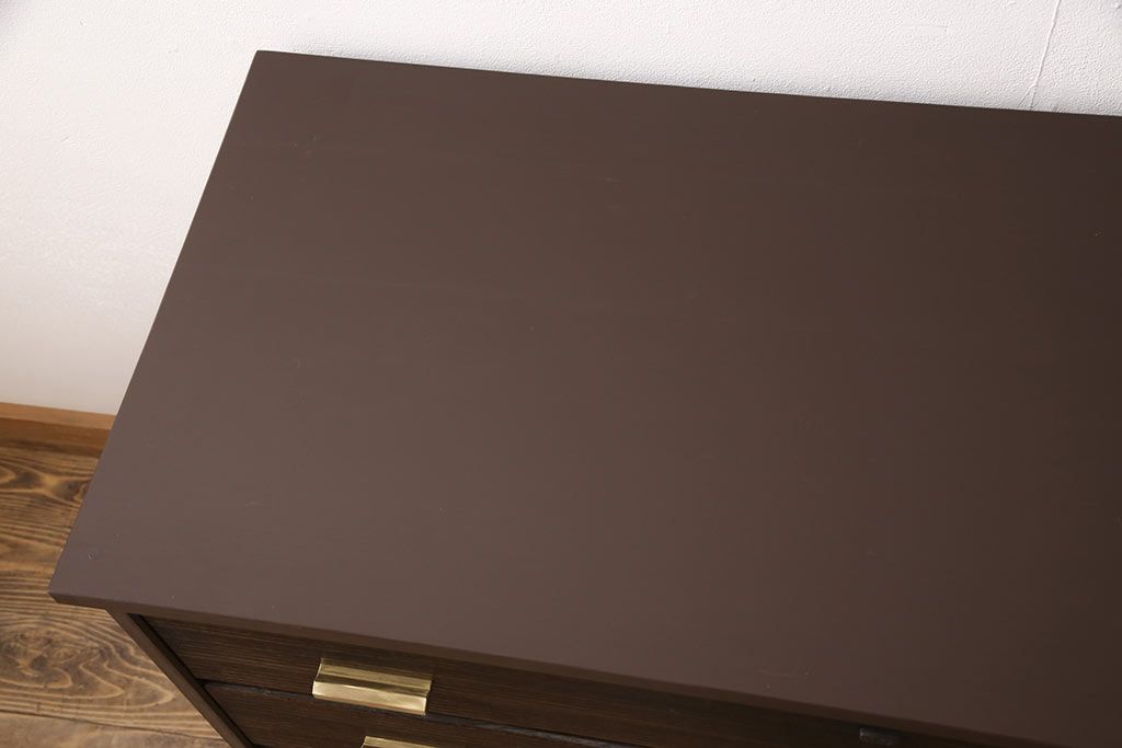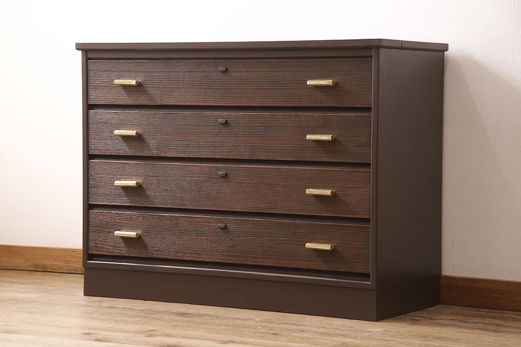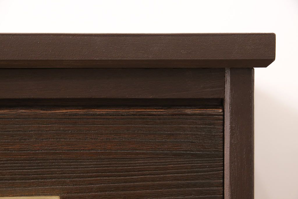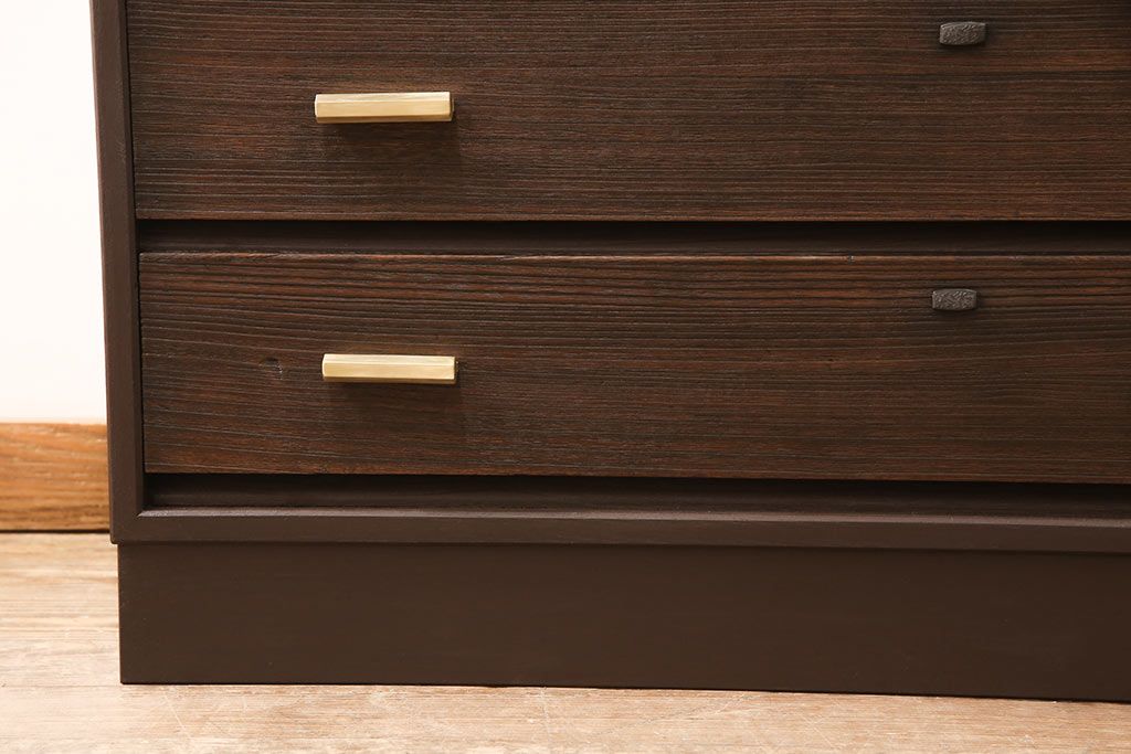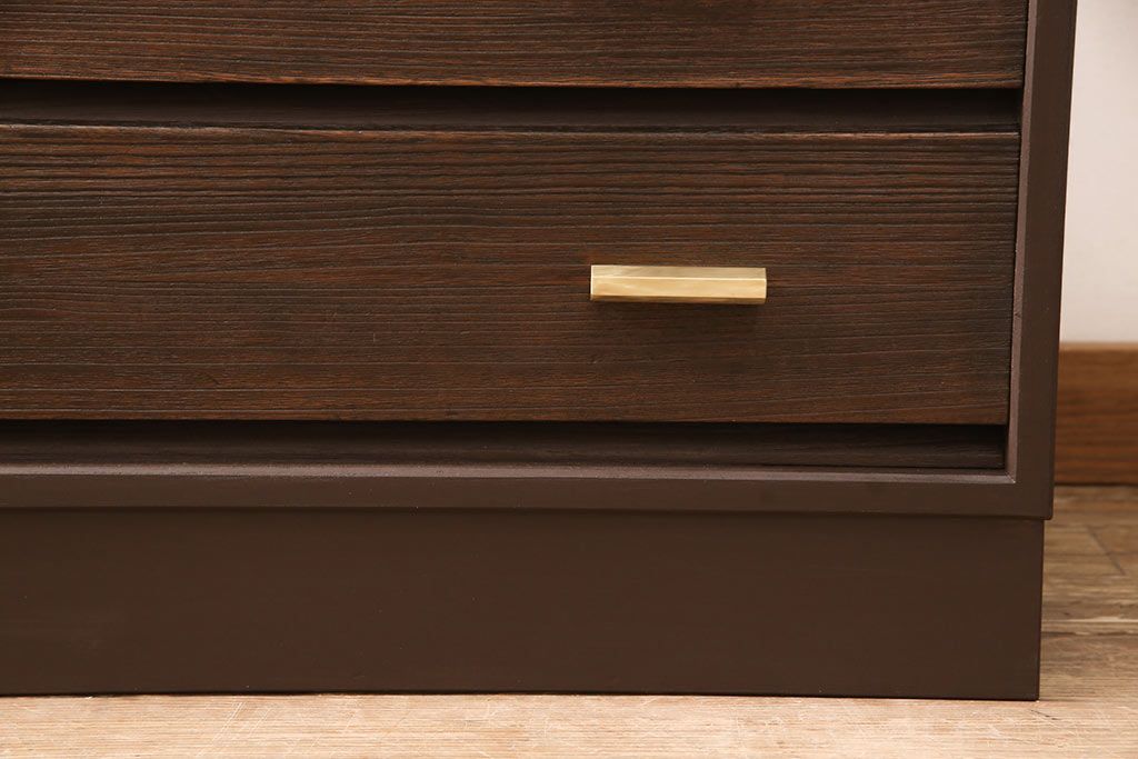 2段重ね桐箪笥を収納棚とローボードにリメイク!上段は形を変えずにリペア。下段はヒノキ材の天板と、引き出しに取っ手を取り付けてローボードに。いずれも前板をチェスナット系、それ以外を茶系でペイント仕上げ。