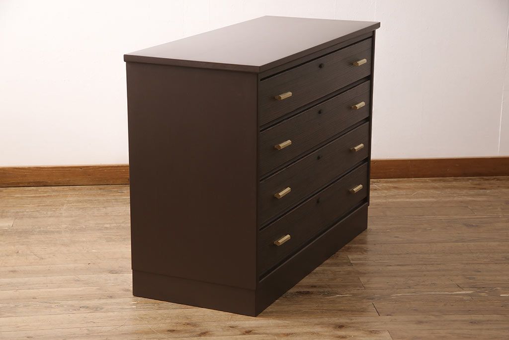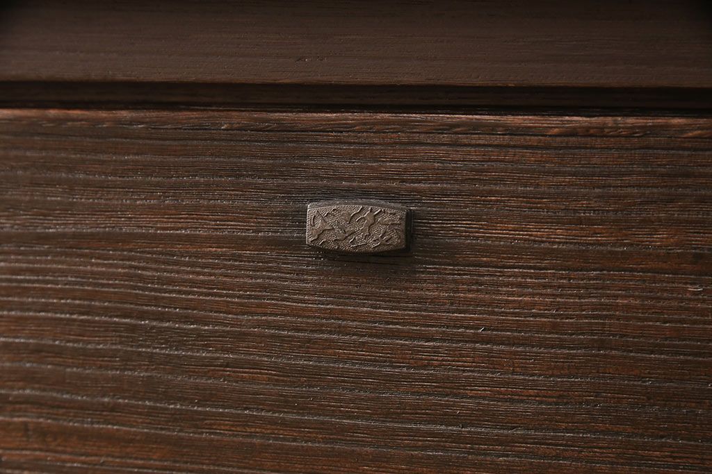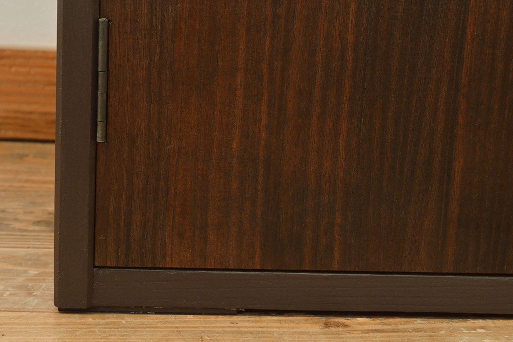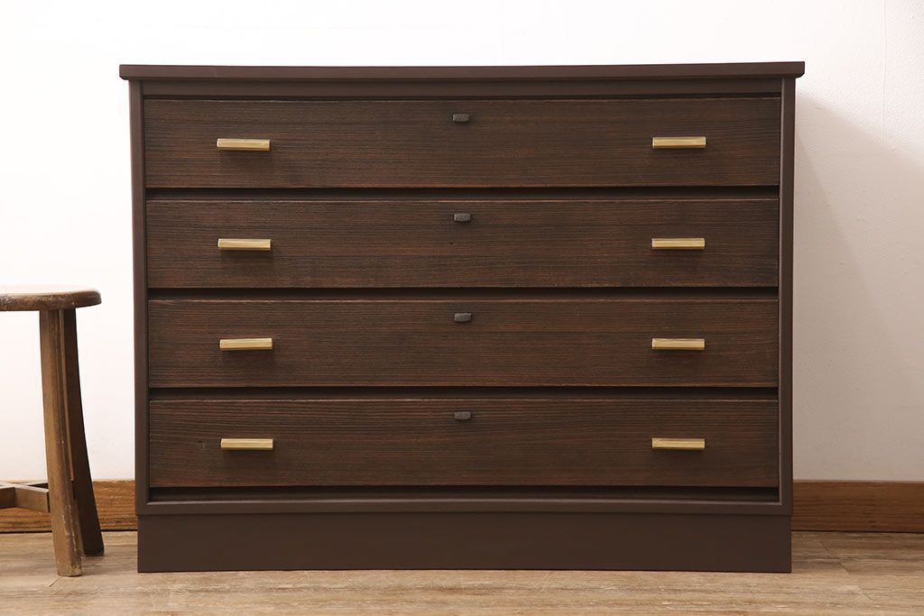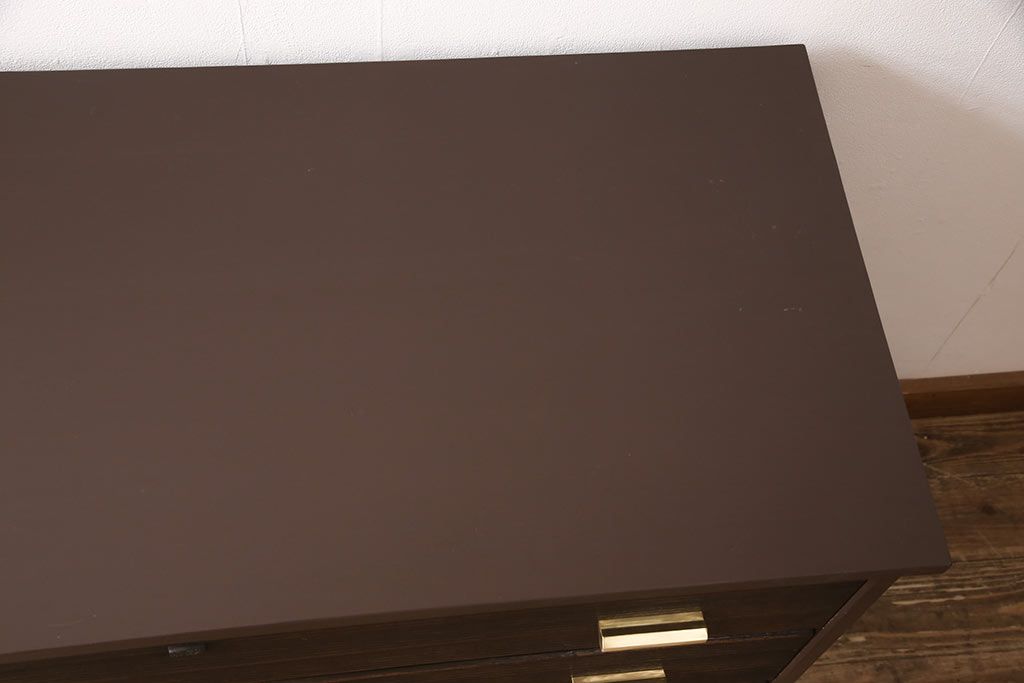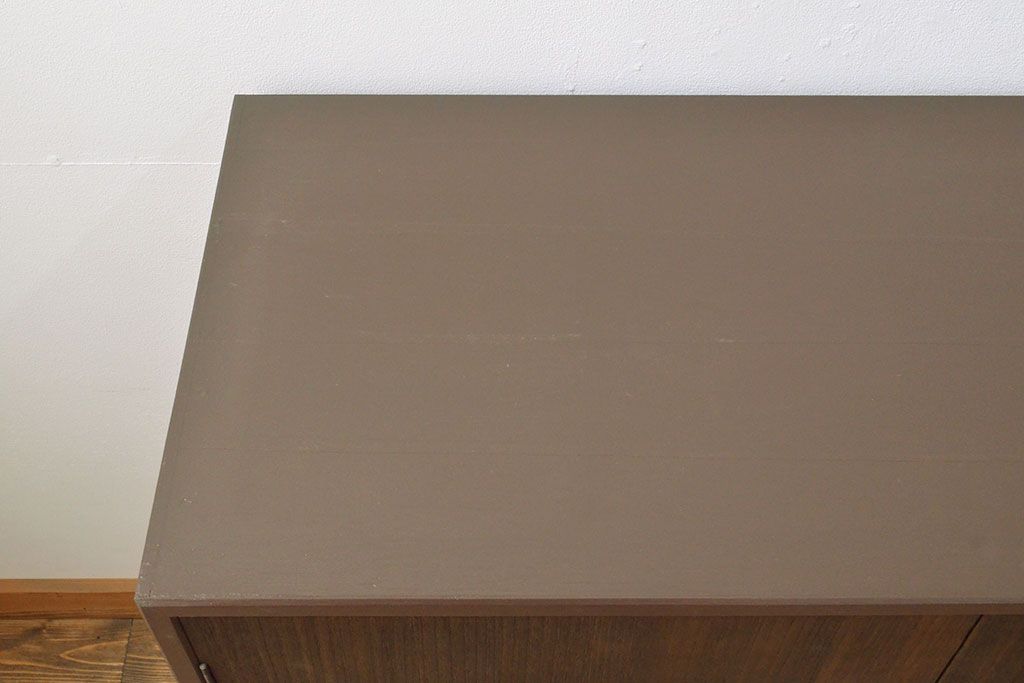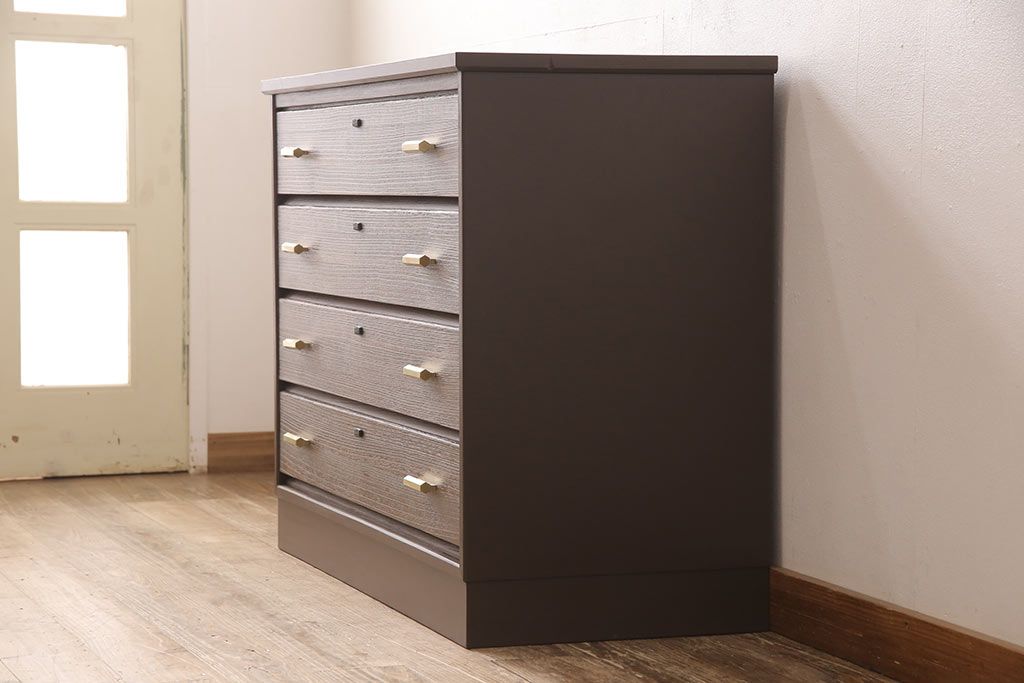 2段重ね桐箪笥を収納棚とローボードにリメイク!上段は形を変えずにリペア。下段はヒノキ材の天板と、引き出しに取っ手を取り付けてローボードに。いずれも前板をチェスナット系、それ以外を茶系でペイント仕上げ。