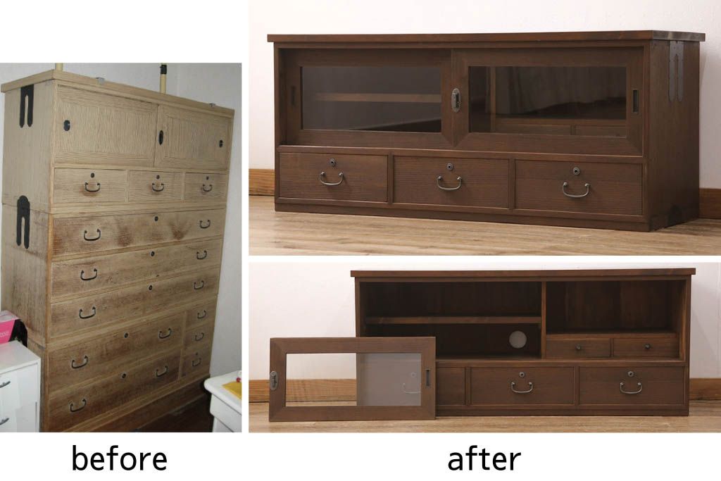 お客様持ち込みの桐箪笥をローボードにリメイク
