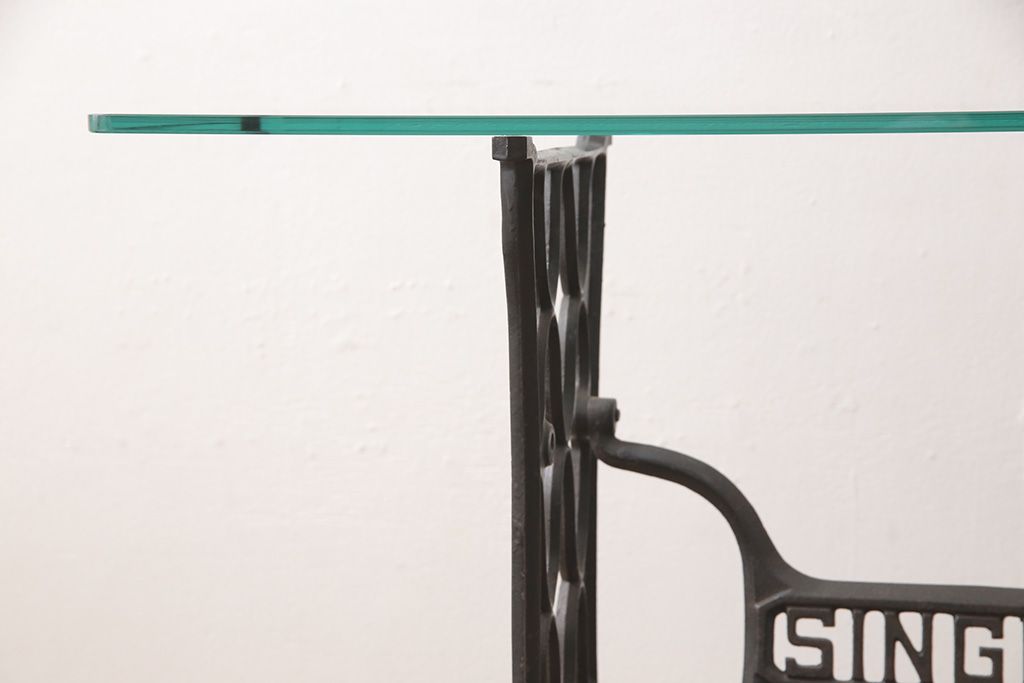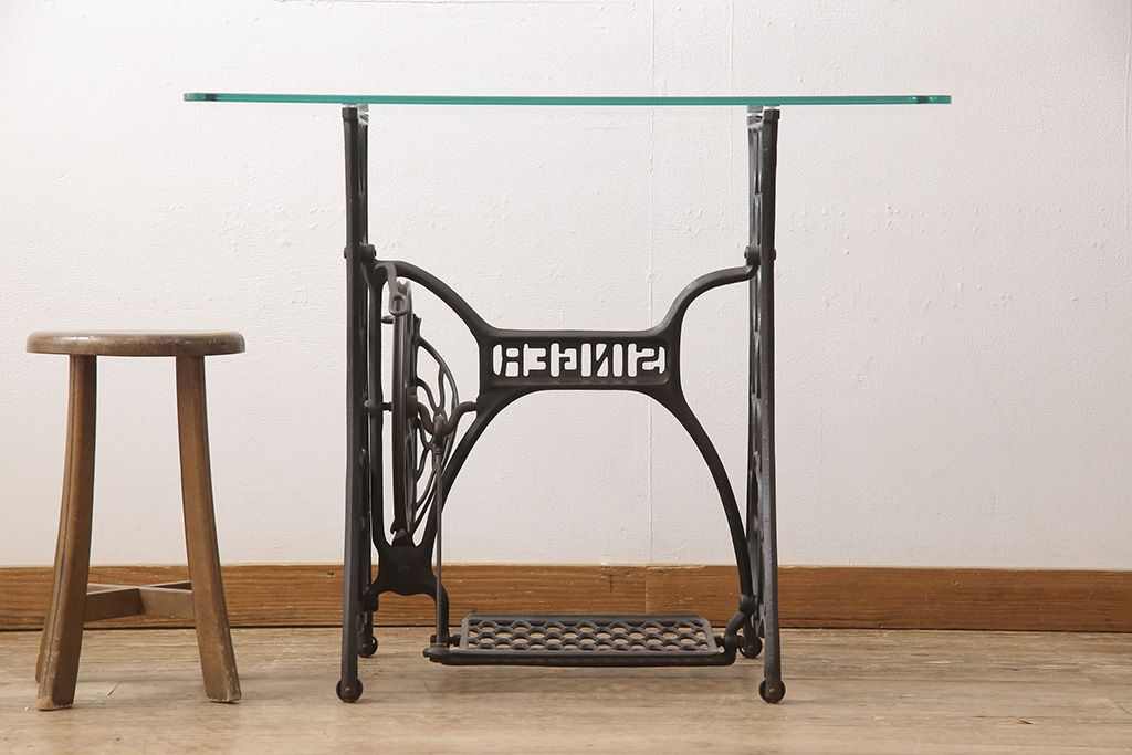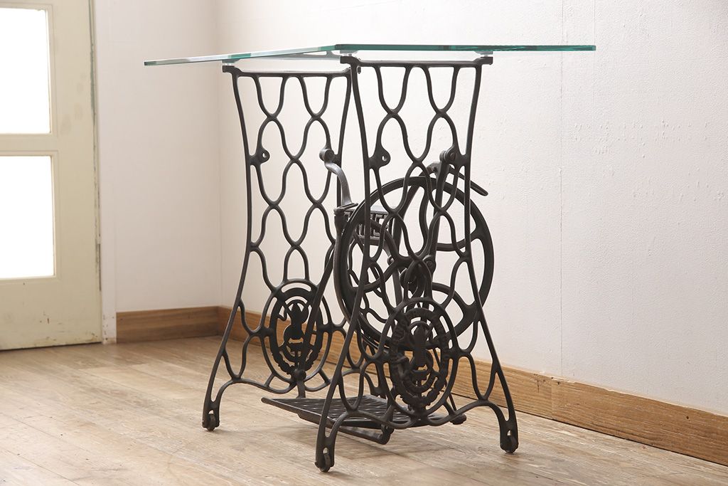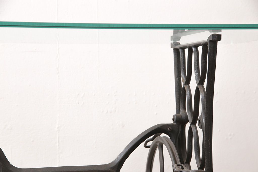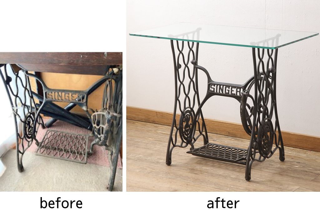 ミシン台をテーブルにリメイク!ミシン部分を取り外し、強化ガラスの天板を取り付け。