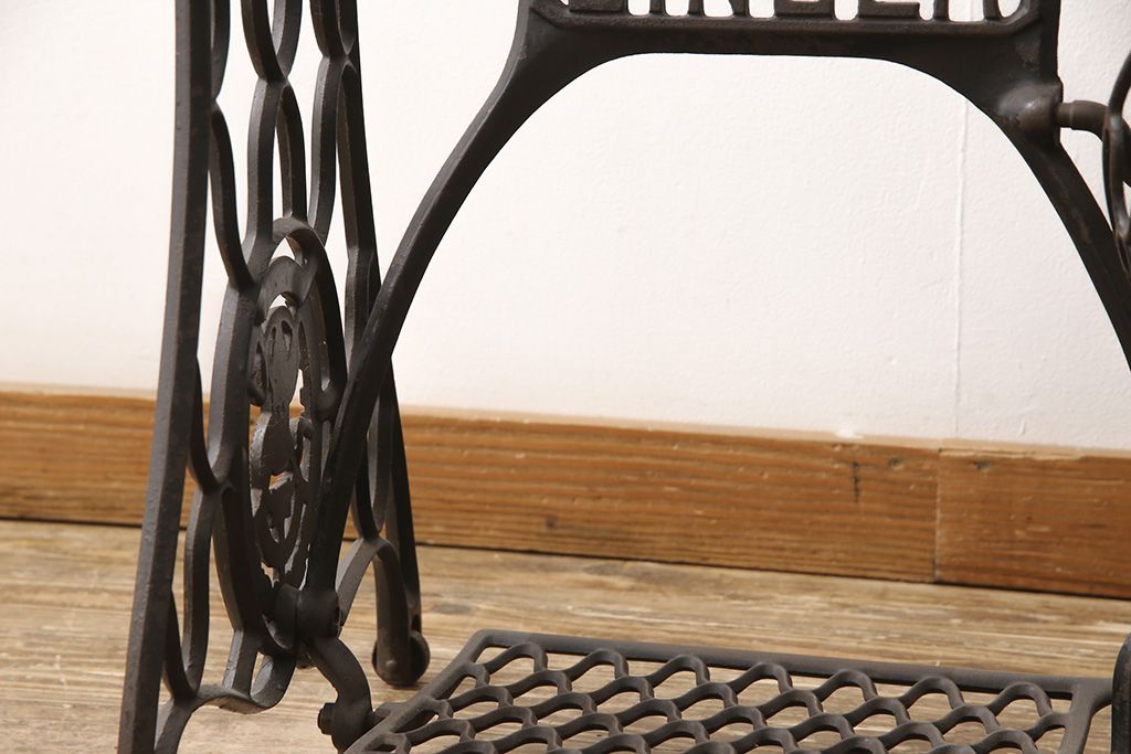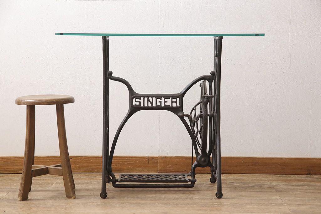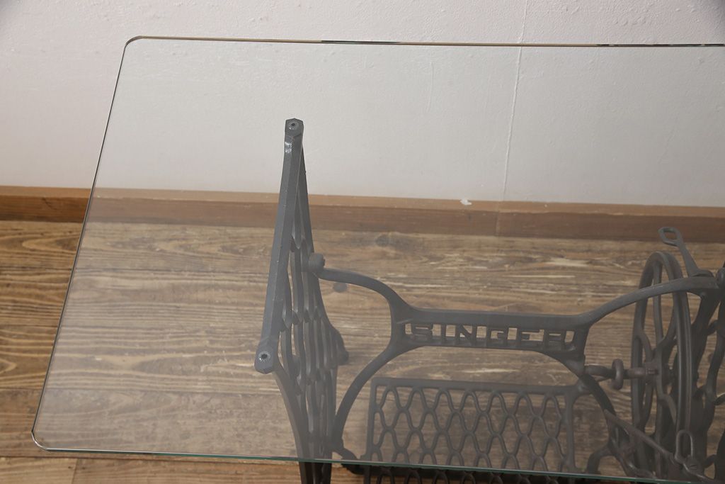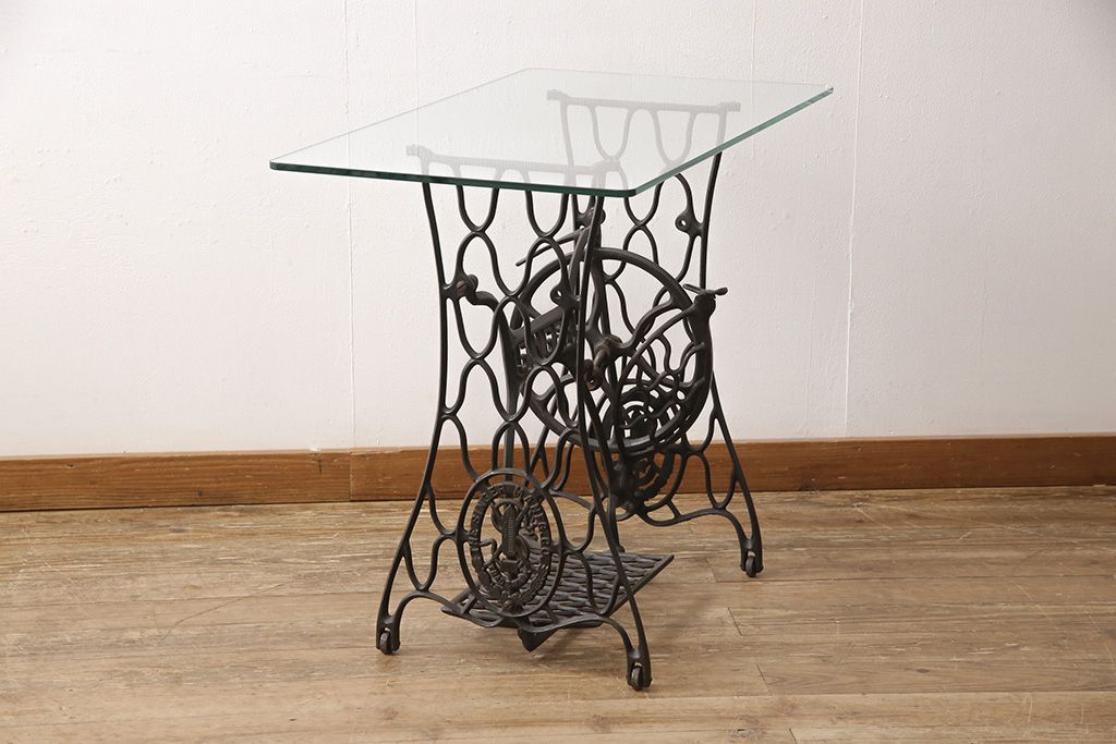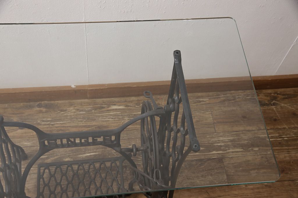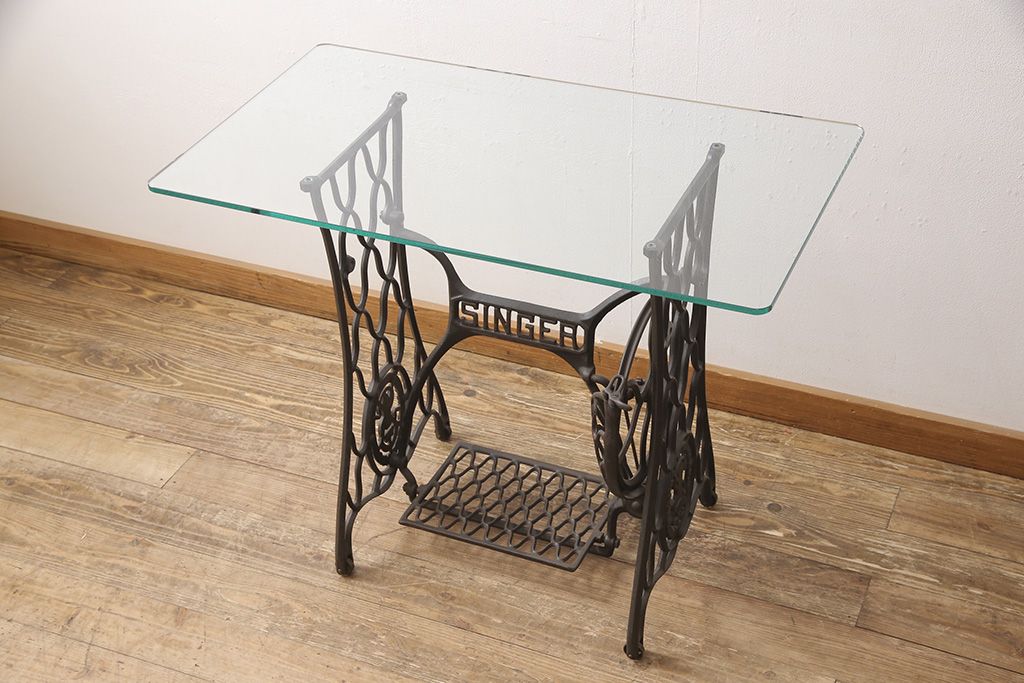 ミシン台をテーブルにリメイク!ミシン部分を取り外し、強化ガラスの天板を取り付け。