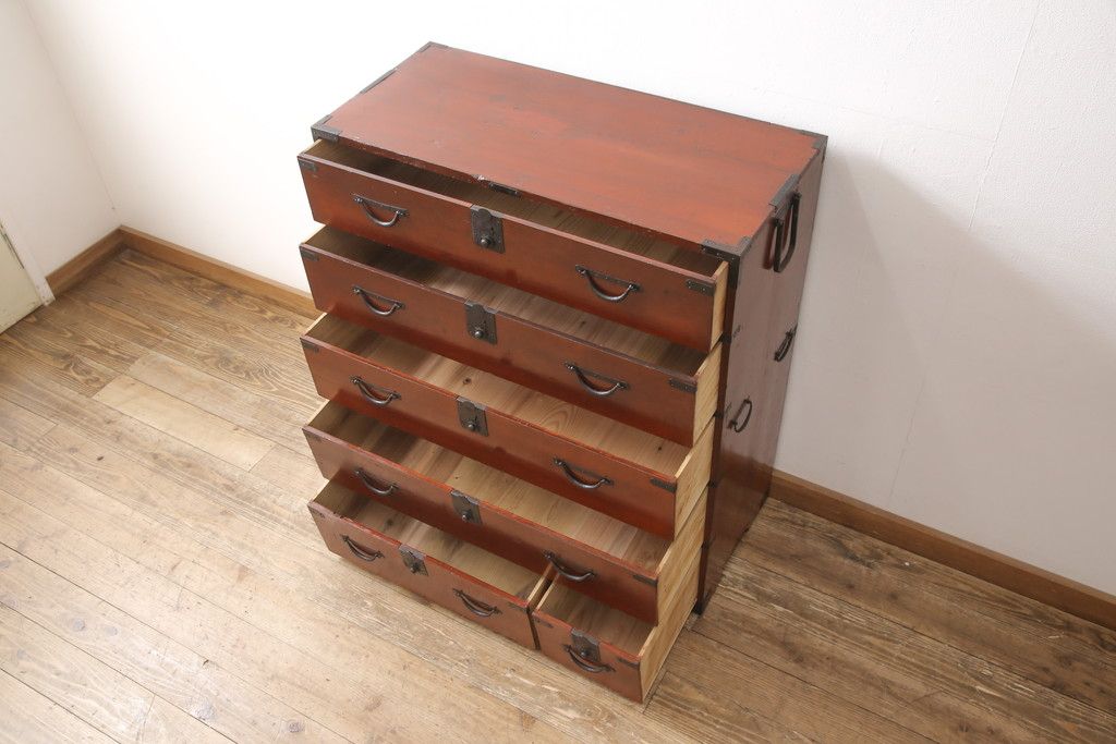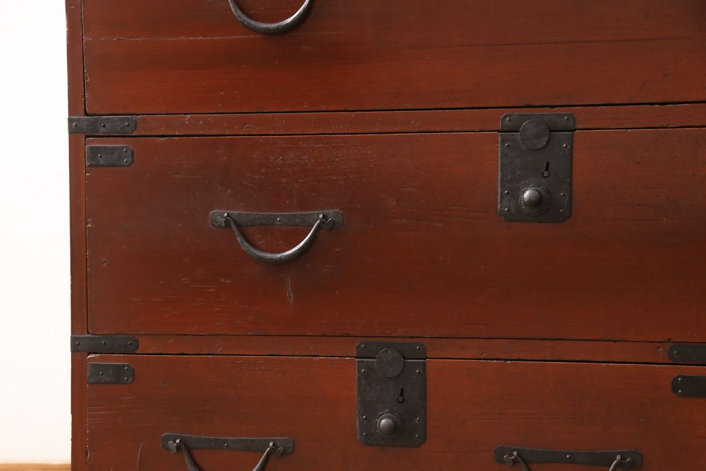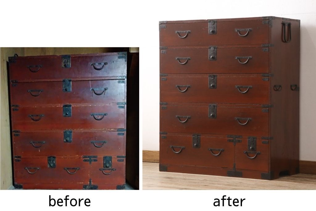 箪笥を綺麗に再生!高品質リペアを施し、虫食い跡、傷みを新材とパテ埋めで補修。元の雰囲気を損なわないように仕上げ。