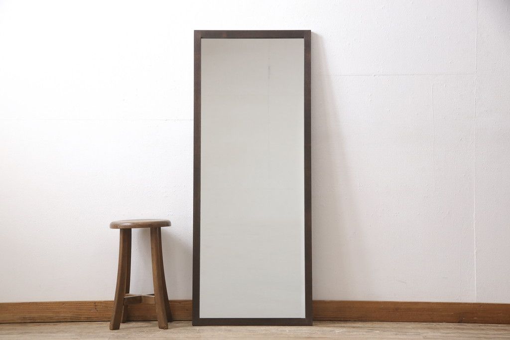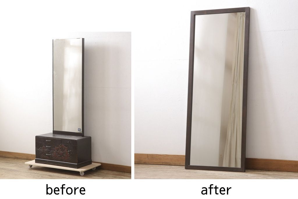 鏡台をウォールミラーにリメイク!鏡部分を取り外し、裏面・四方に板を貼り、木枠を取り付け。チェス系に着色仕上げ。
