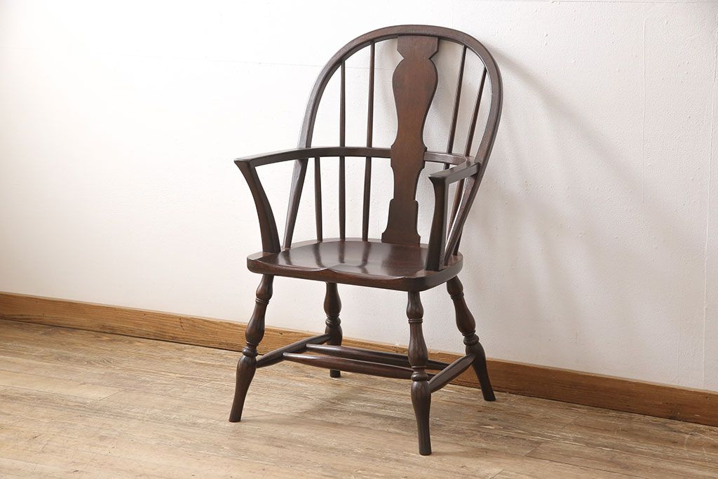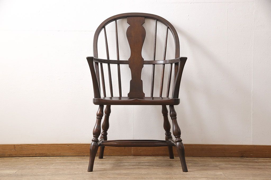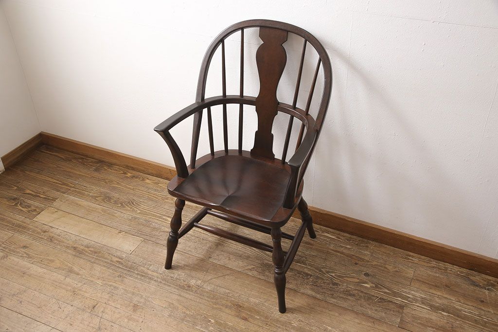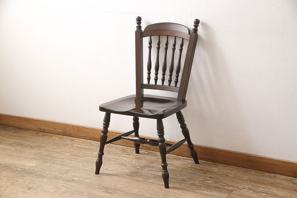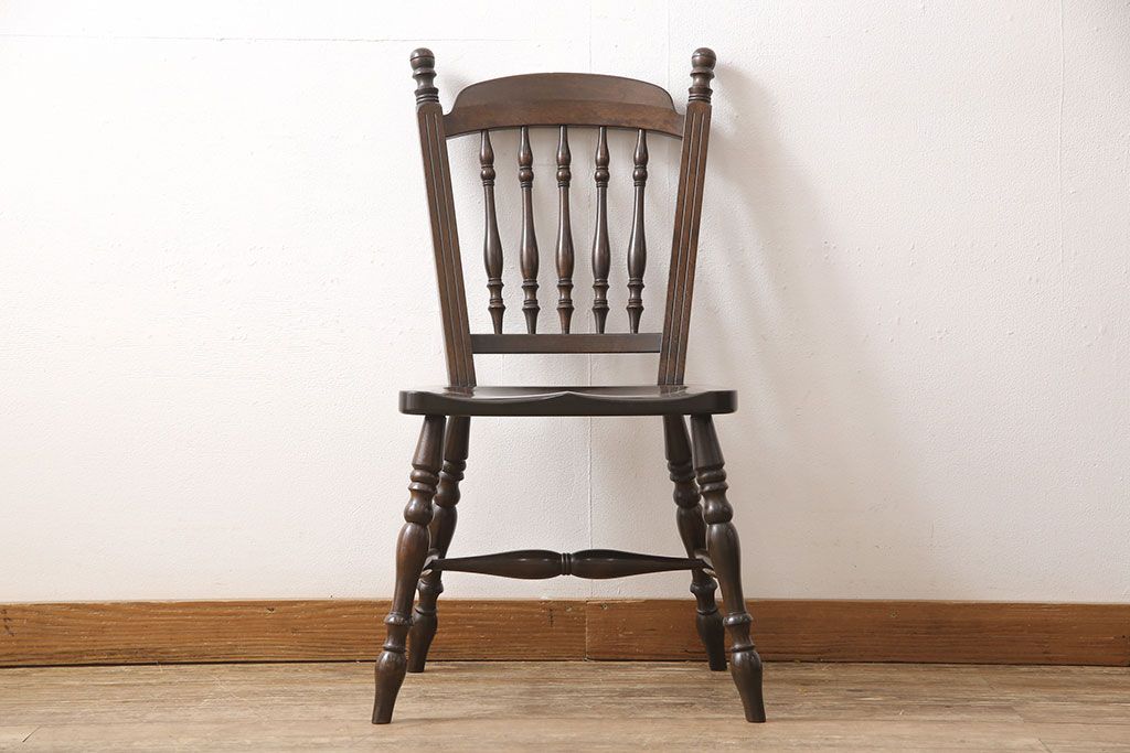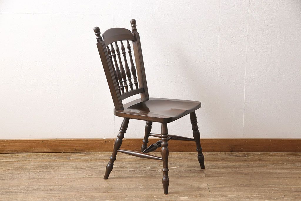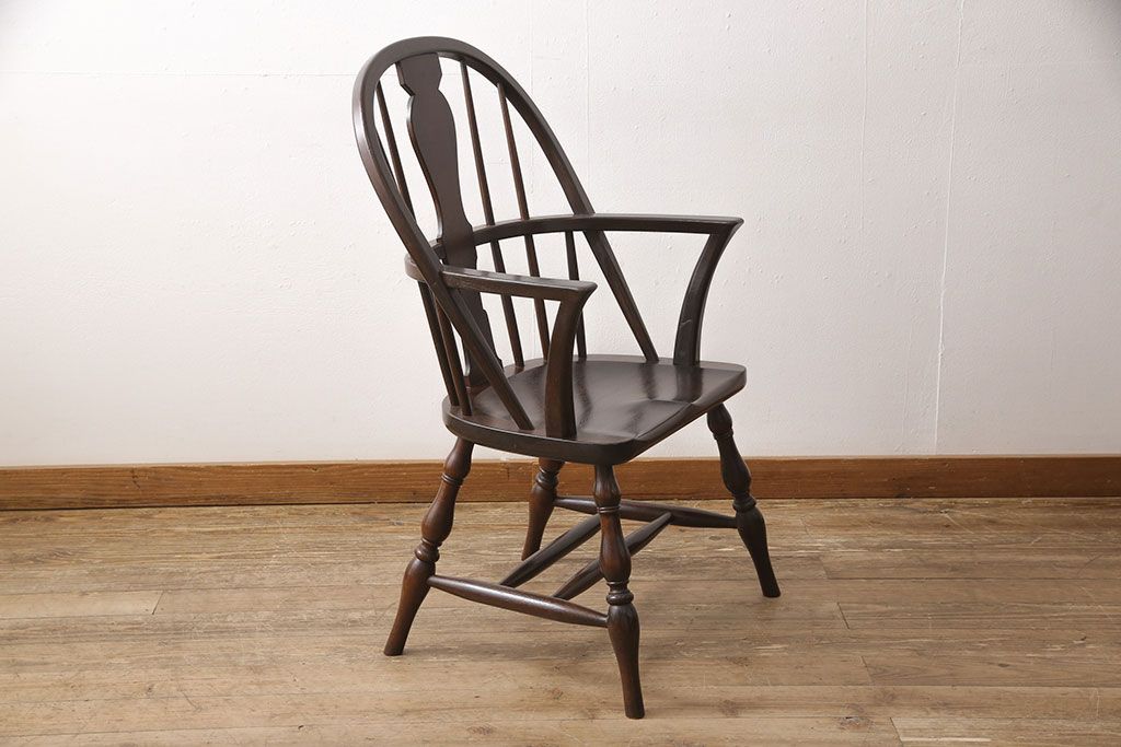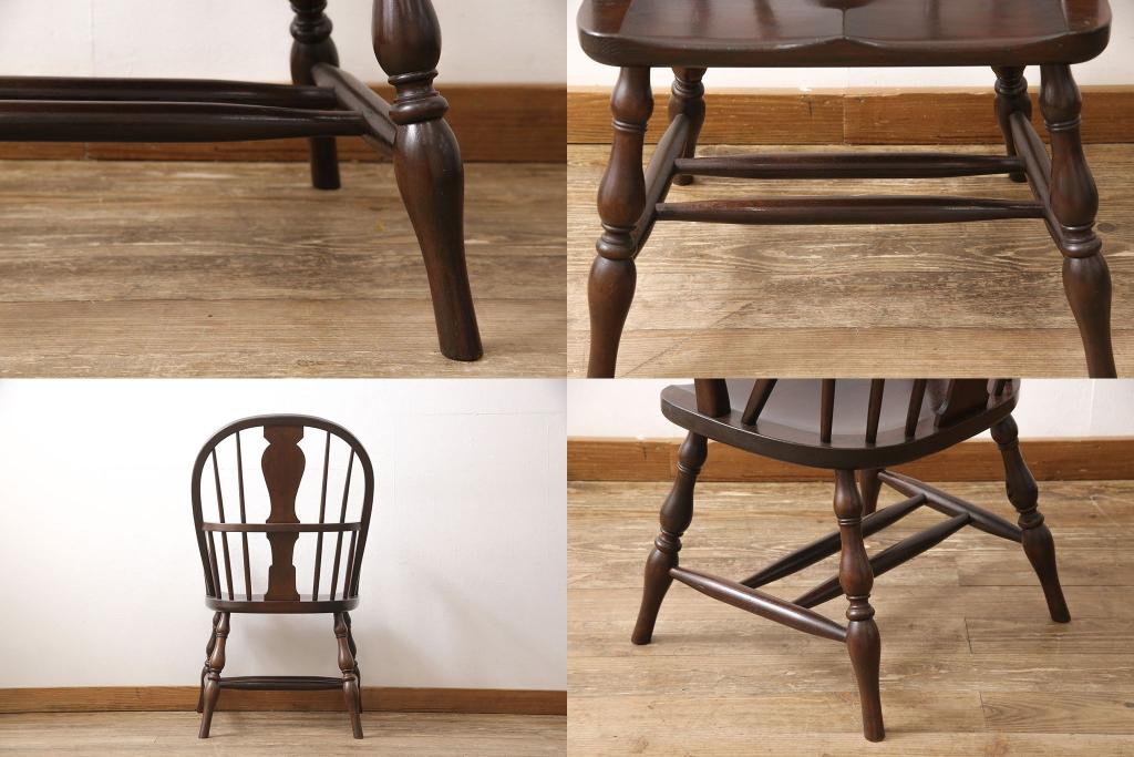 松本民芸家具のアームチェア4脚、スピンドルチェア1脚を綺麗に再生!高品質リペアを施し、スピンドルチェアのみペイントを剥離。キズが馴染むよう、必要に応じて着色・ワックス仕上げに。