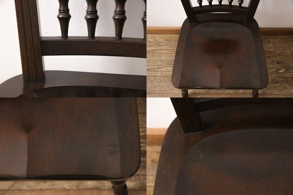 お手持ちの家具・建具リメイク実績 > 松本民芸家具のアームチェア4脚、スピンドルチェア1脚を綺麗に再生!高品質リペアを施し、スピンドルチェアのみペイントを剥離。キズが馴染むよう、必要に応じて着色・ワックス仕上げに。