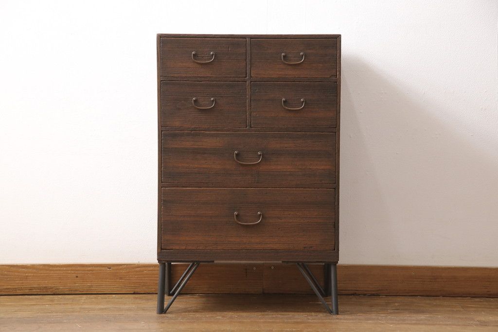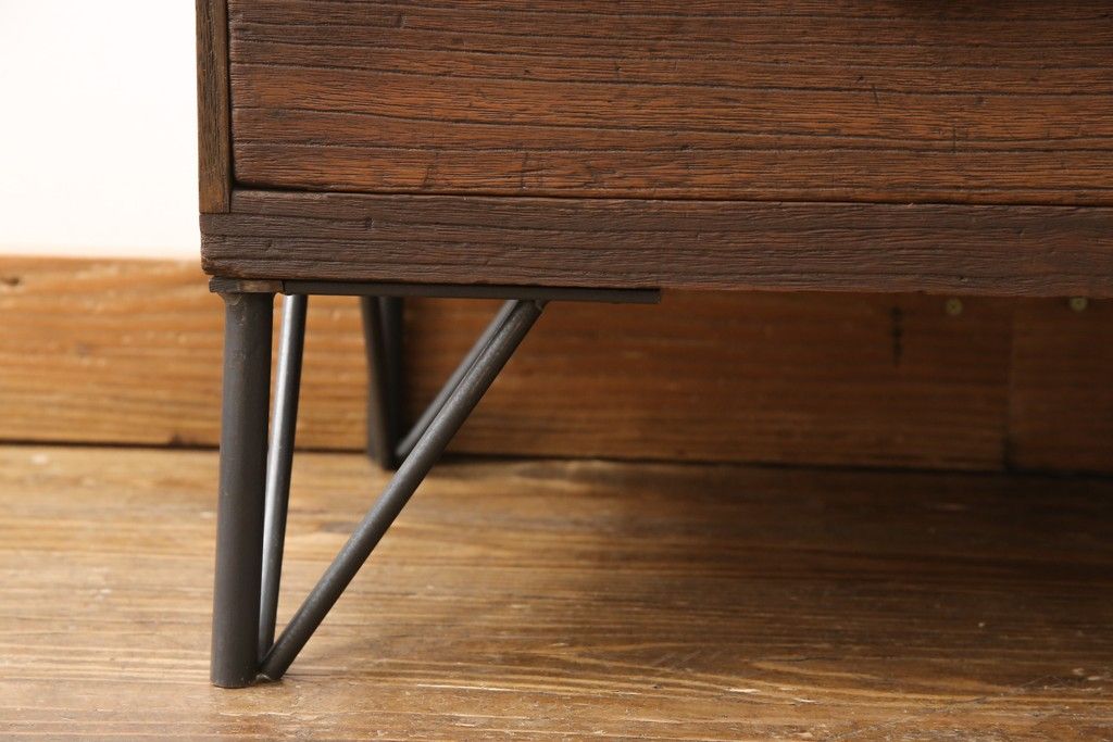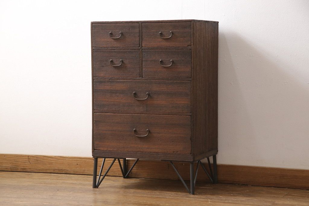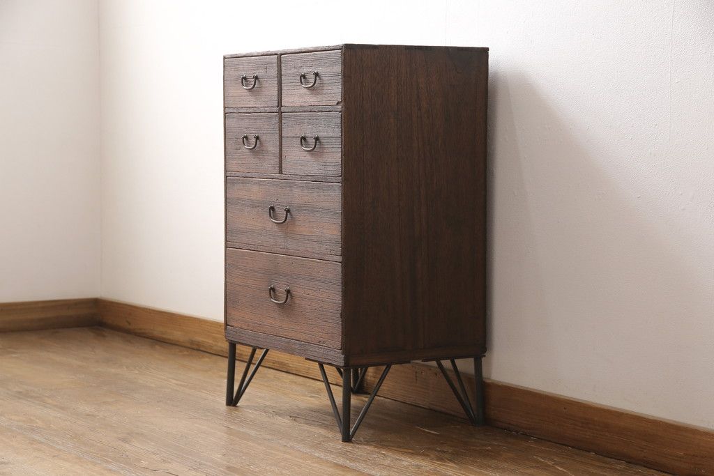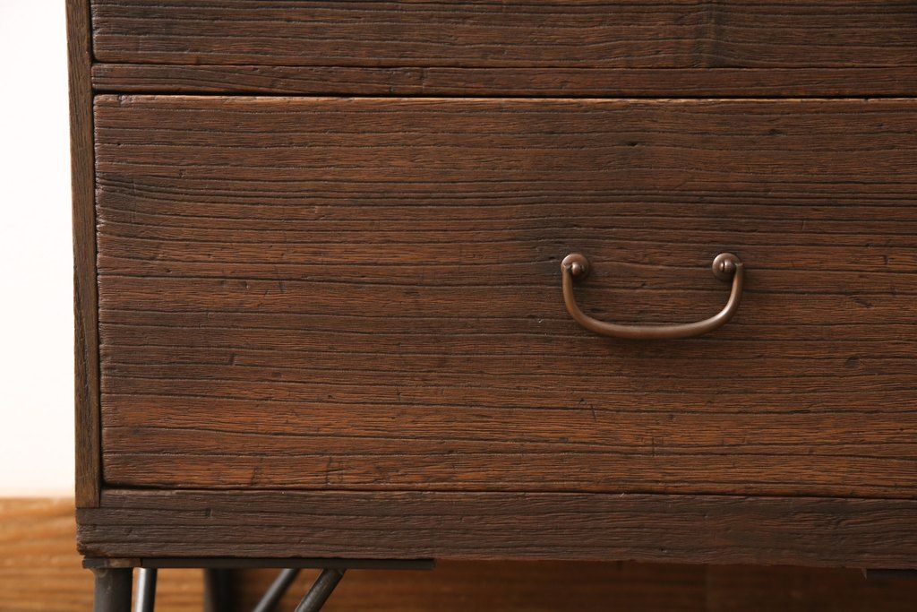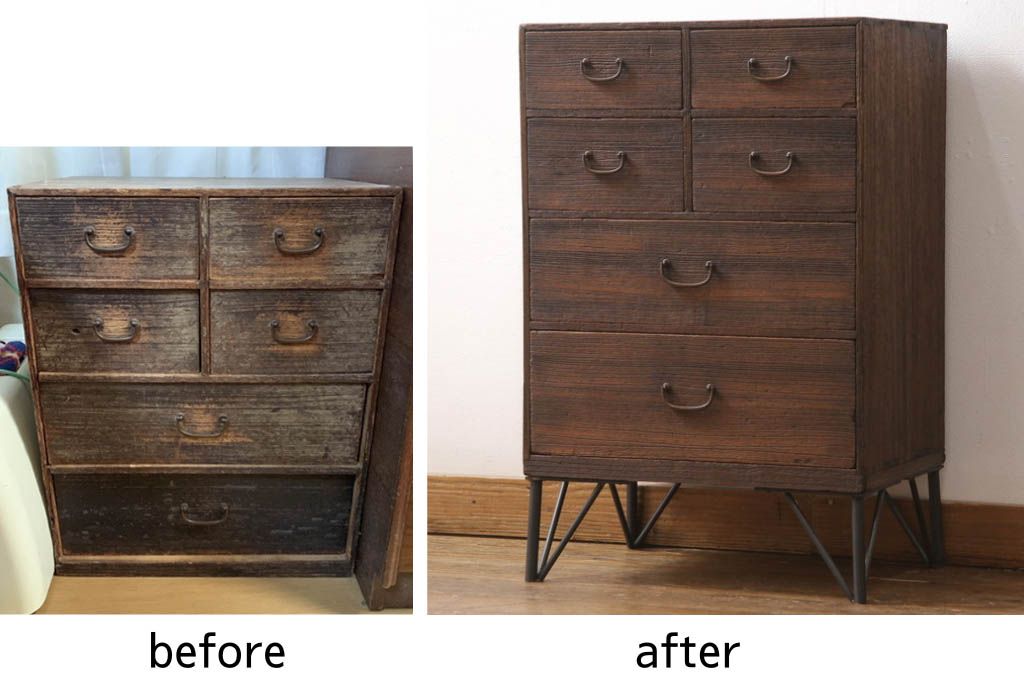 桐箪笥をチェストにリメイク!鉄脚を取り付け、現在の色味を基準とした濃茶で着色仕上げ。