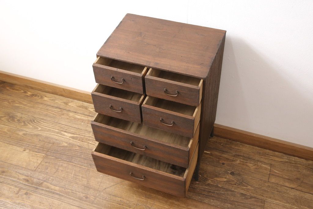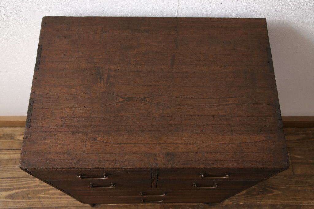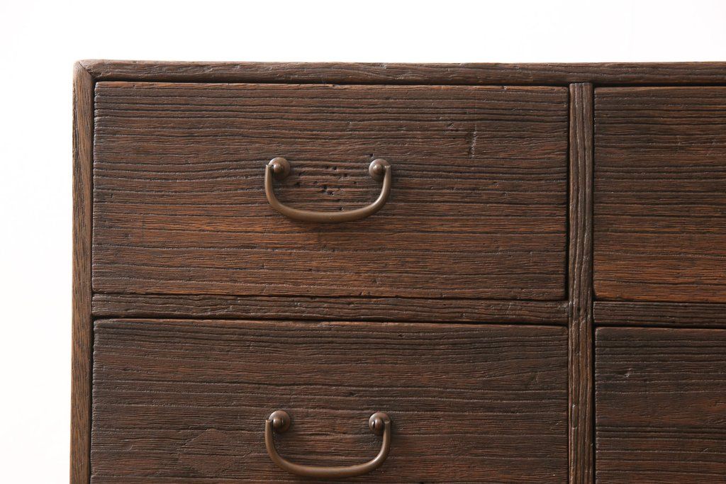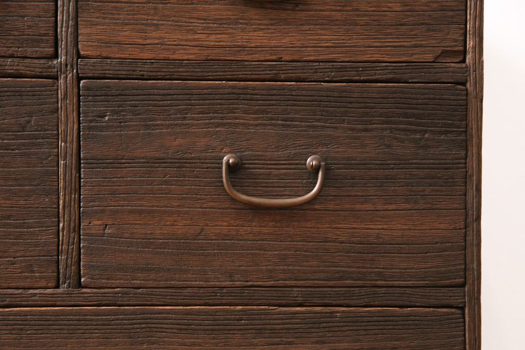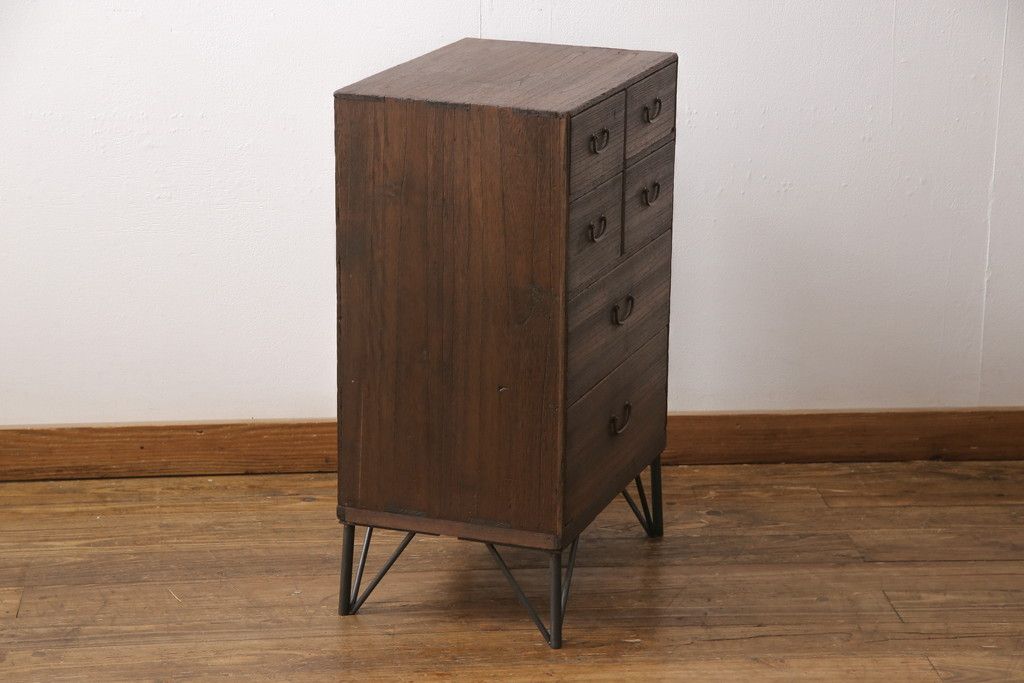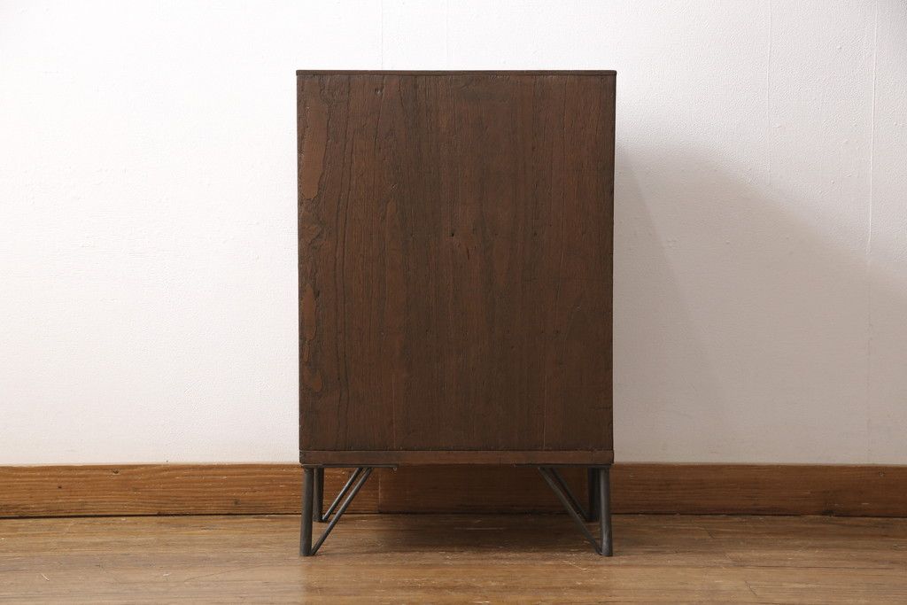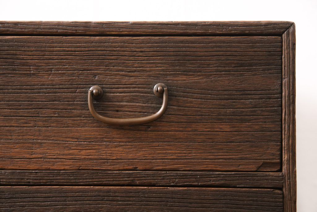 桐箪笥をチェストにリメイク!鉄脚を取り付け、現在の色味を基準とした濃茶で着色仕上げ。