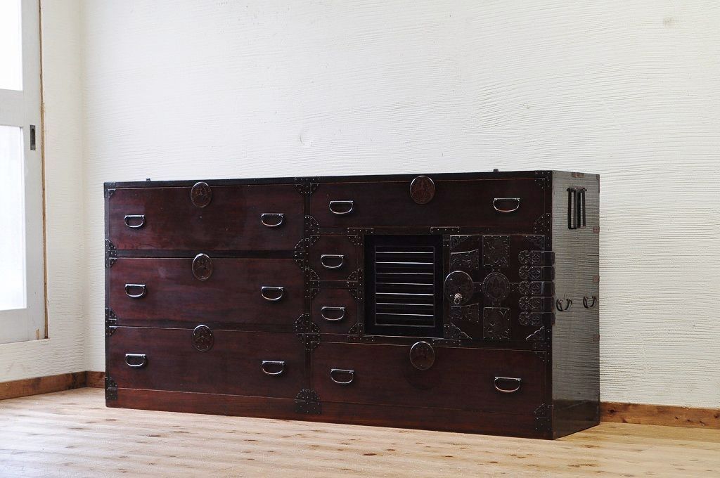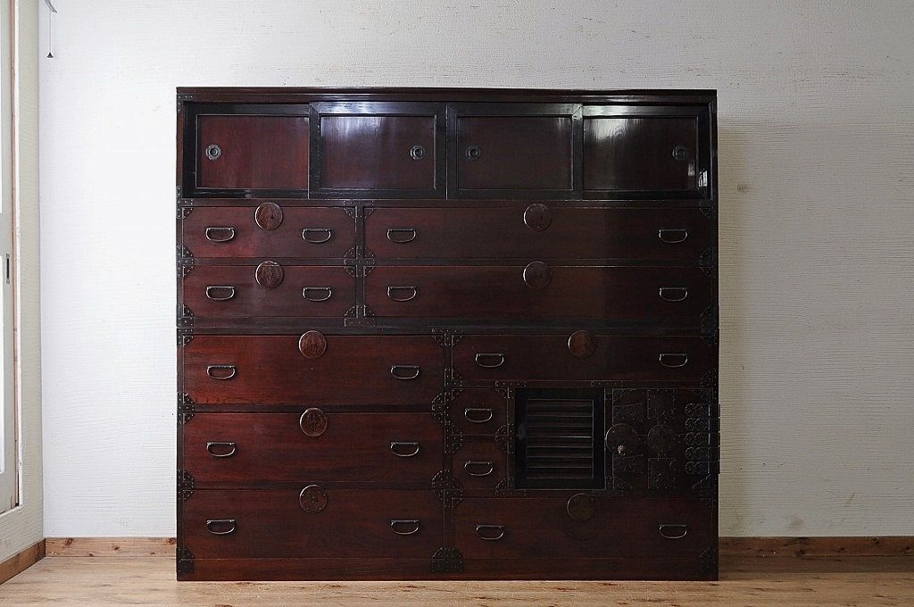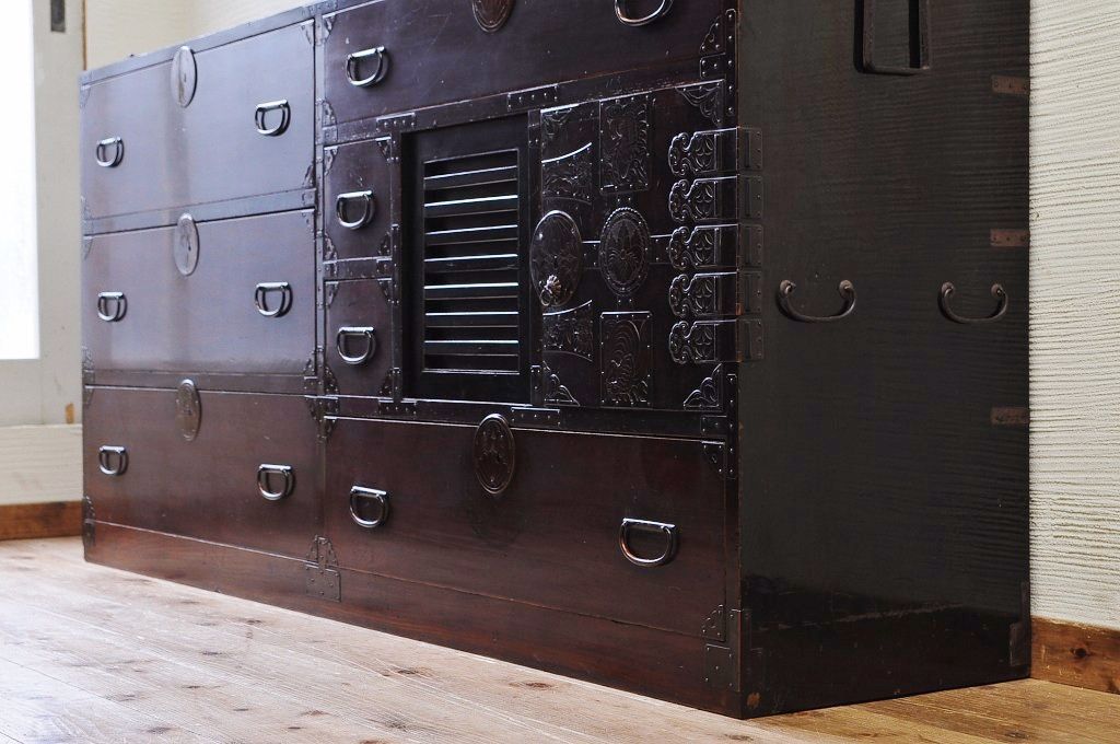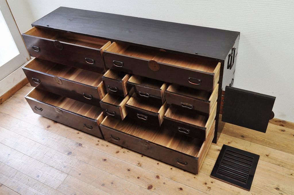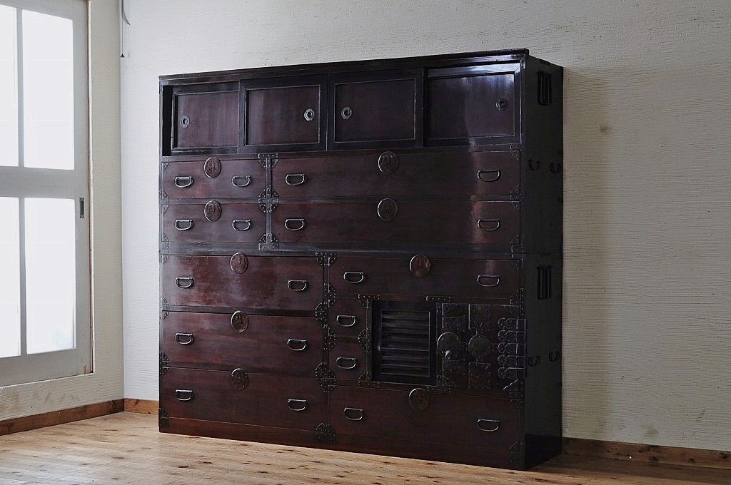 アンティーク家具 明治〜大正 迫力の一間大川箪笥(下段)