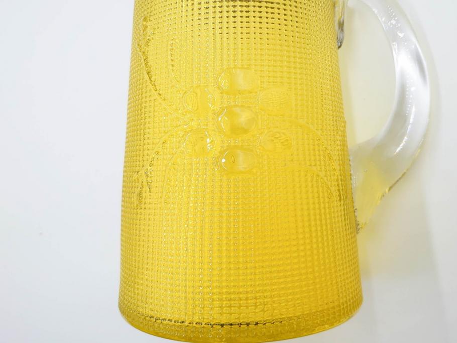 ラフジュ工房> 洋食器・キッチン用品> グラス > 大正〜昭和初期 花文 黄色 ガラス 鮮やかな色合いが食卓に明るさと個性を添える水差し&コップ2客セット(硝子、ジャグ、蓋付き、魚子、ピッチャー、グラス、和ガラス)(R-083565)