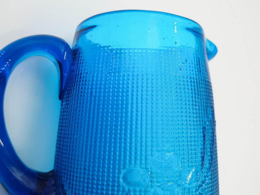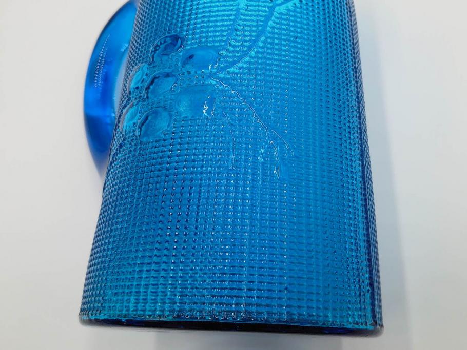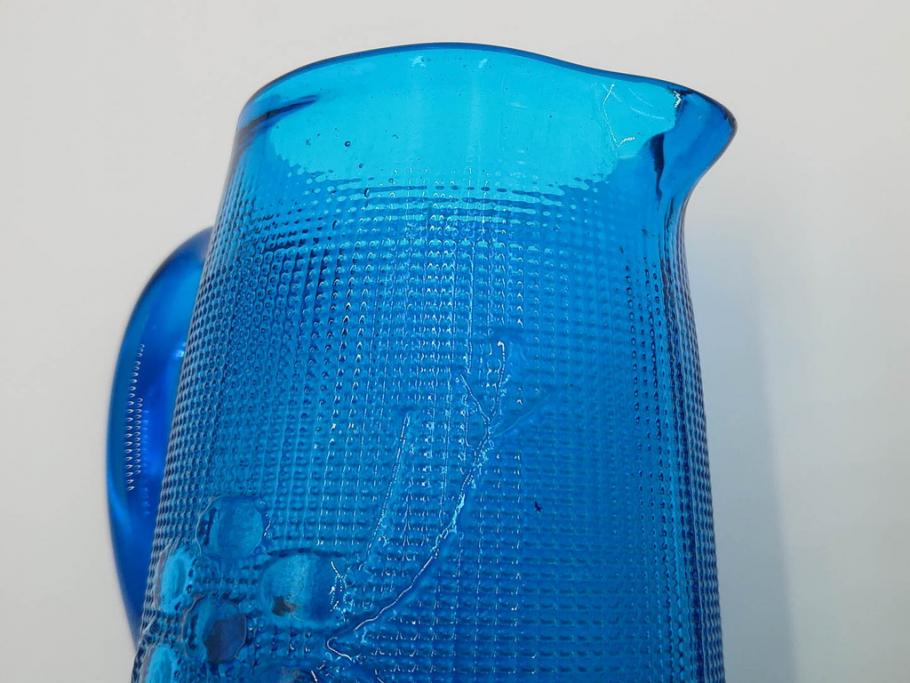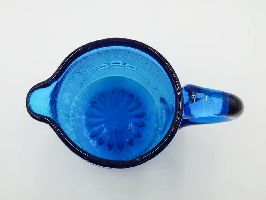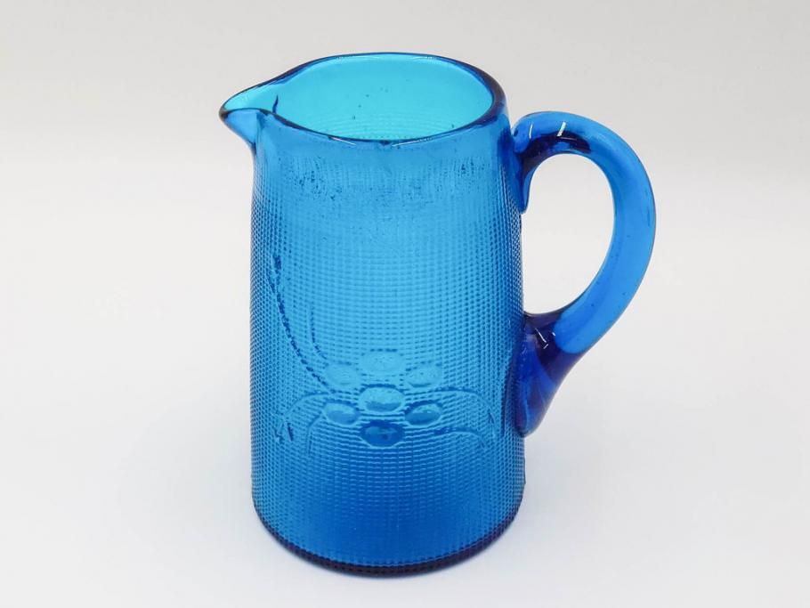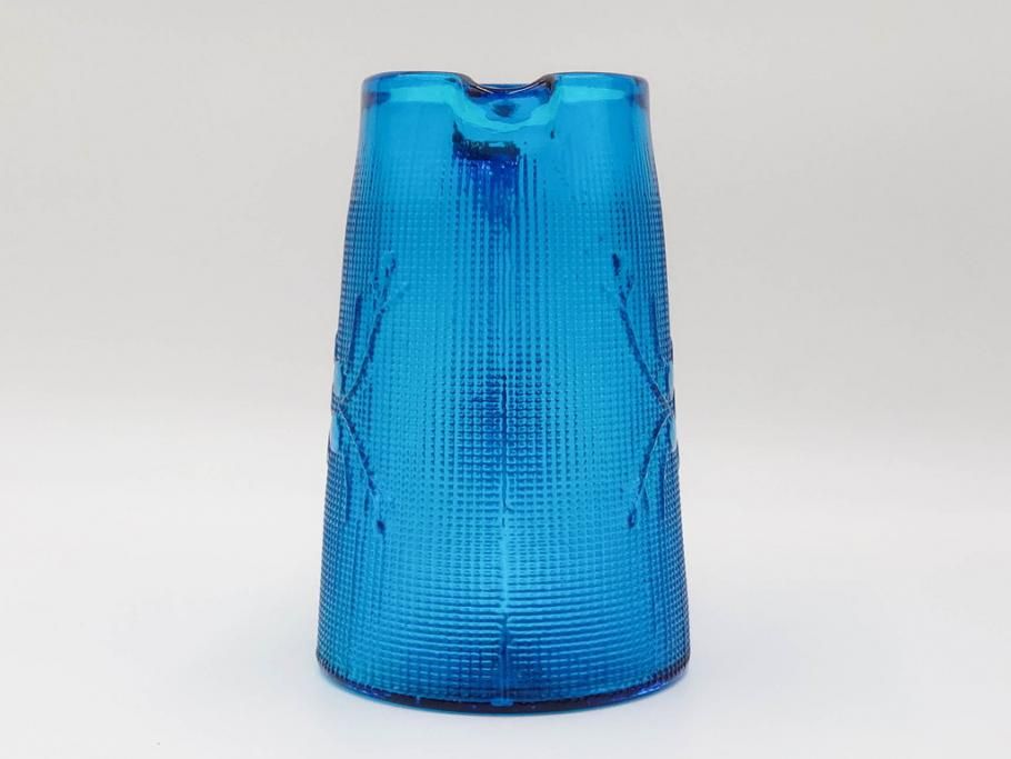 ラフジュ工房> 骨董・美術品> 骨董-ガラス食器 > 大正〜昭和初期 花文 青色 ガラス 鮮明な色彩がインテリアとしても存在感を放つ水差し(硝子、ジャグ、魚子、ピッチャー、和ガラス)(R-083567)