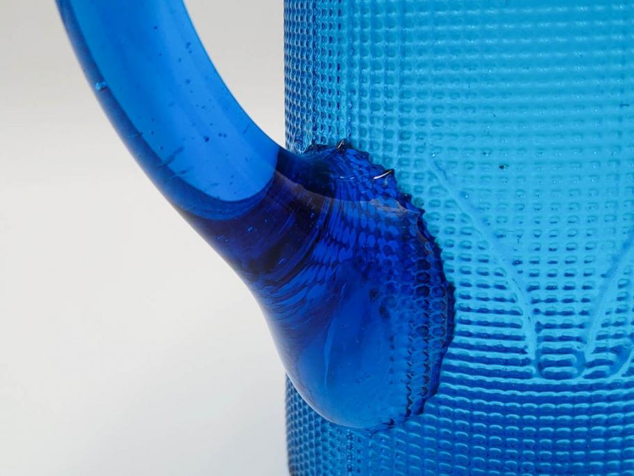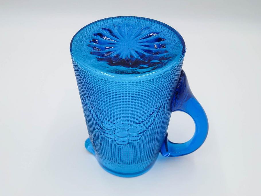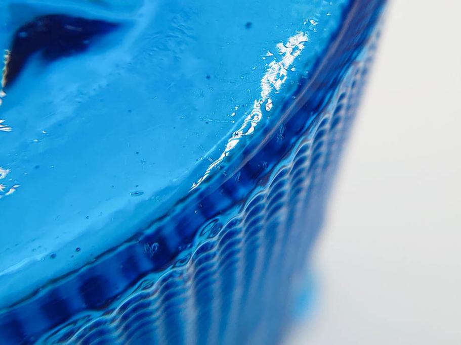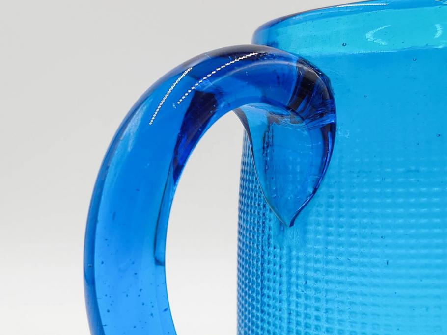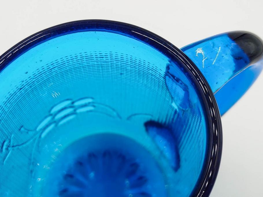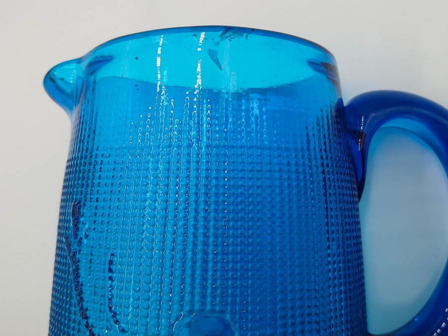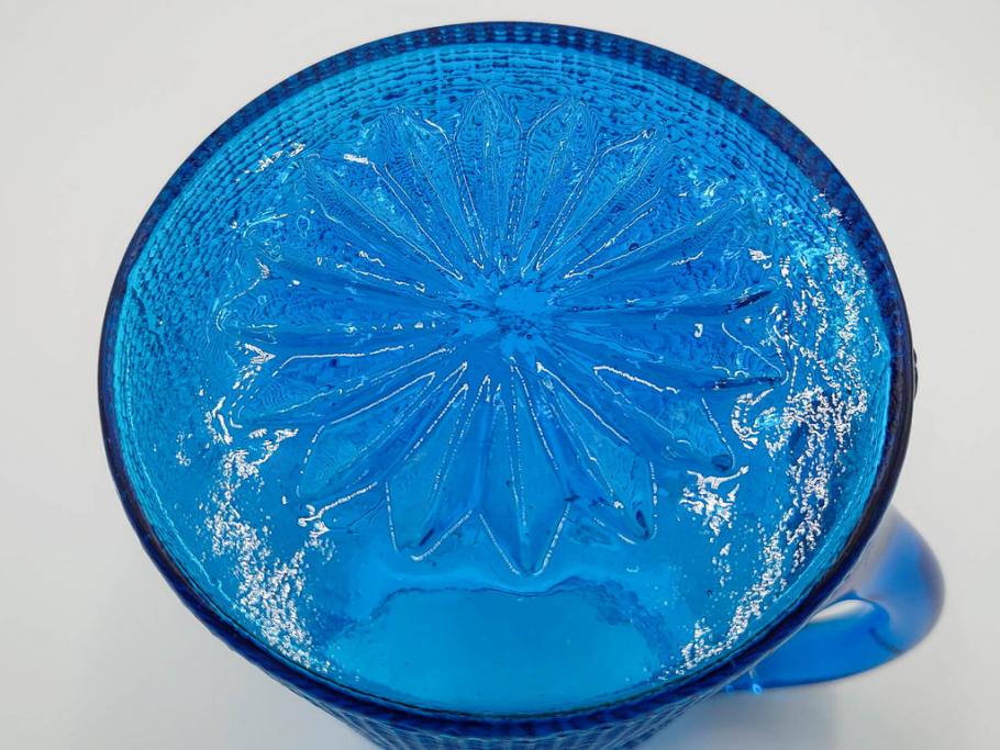 ラフジュ工房> 骨董・美術品> 骨董-ガラス食器 > 大正〜昭和初期 花文 青色 ガラス 鮮明な色彩がインテリアとしても存在感を放つ水差し(硝子、ジャグ、魚子、ピッチャー、和ガラス)(R-083567)