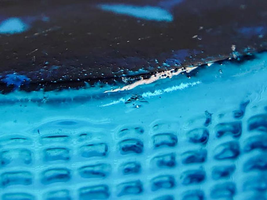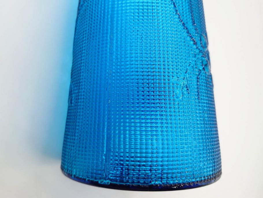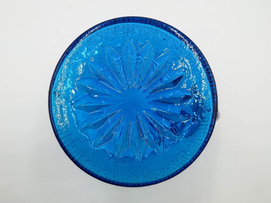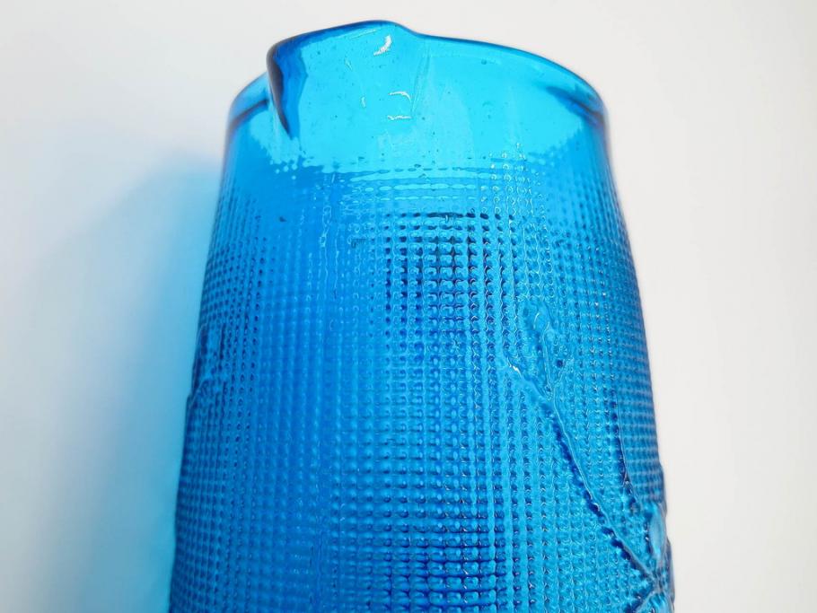 大正〜昭和初期 花文 青色 ガラス 鮮明な色彩がインテリアとしても存在感を放つ水差し(硝子、ジャグ、魚子、ピッチャー、和ガラス)(R-083567)