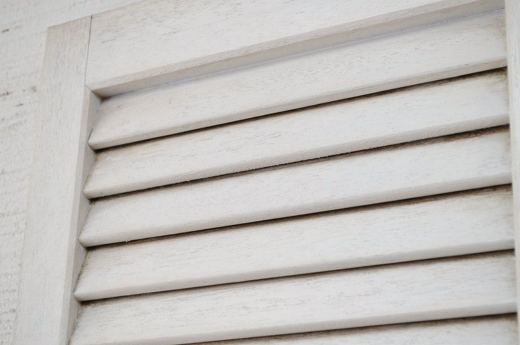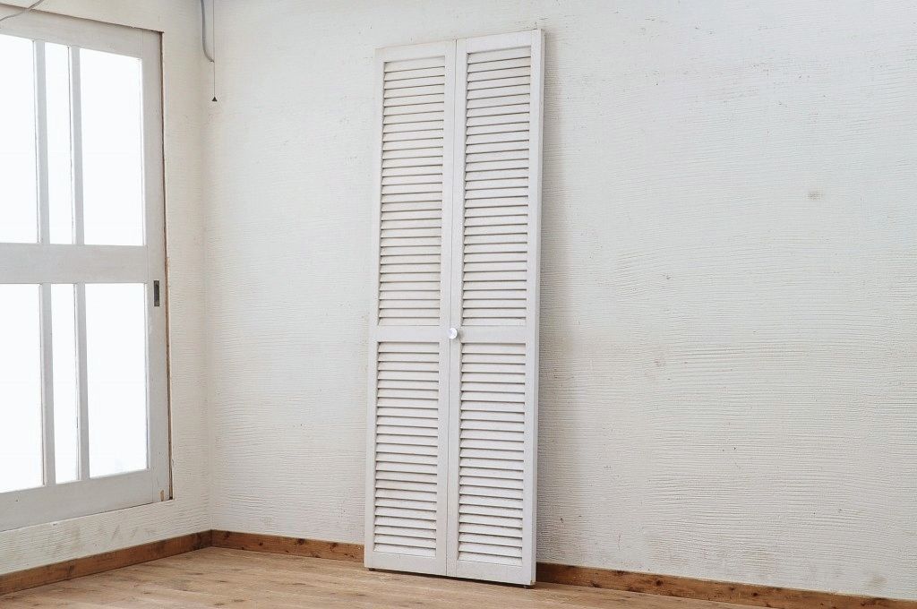 白いペイントのクローゼットのルーバードアです。