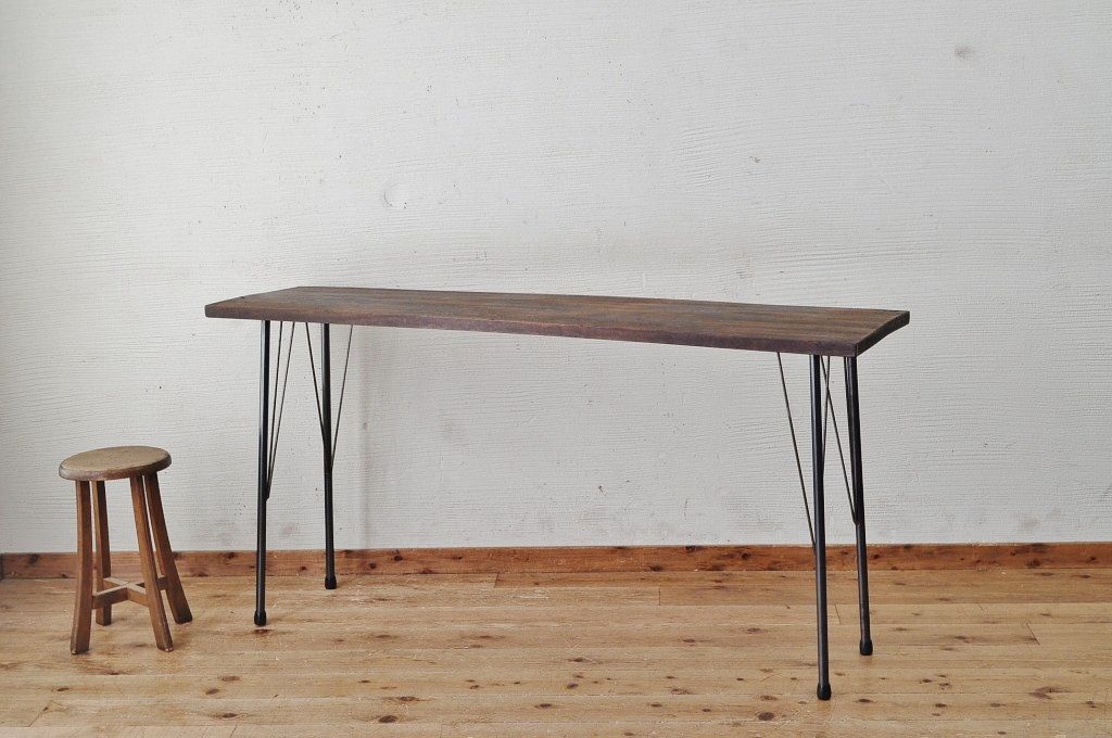 アンティーク家具 ☆天板一枚板!古い木の鉄脚作業台1