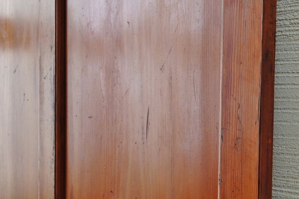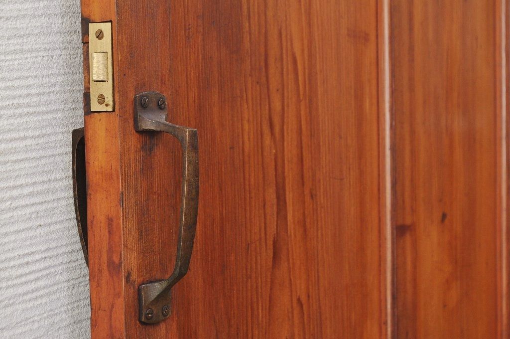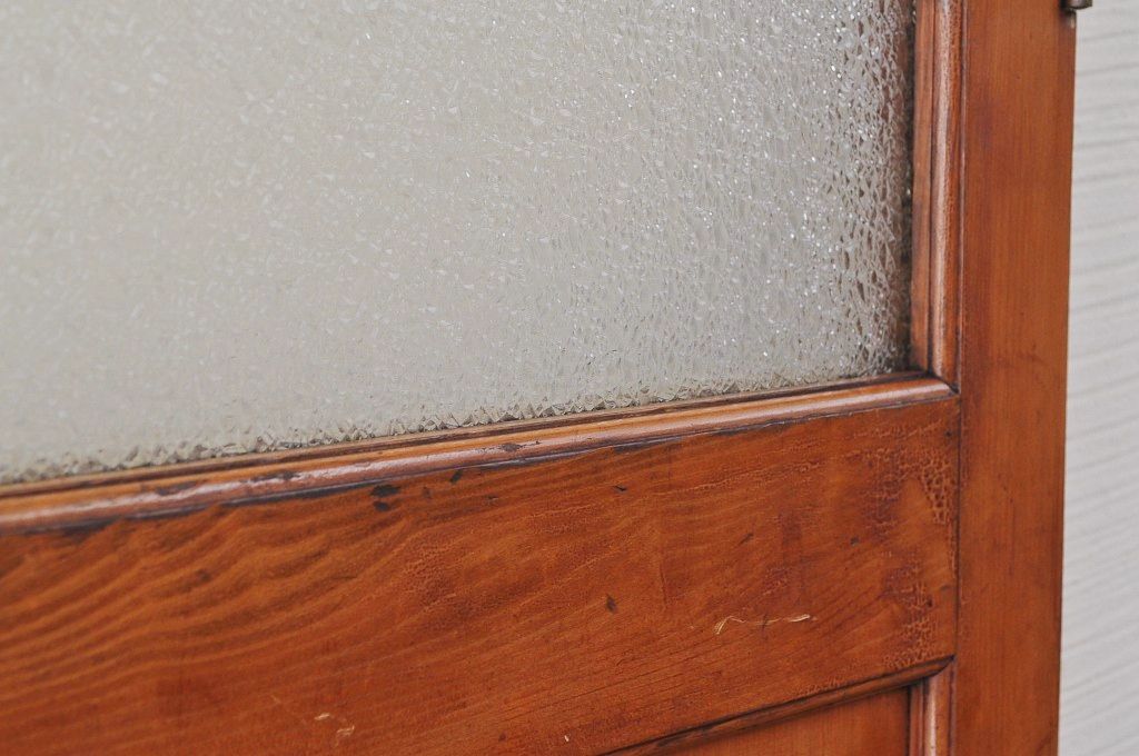 古い木の大振りなダイヤガラスドアです。