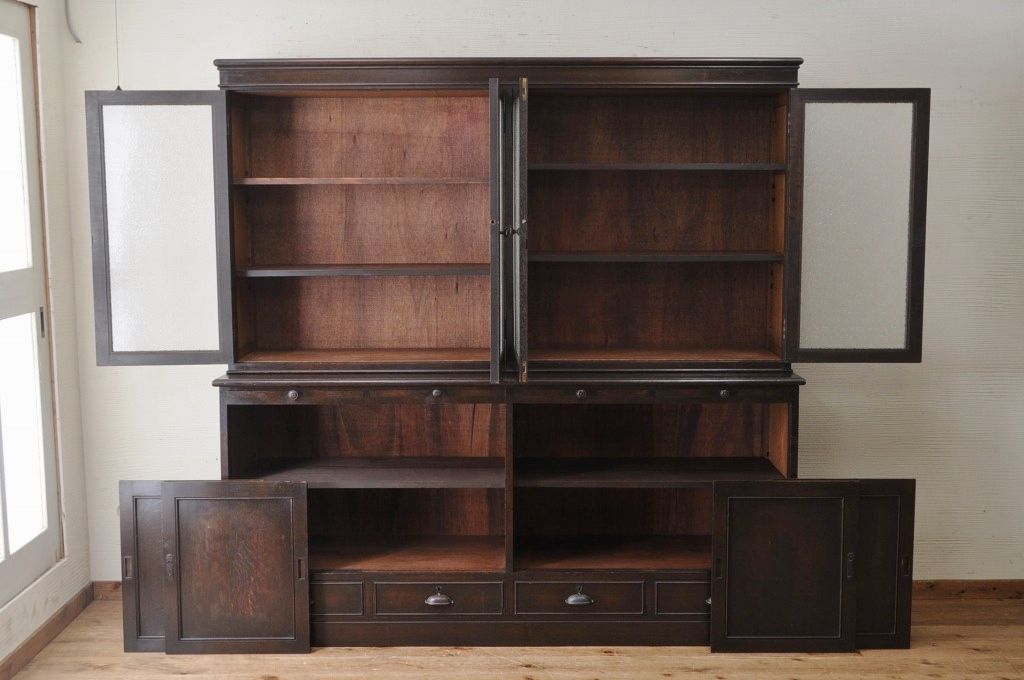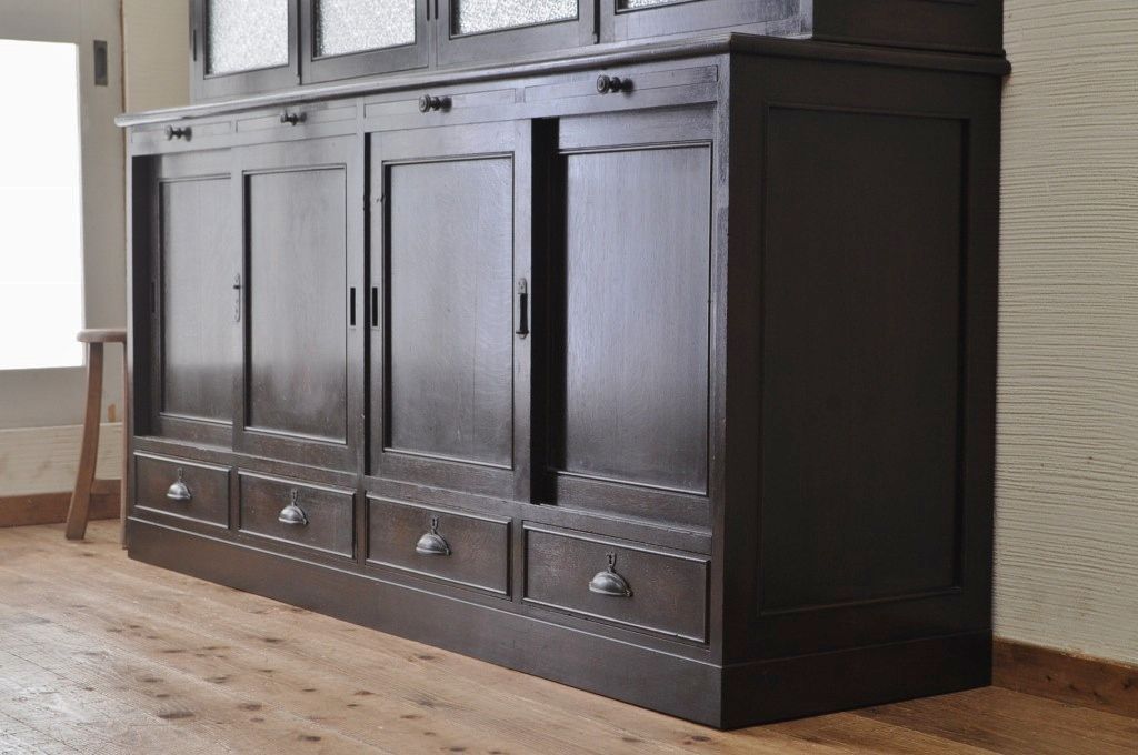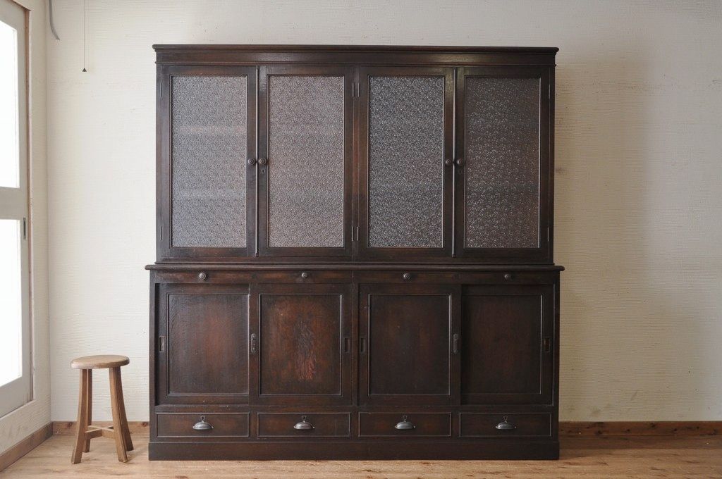 アンティーク家具 総楢材!古いお屋敷の上質な作業台付食器棚
